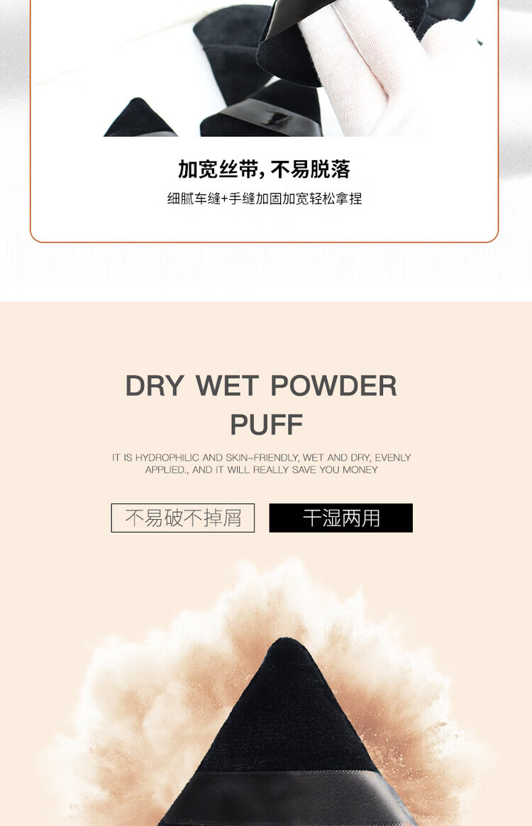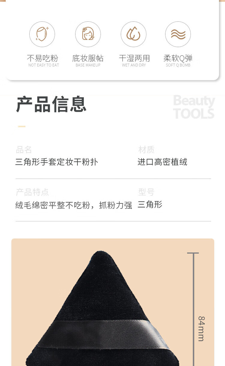 三角手套式粉扑双面化妆气垫美妆工具散粉定妆超柔水晶绒粉扑批发
