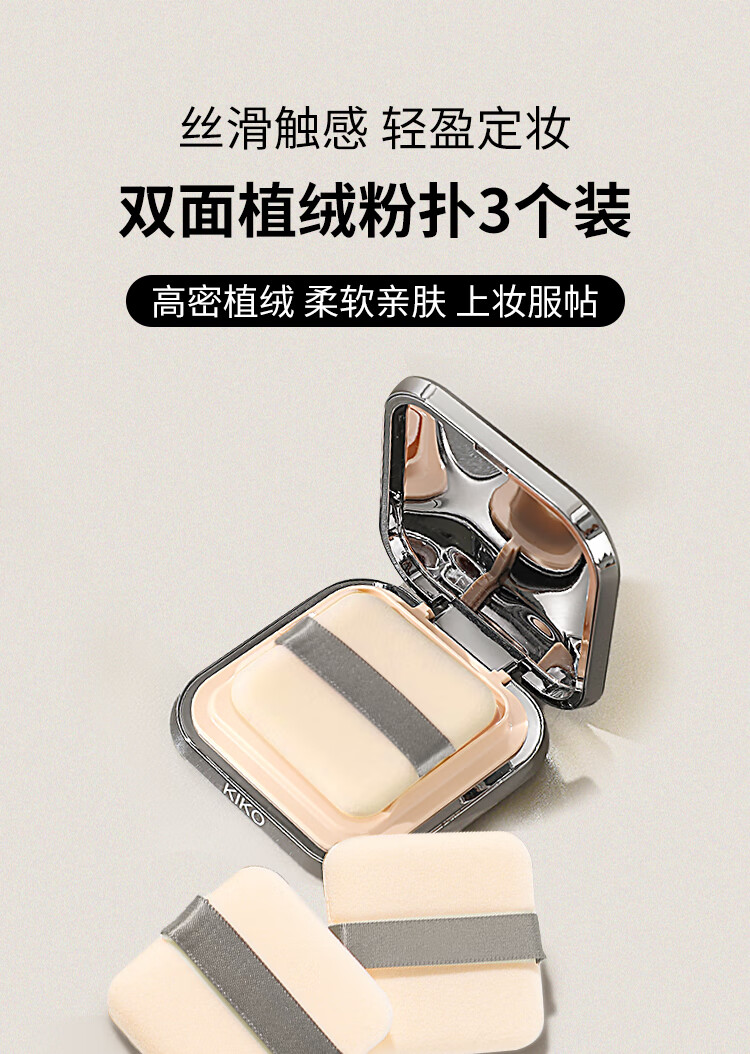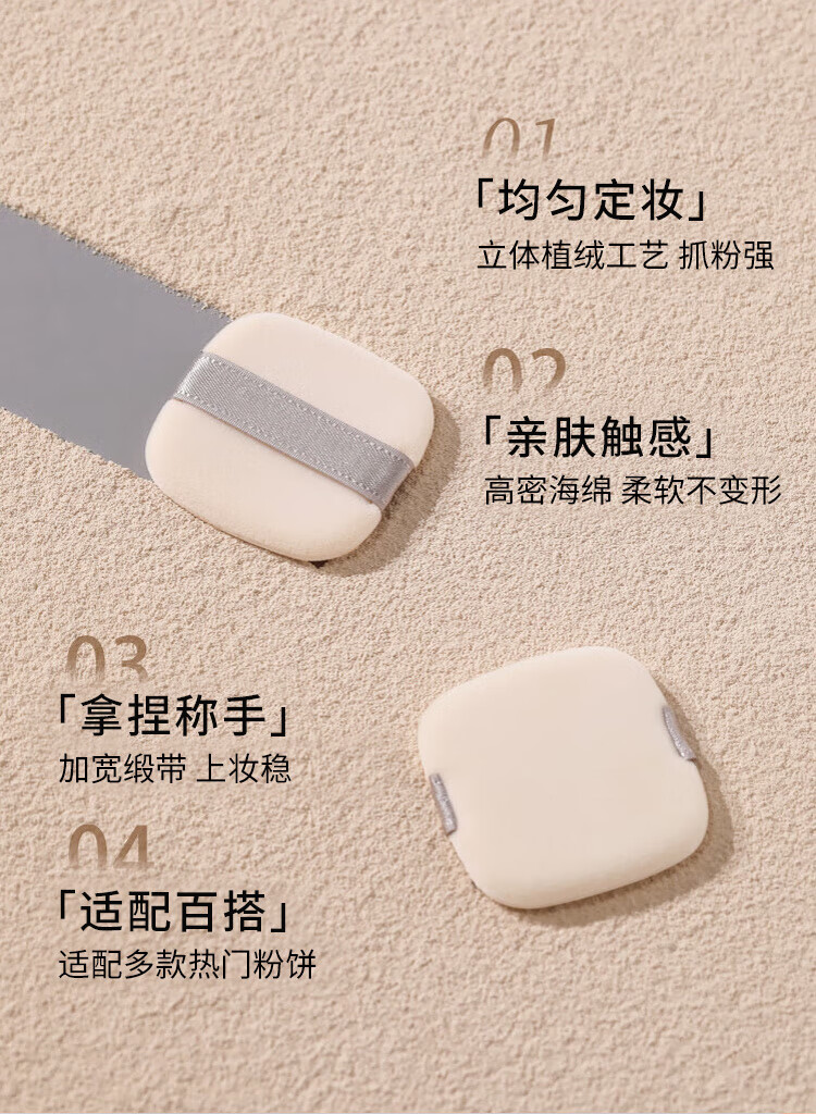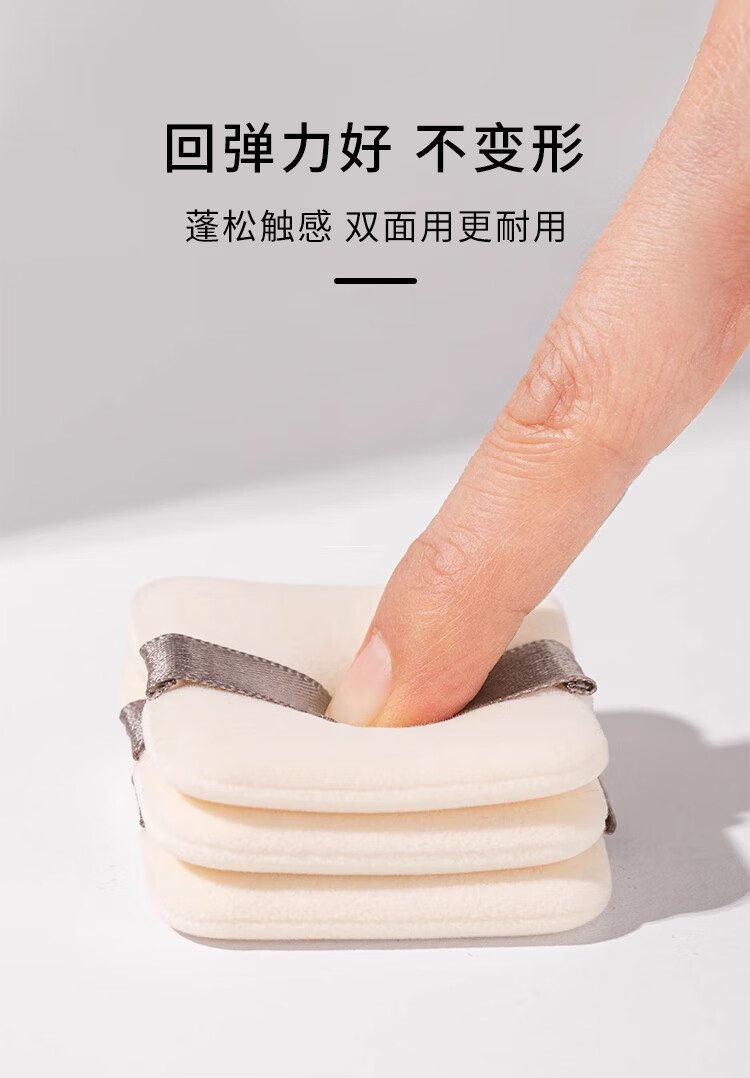 美肤语双面植绒散粉扑粉饼(薄款方形)3个装替换定妆化妆蜜粉扑MF8560