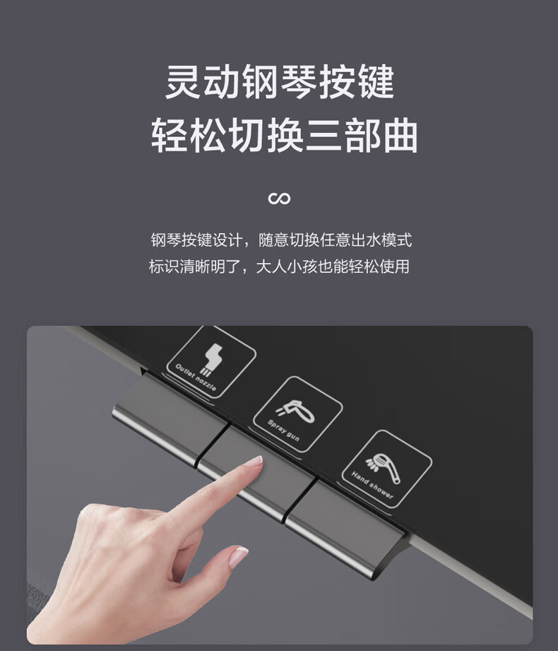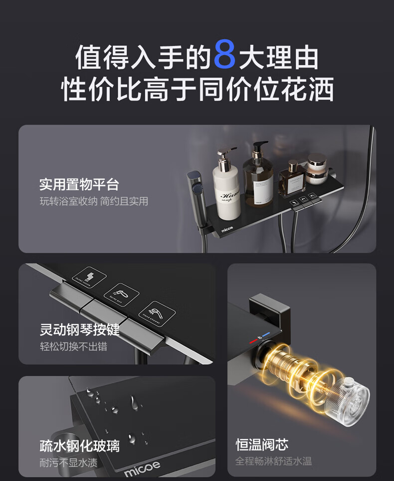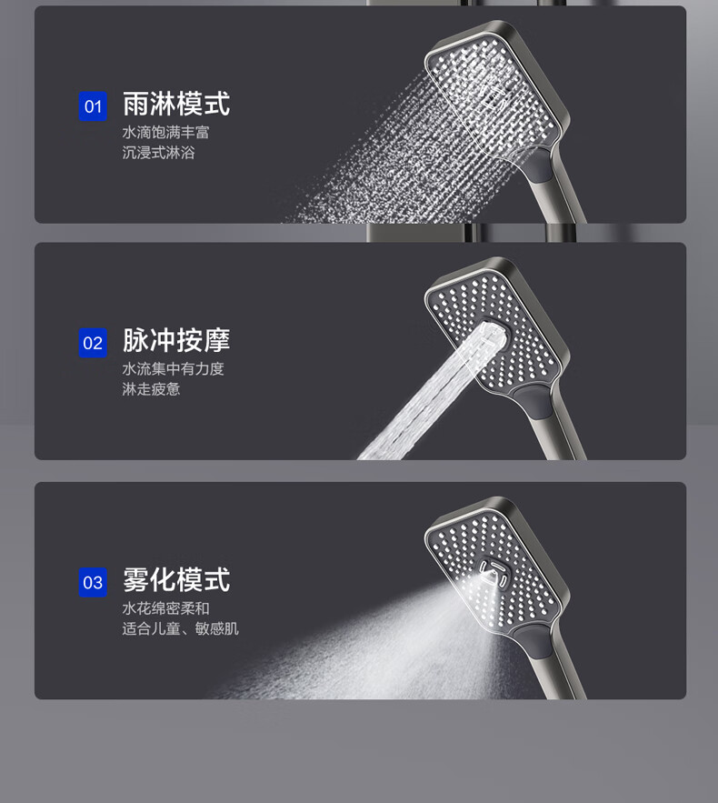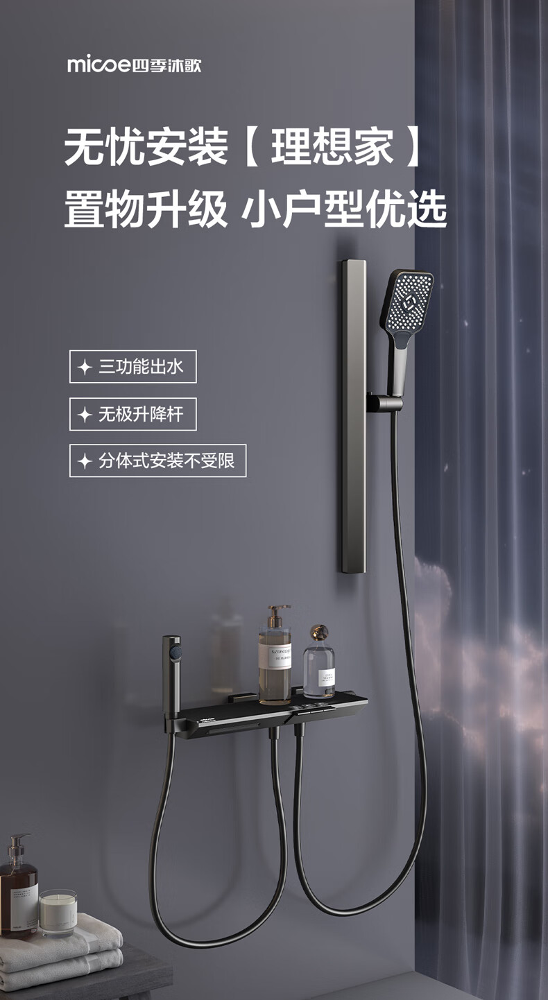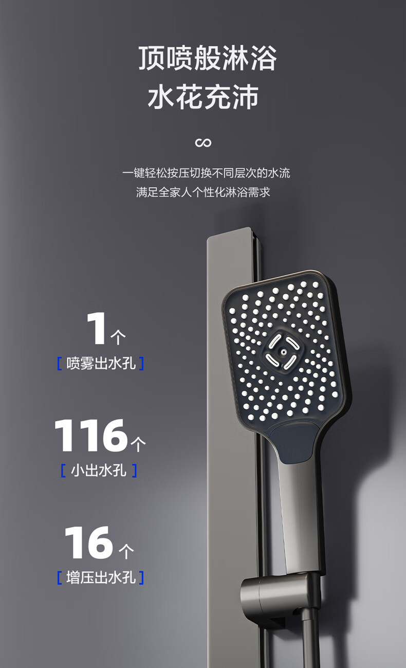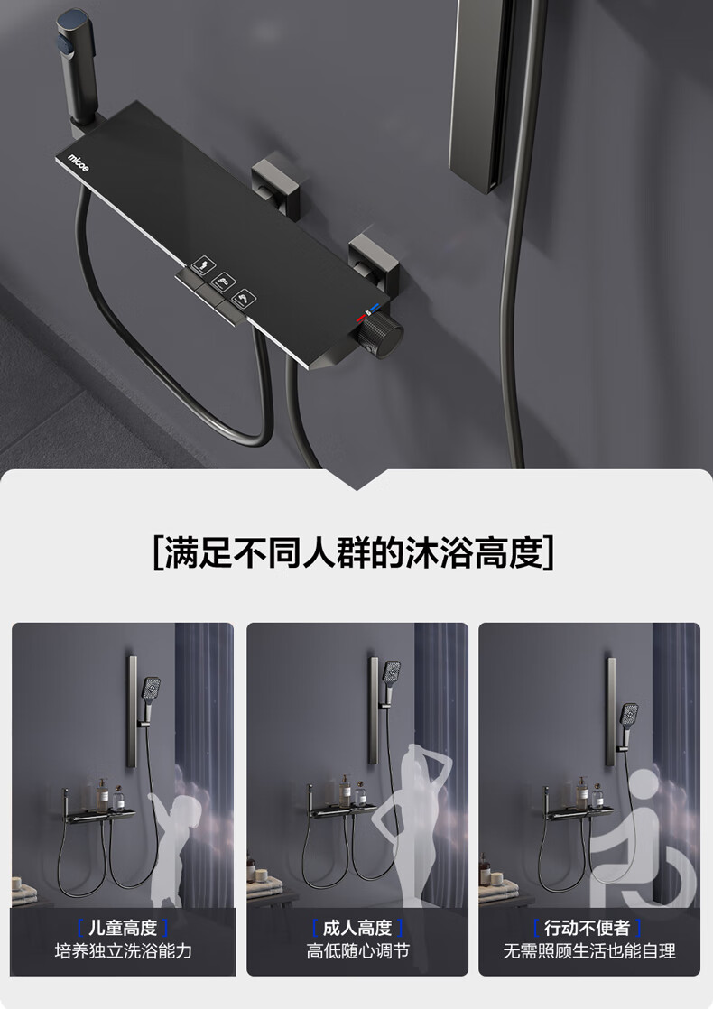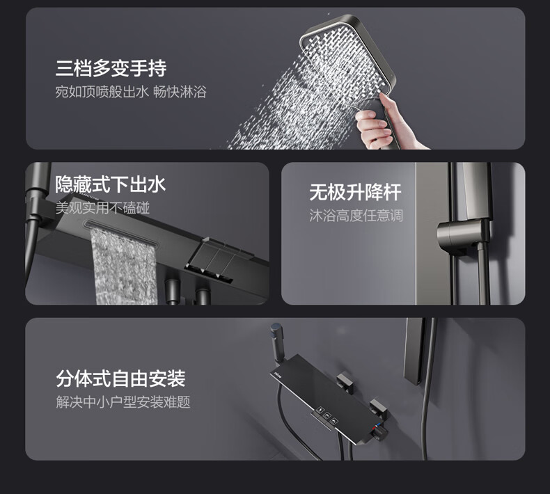 四季沐歌淋浴花洒套装 增压淋浴器浴室简易三功能钢琴按键沐浴花洒全套 【枪灰冷热】钢化玻璃面板+钢琴按键