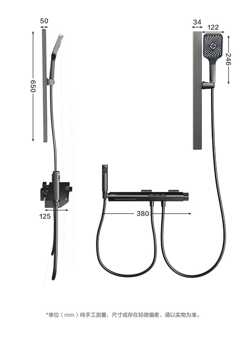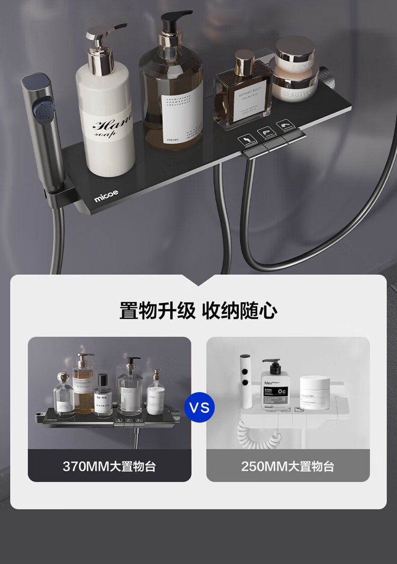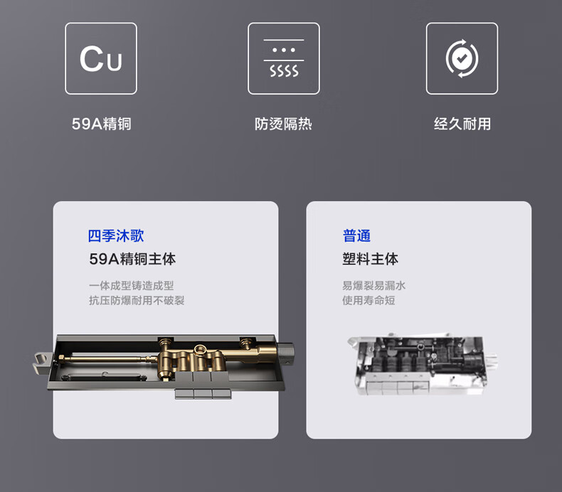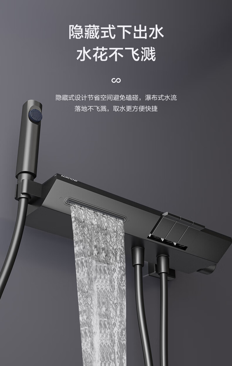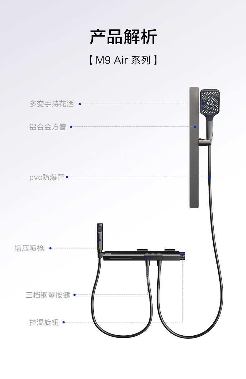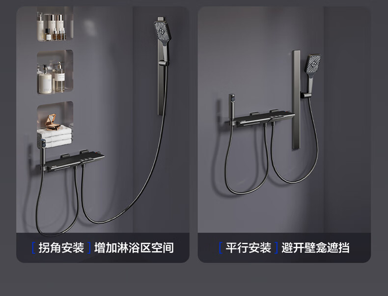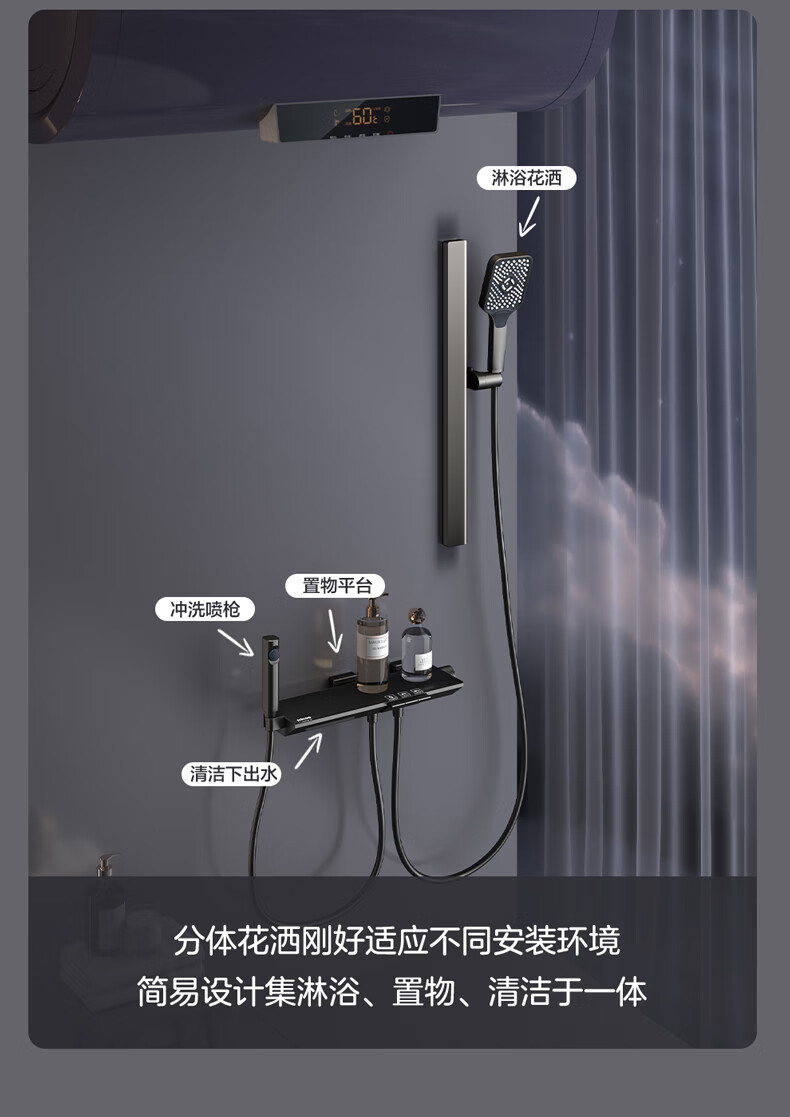 四季沐歌淋浴花洒套装 增压淋浴器浴室简易三功能钢琴按键沐浴花洒全套 【枪灰冷热】钢化玻璃面板+钢琴按键