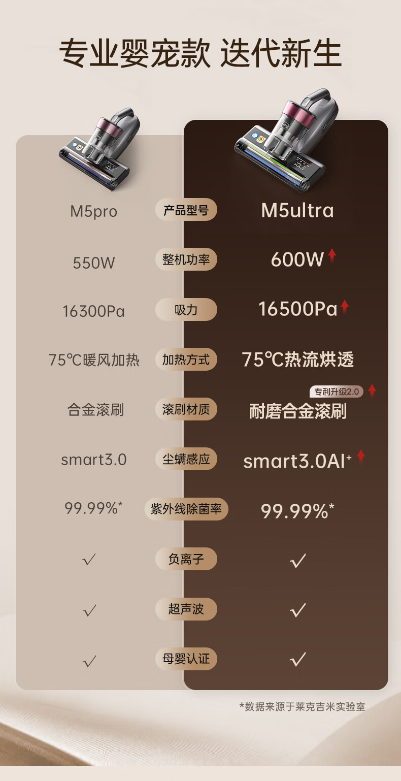 莱克(LEXY)M5 Ultra除螨仪除湿尘螨感应家用床上吸尘器一体机十大吸力紫外线杀菌母婴除螨机床宝