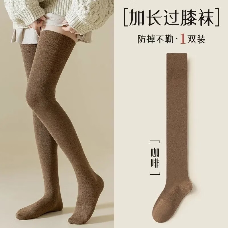 女士长袜过膝长筒袜子女春秋压力护膝高筒秋冬黑色大腿长腿袜JS 黑色+咖色+灰色(三双装) 均码