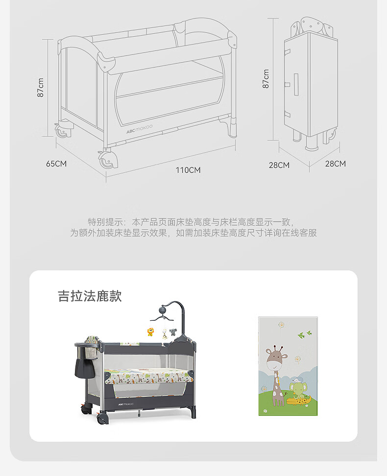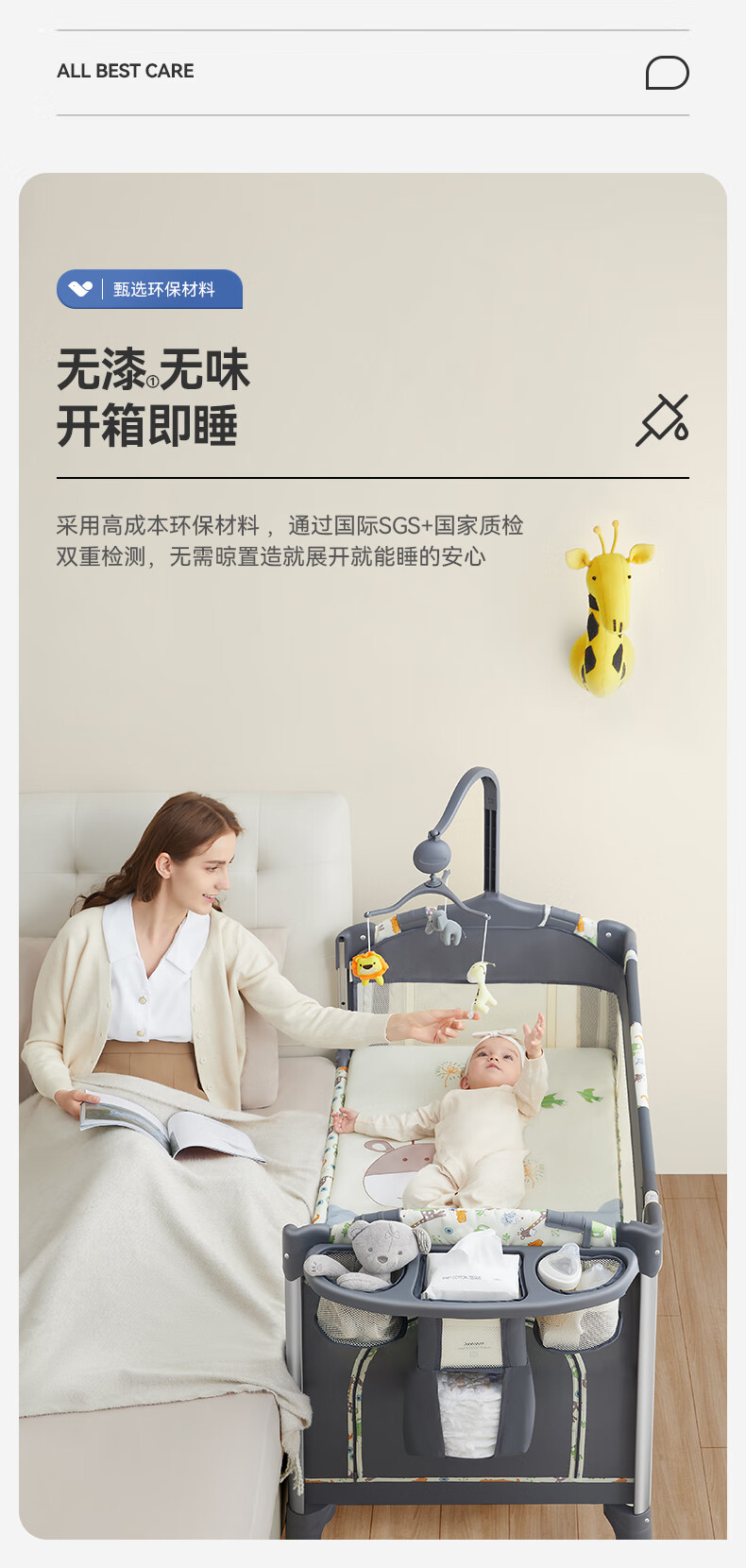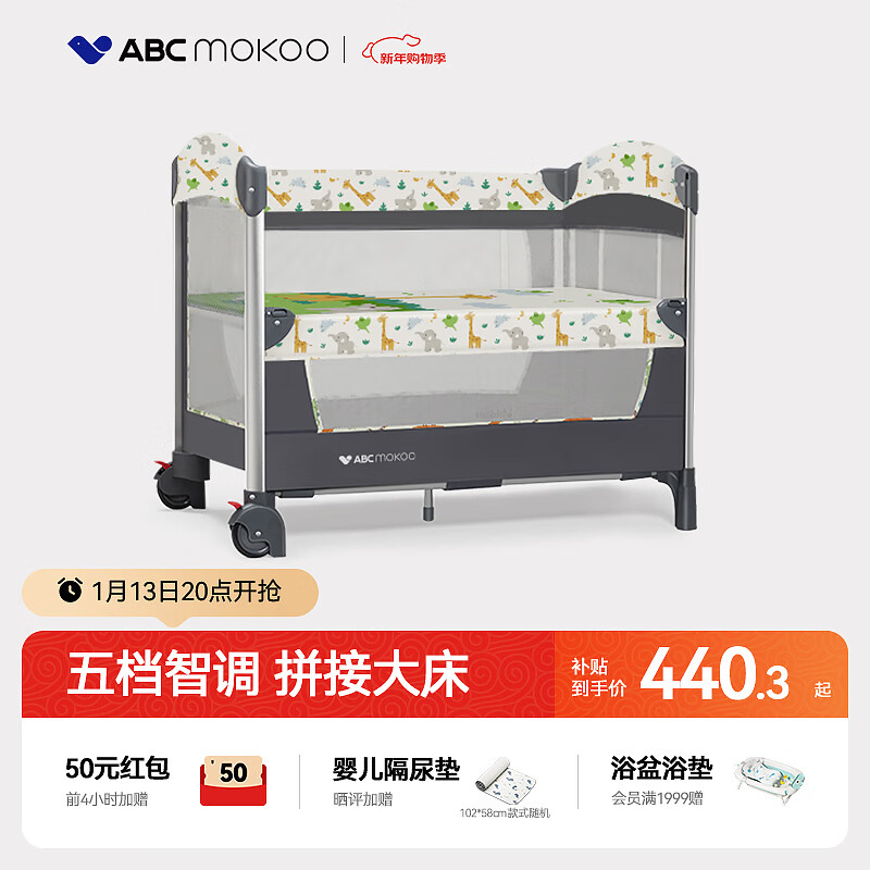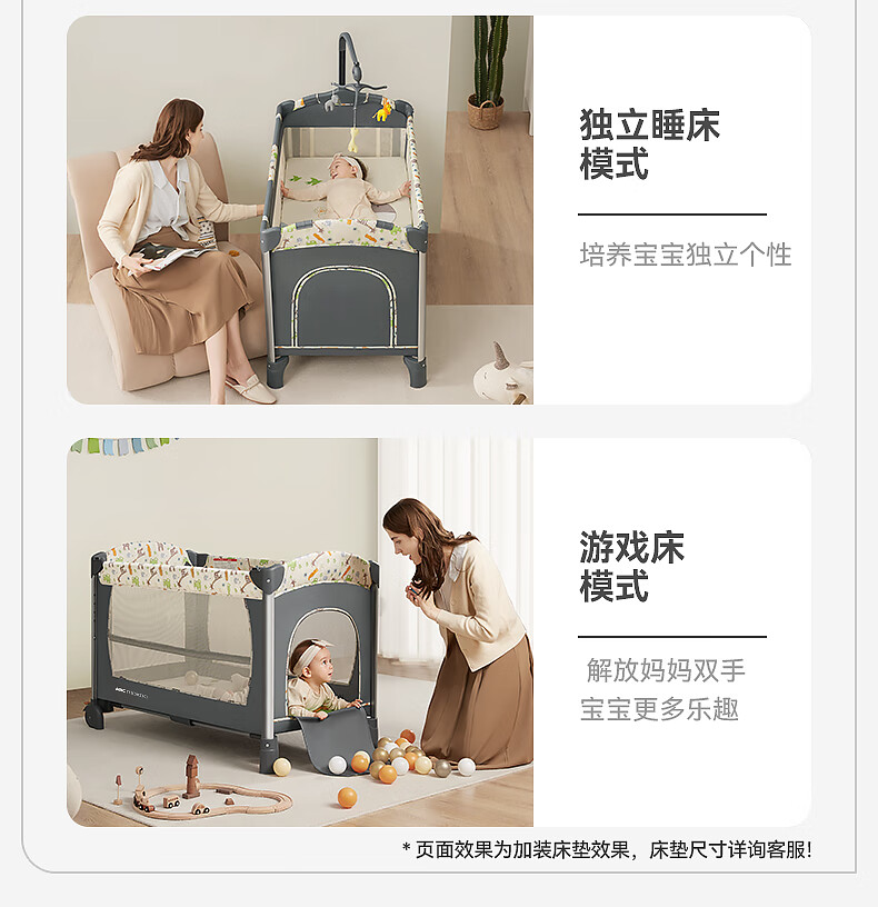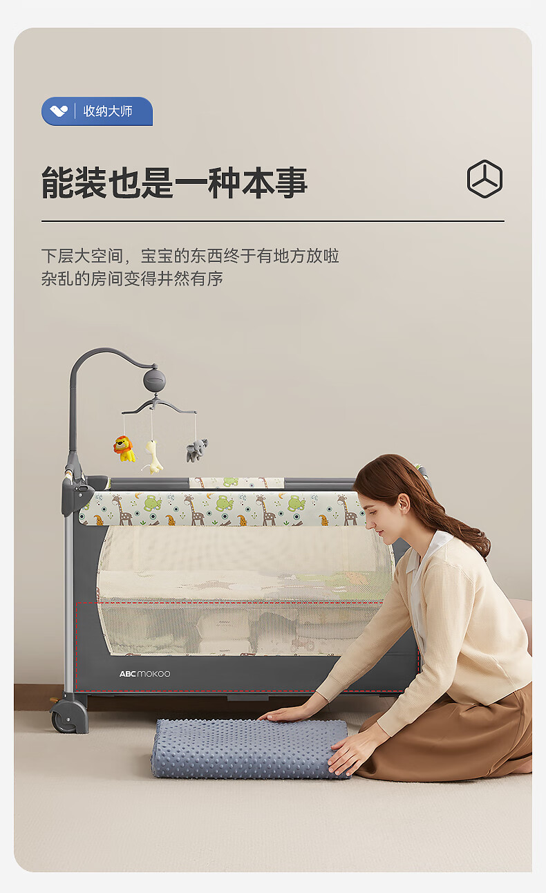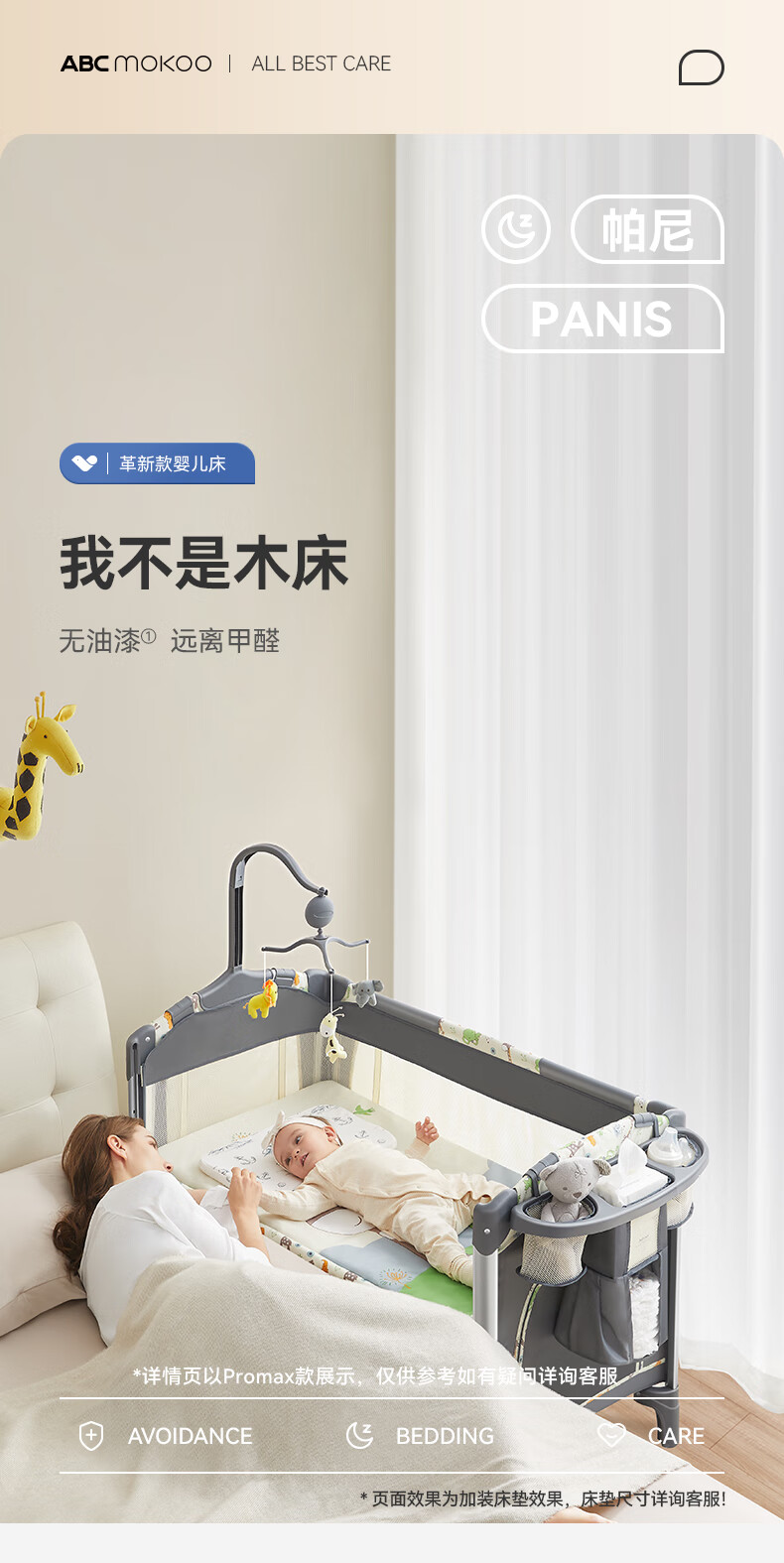 ABCMOKOO帕尼婴儿床折叠宝宝床可移动新生儿多功能拼接大床-AIR款