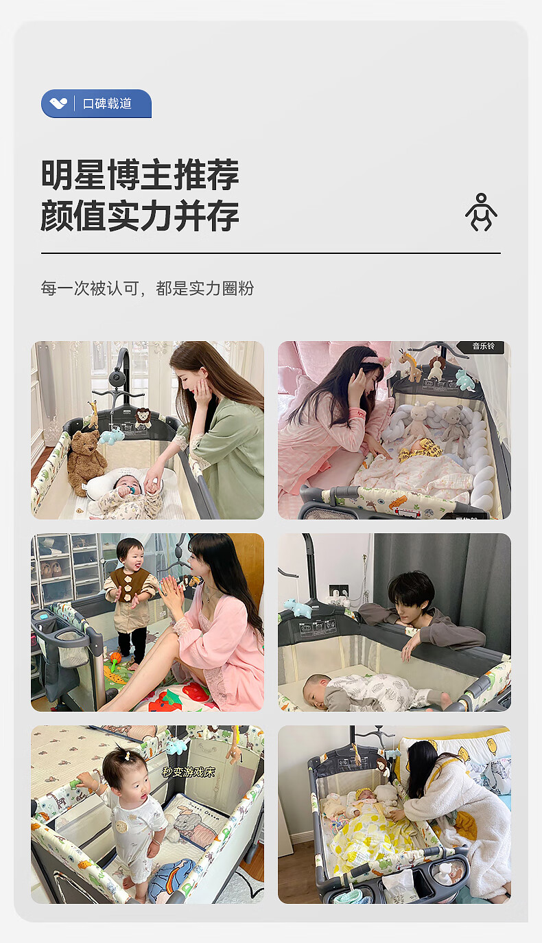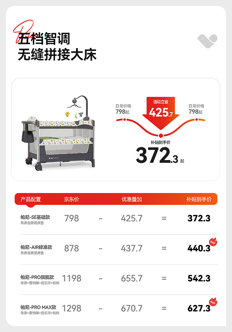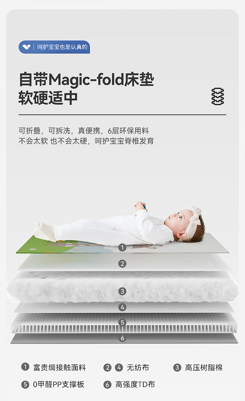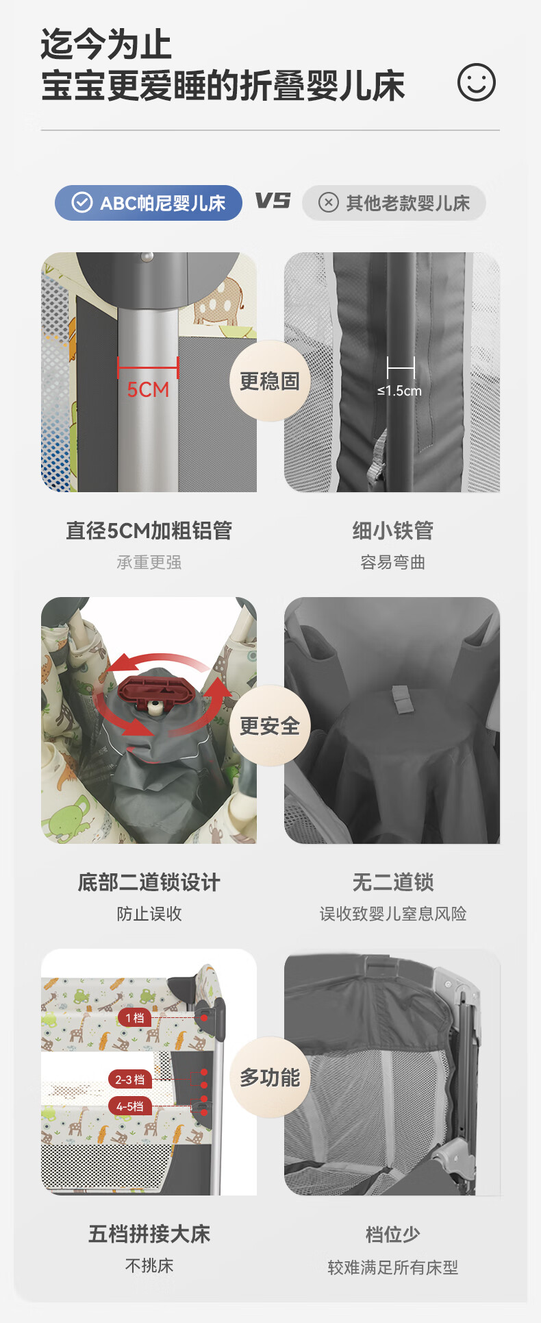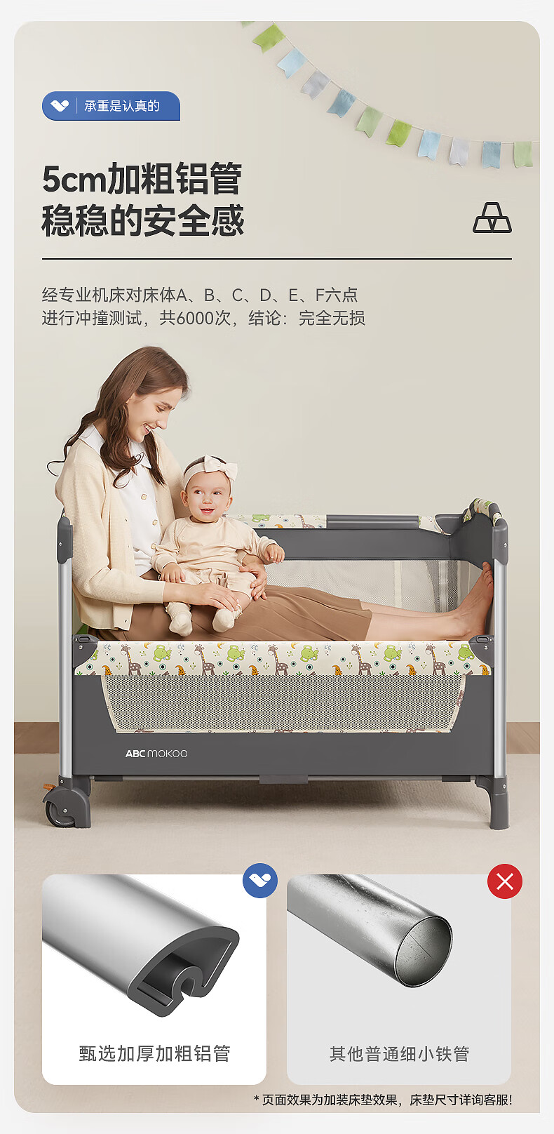 ABCMOKOO帕尼婴儿床折叠宝宝床可移动新生儿多功能拼接大床-AIR款