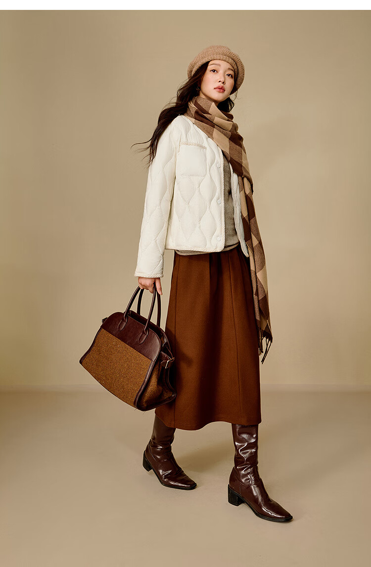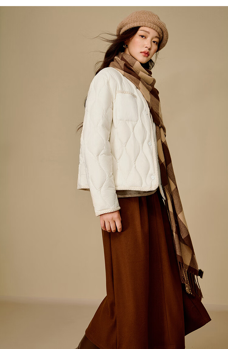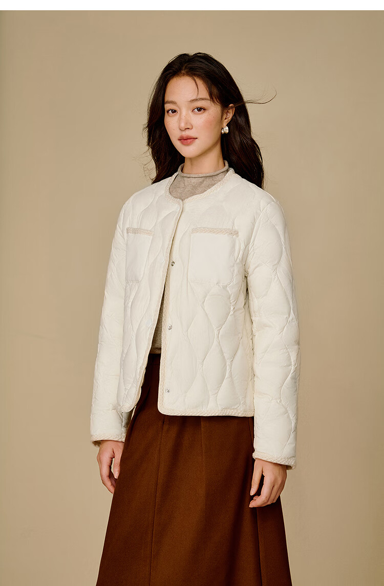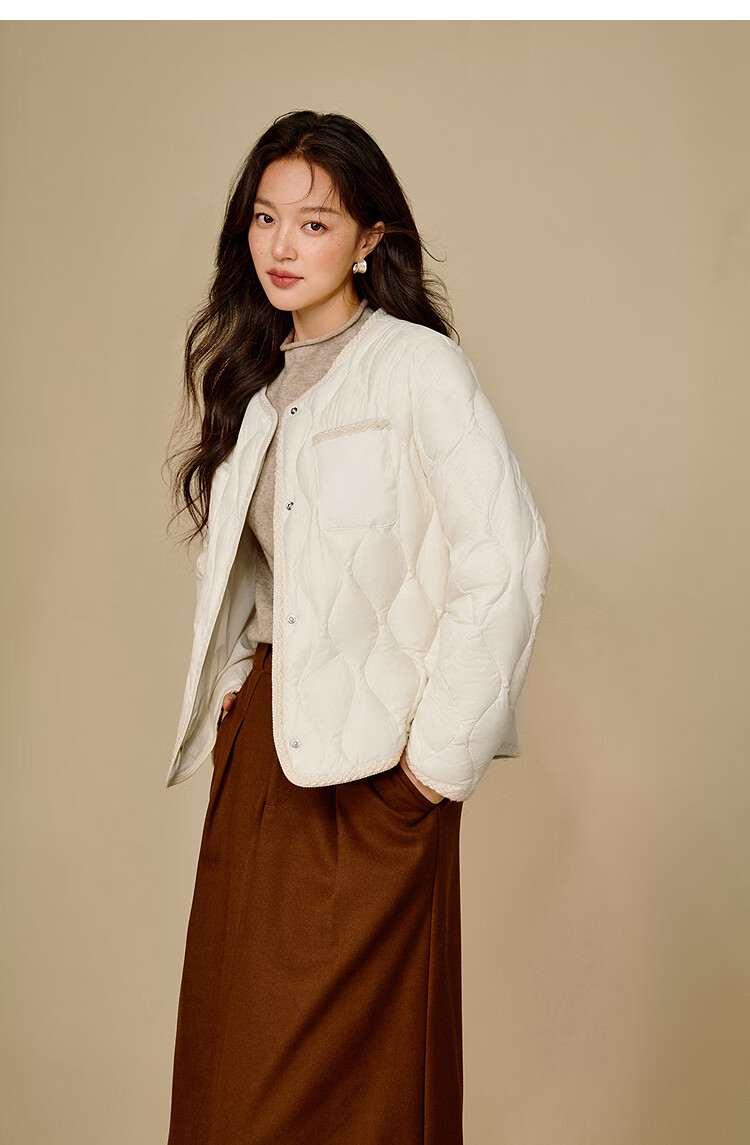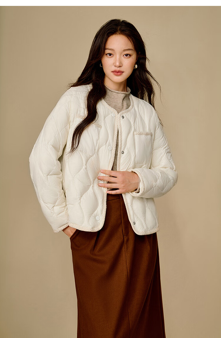 茵曼快热纱无胆轻薄羽绒服2025冬女装新款轻薄短保暖外套 暖杏色 M
