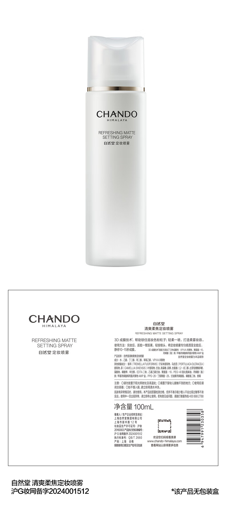 自然堂定妆喷雾 清爽柔焦保湿控油精细柔雾长效持妆细腻养妆新彩妆 定妆喷雾 30ml