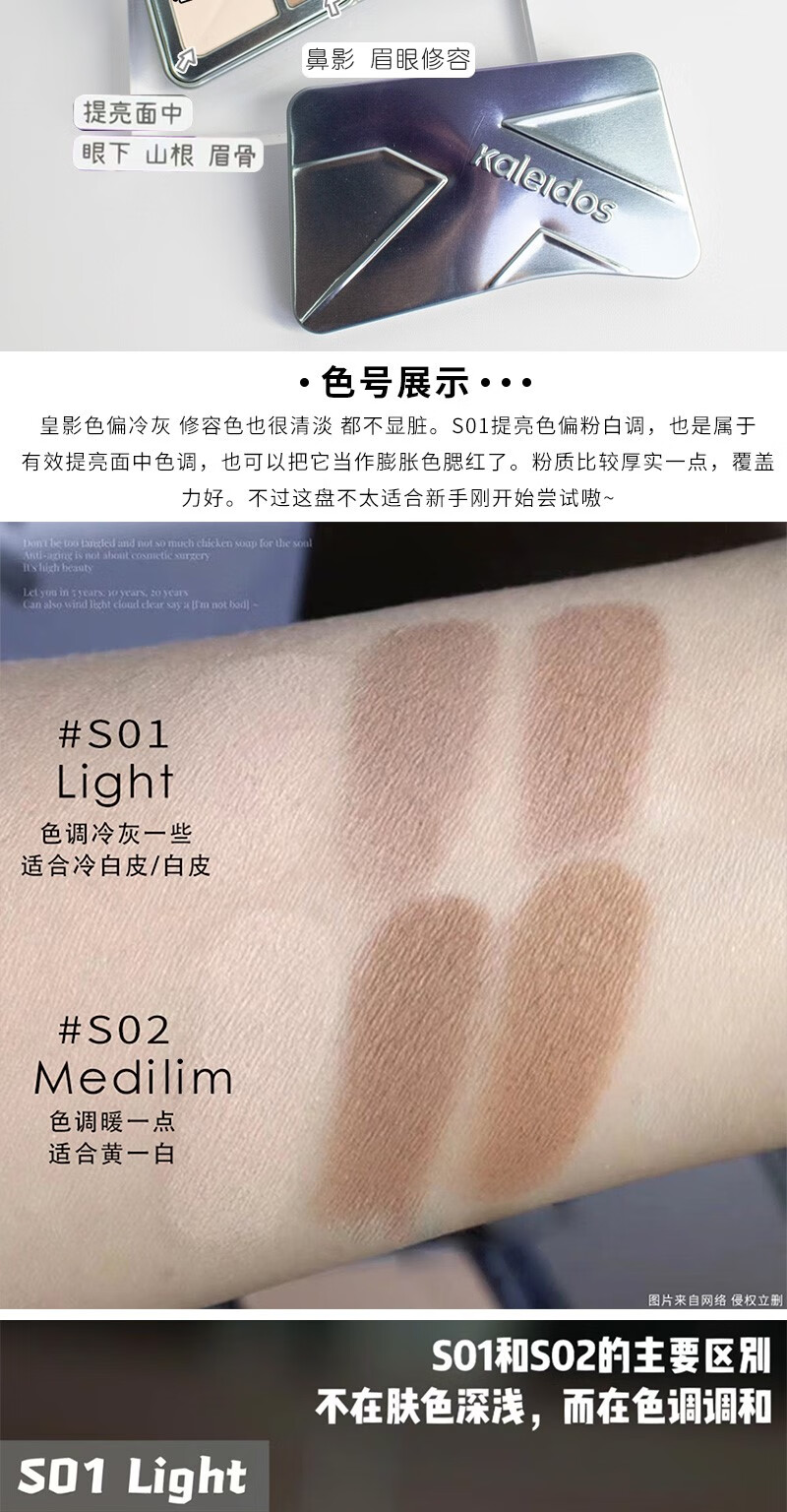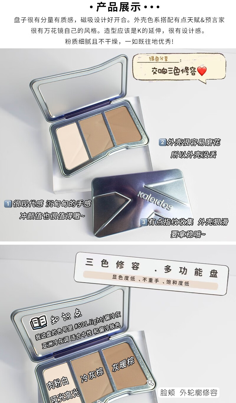 KALEIDOS修容小样交响三色修容高光一体盘提亮修容盘 #S01冷灰调盘1g