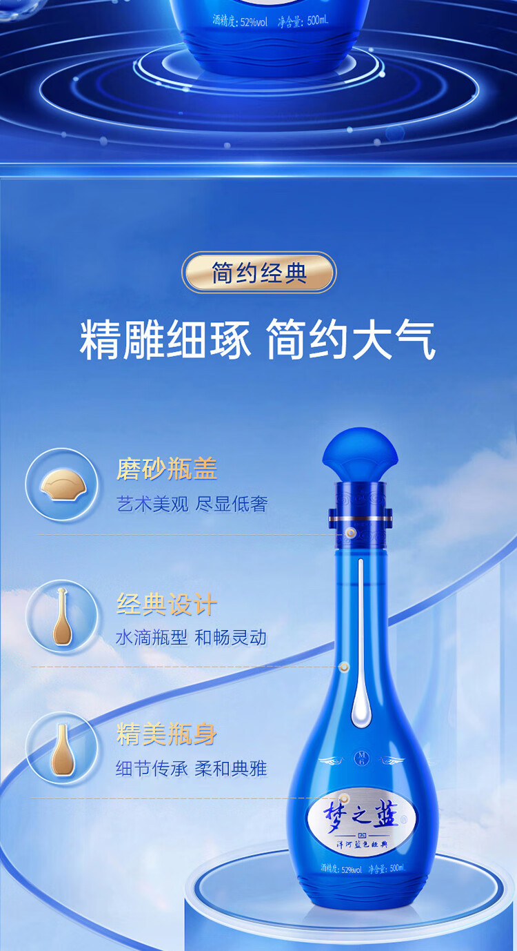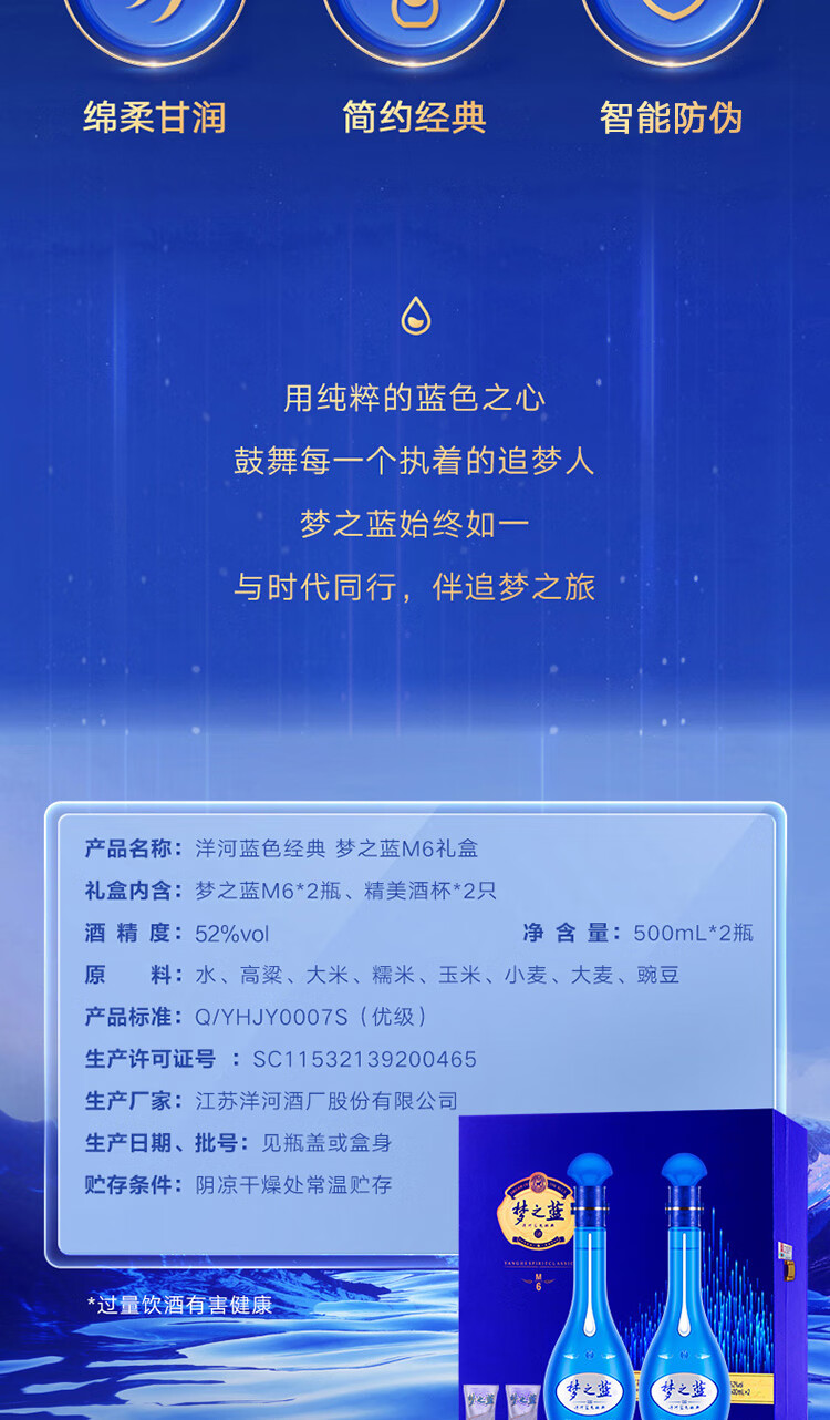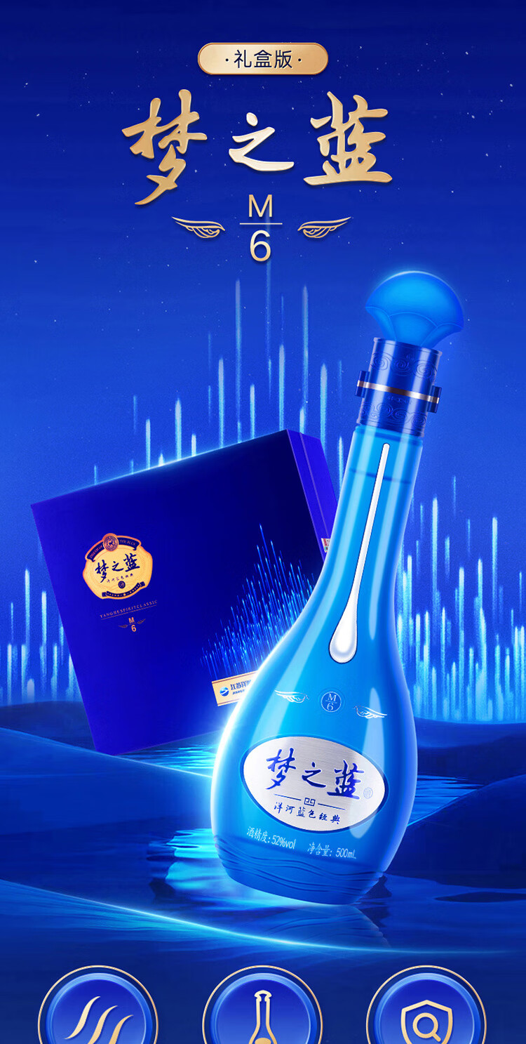 洋河 梦之蓝M6 52度500ml*2瓶 礼盒装 绵柔浓香型白酒