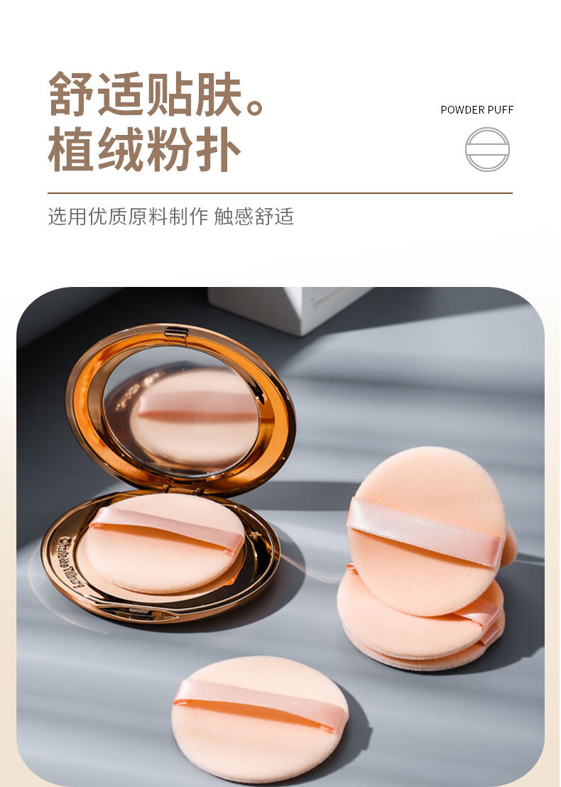 晨色植绒粉饼粉扑散粉定妆超薄圆形蜜粉扑专用替换双面粉扑 3个装
