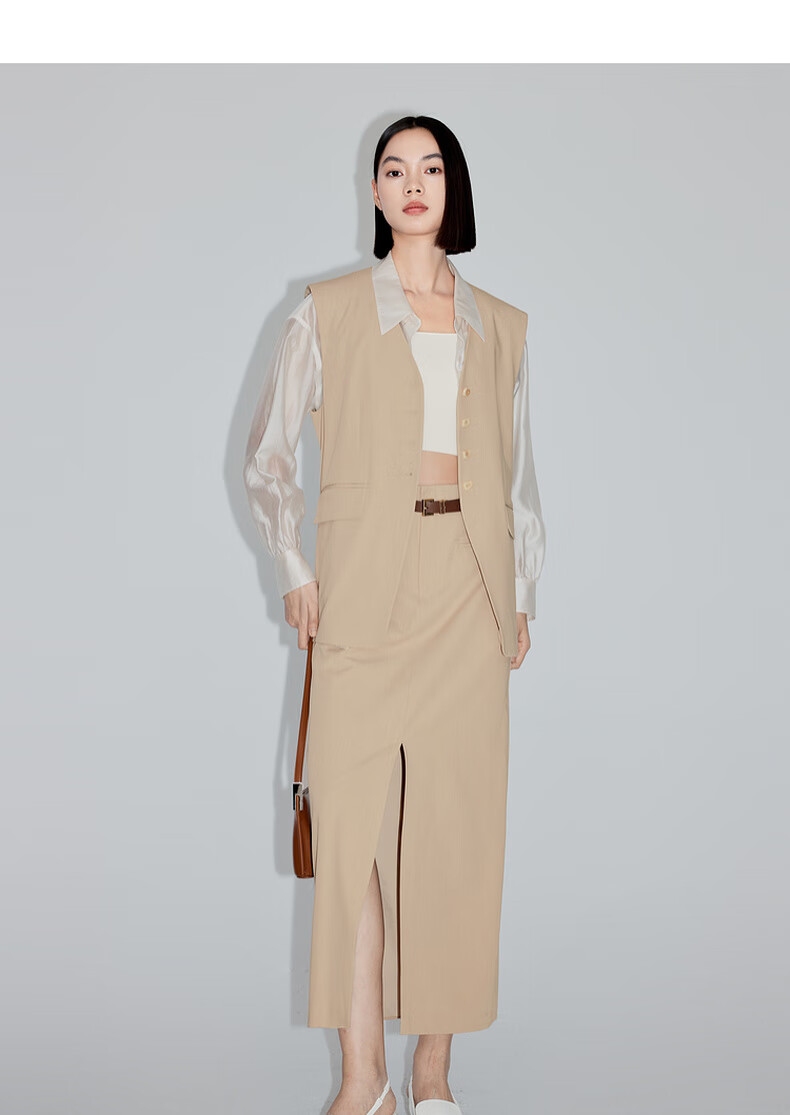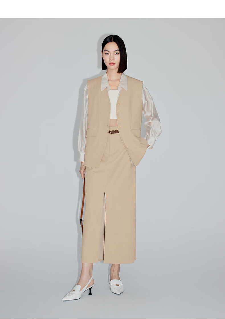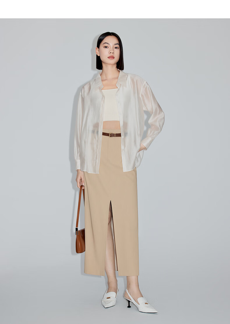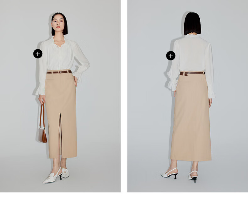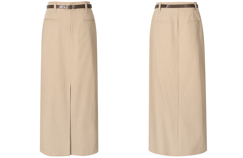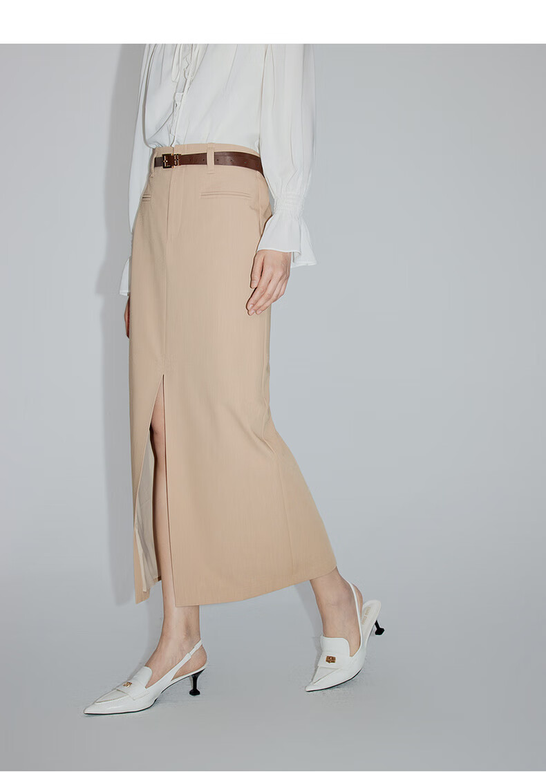 伊芙丽(eifini)【商场同款】伊芙丽通勤百搭休闲气质半身裙2024年秋季长款开叉裙 杏色 S 155/60A