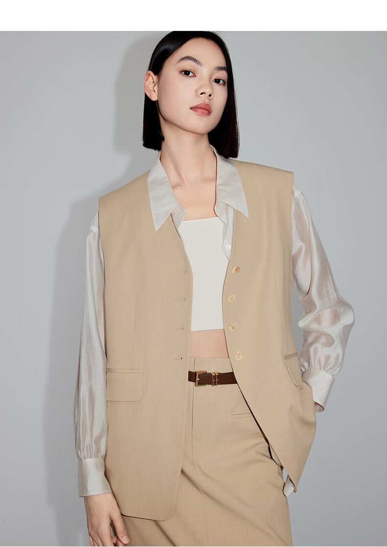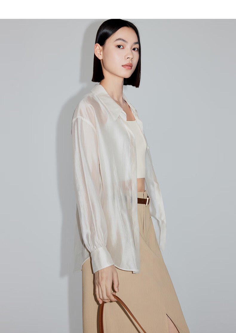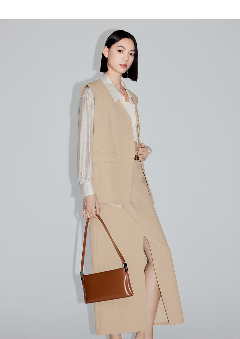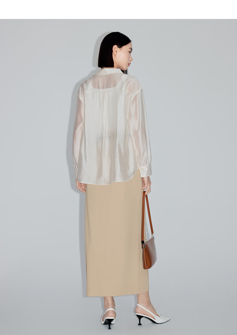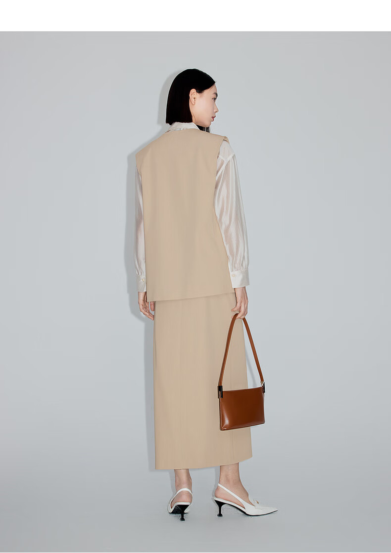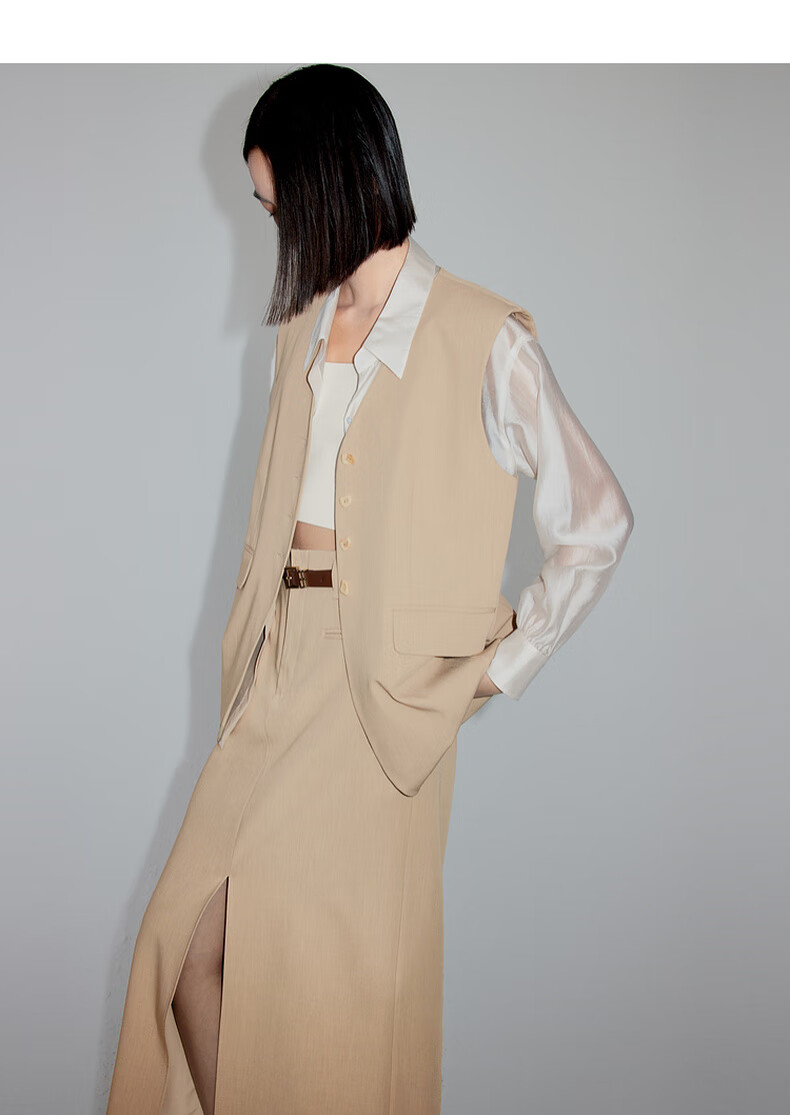 伊芙丽(eifini)【商场同款】伊芙丽通勤百搭休闲气质半身裙2024年秋季长款开叉裙 杏色 S 155/60A