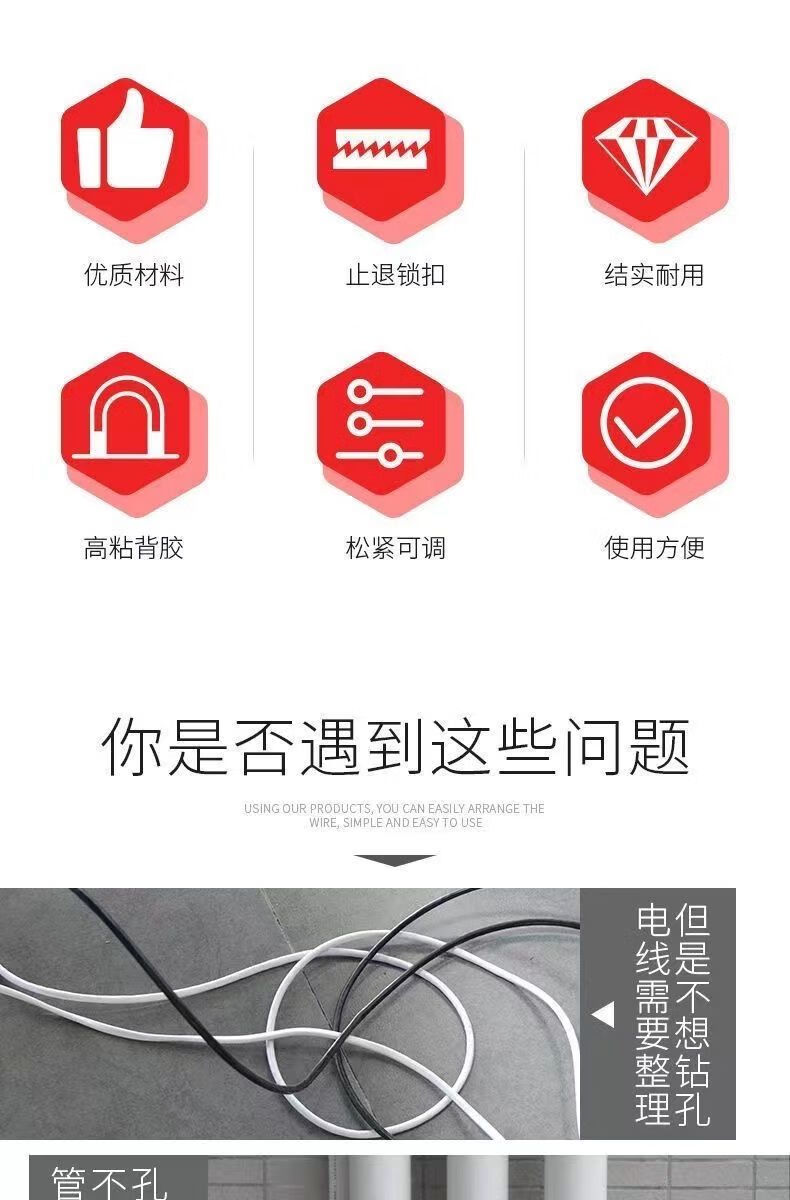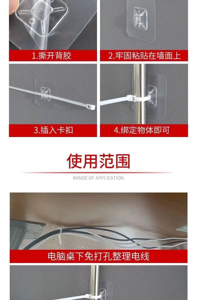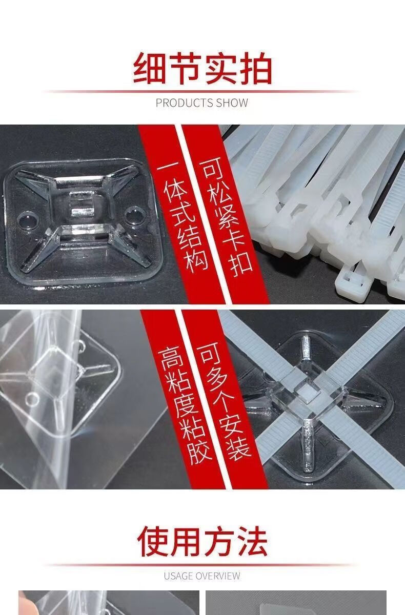 线卡扣自粘免打孔扎带固定器电线固定器墙上免打孔扎带固定卡扣 12个贴片有12-16条扎带