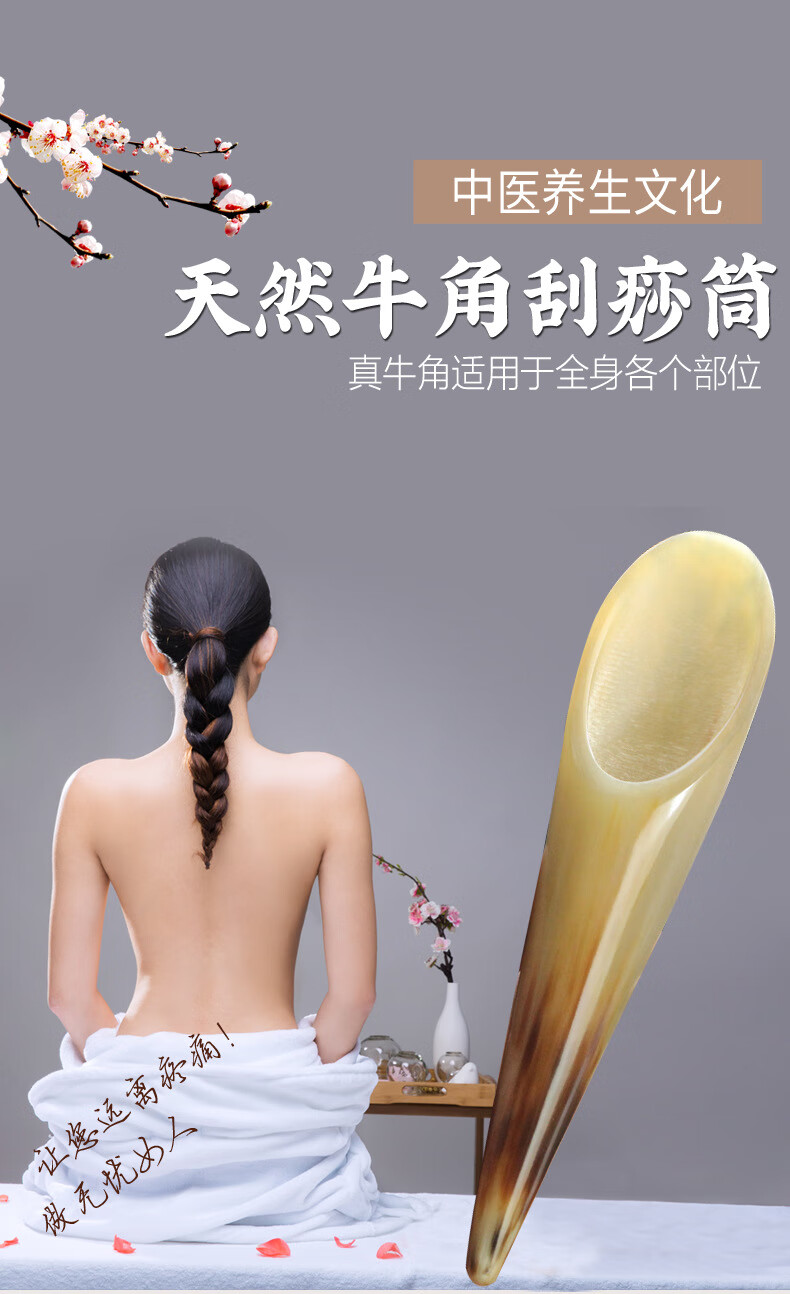 赫朴天然水牛角刮痧筒送精油跨新年礼物礼品刮痧板大号按摩肌肉开背