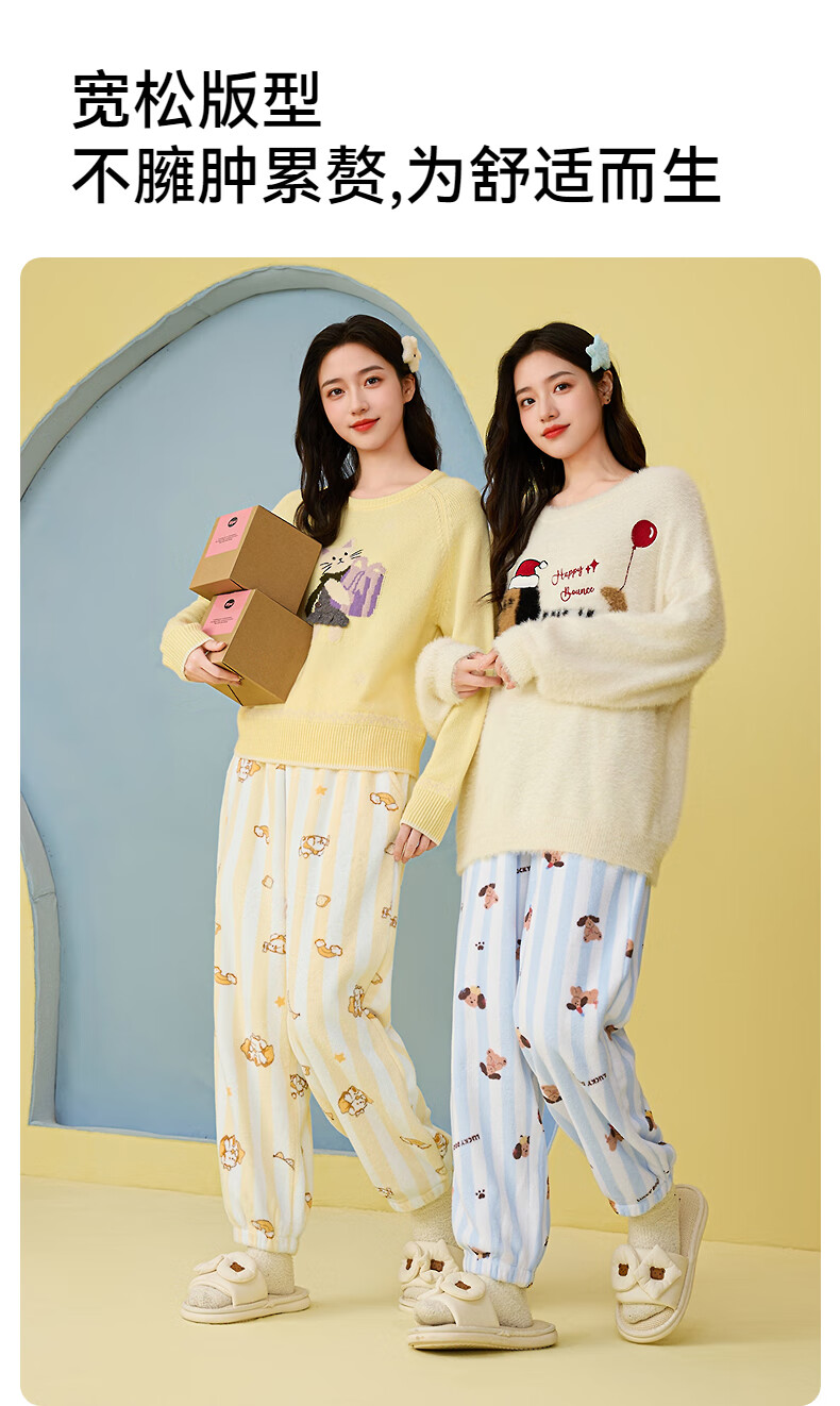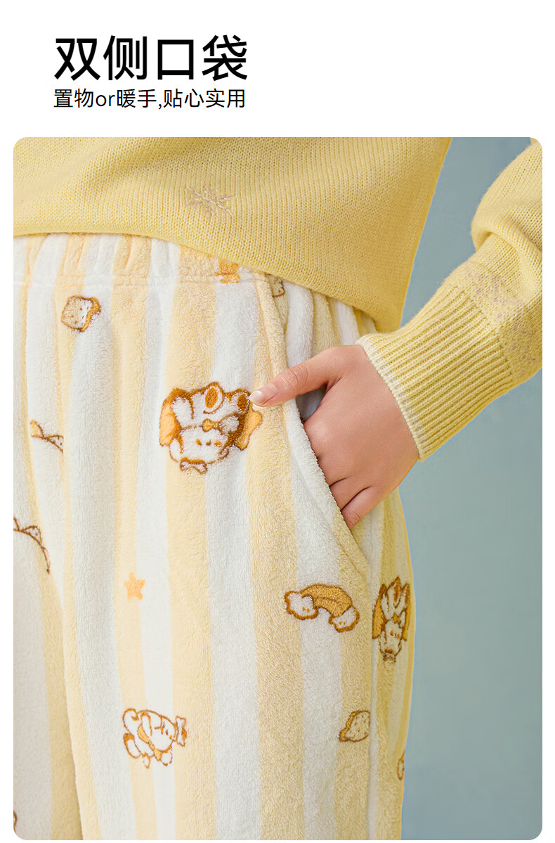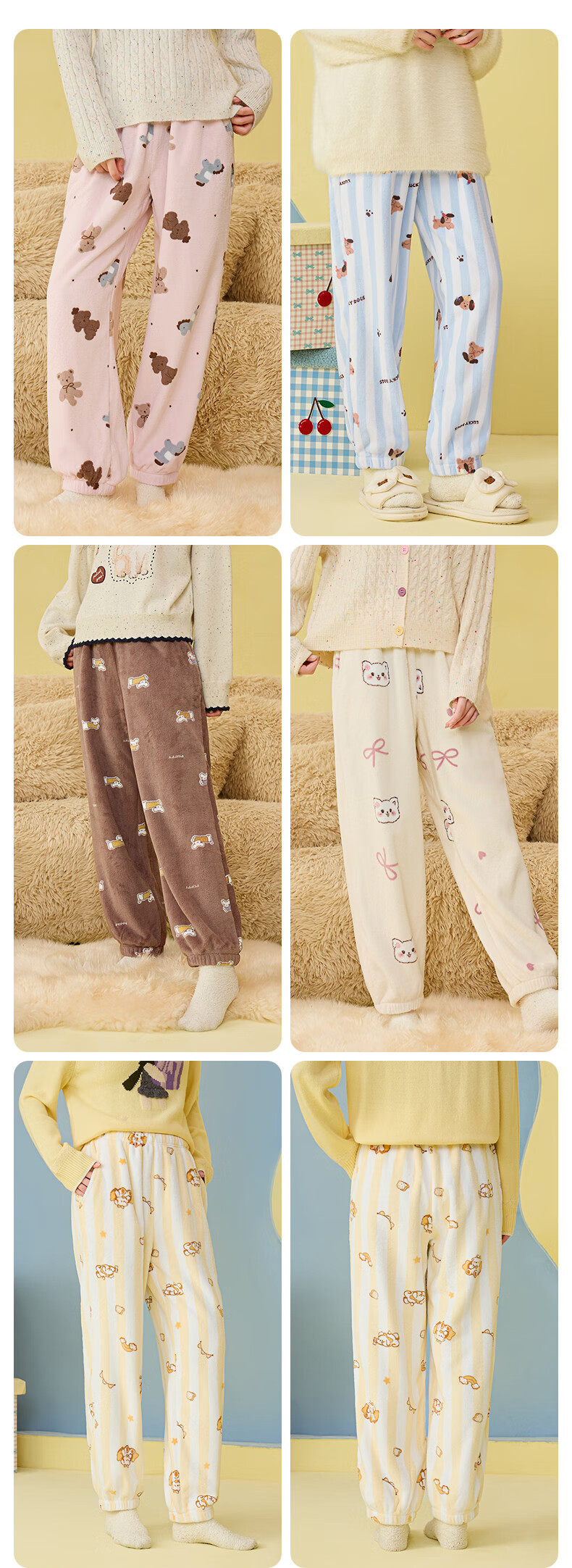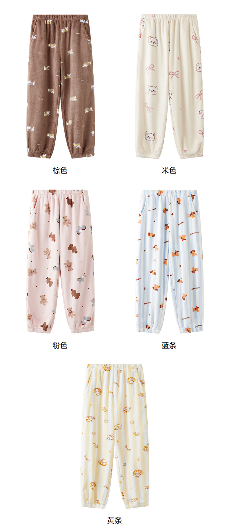 三福(SANFU)女冬季珊瑚绒卡通单裤 宽松抗静电保暖家居服裤子507798 棕色 M