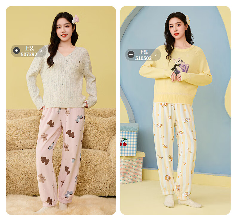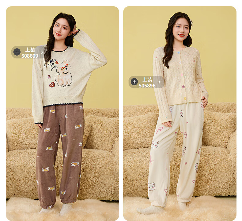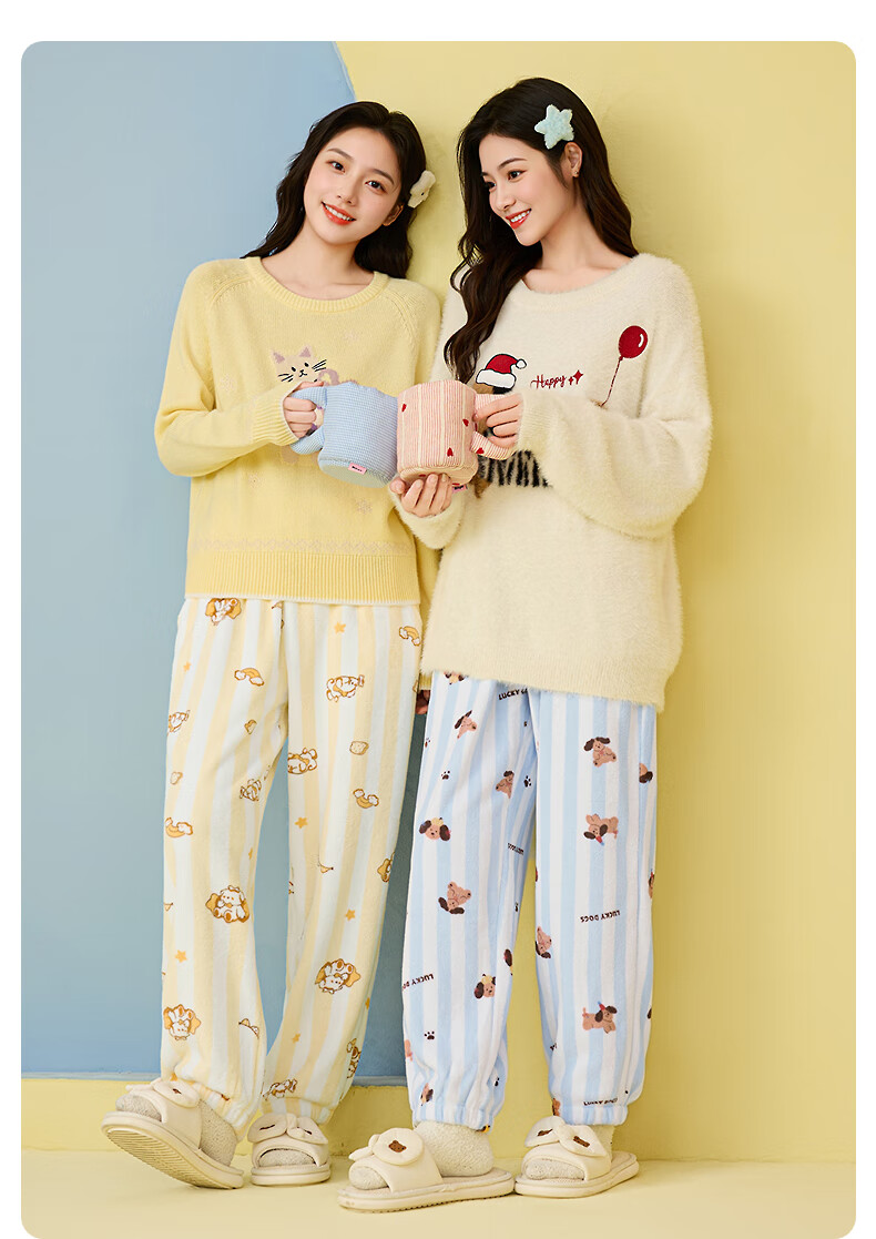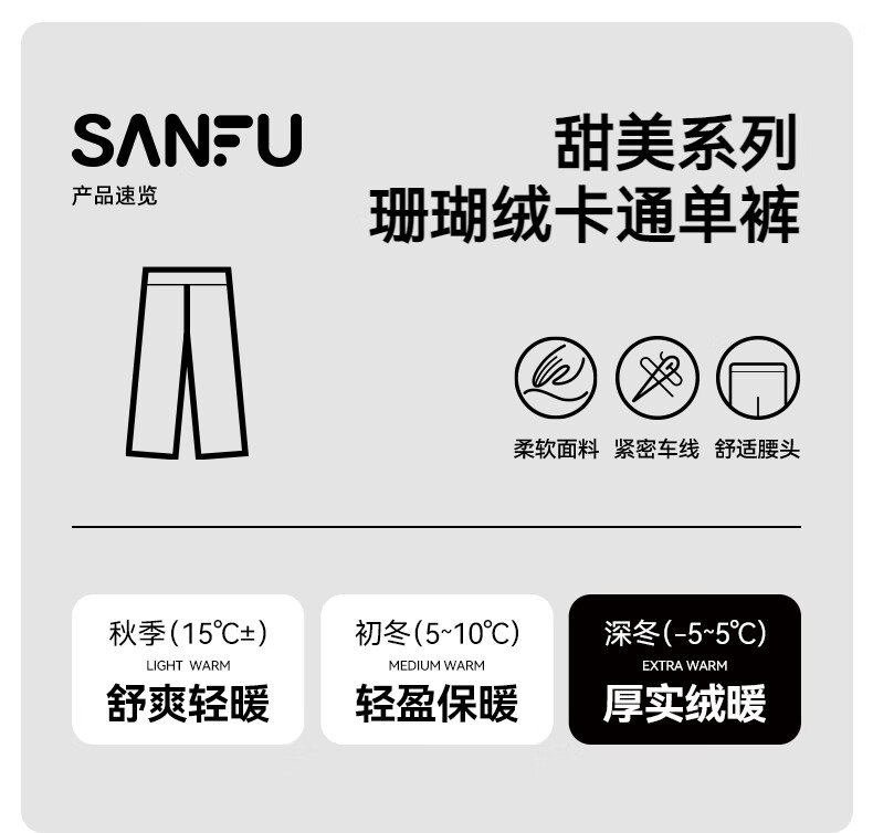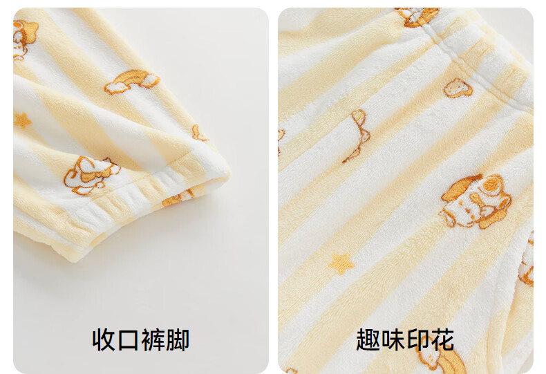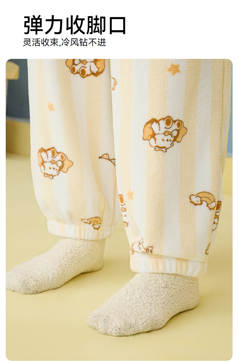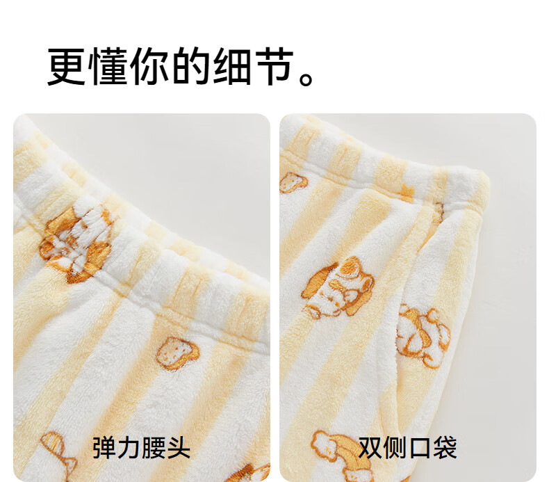 三福(SANFU)女冬季珊瑚绒卡通单裤 宽松抗静电保暖家居服裤子507798 棕色 M