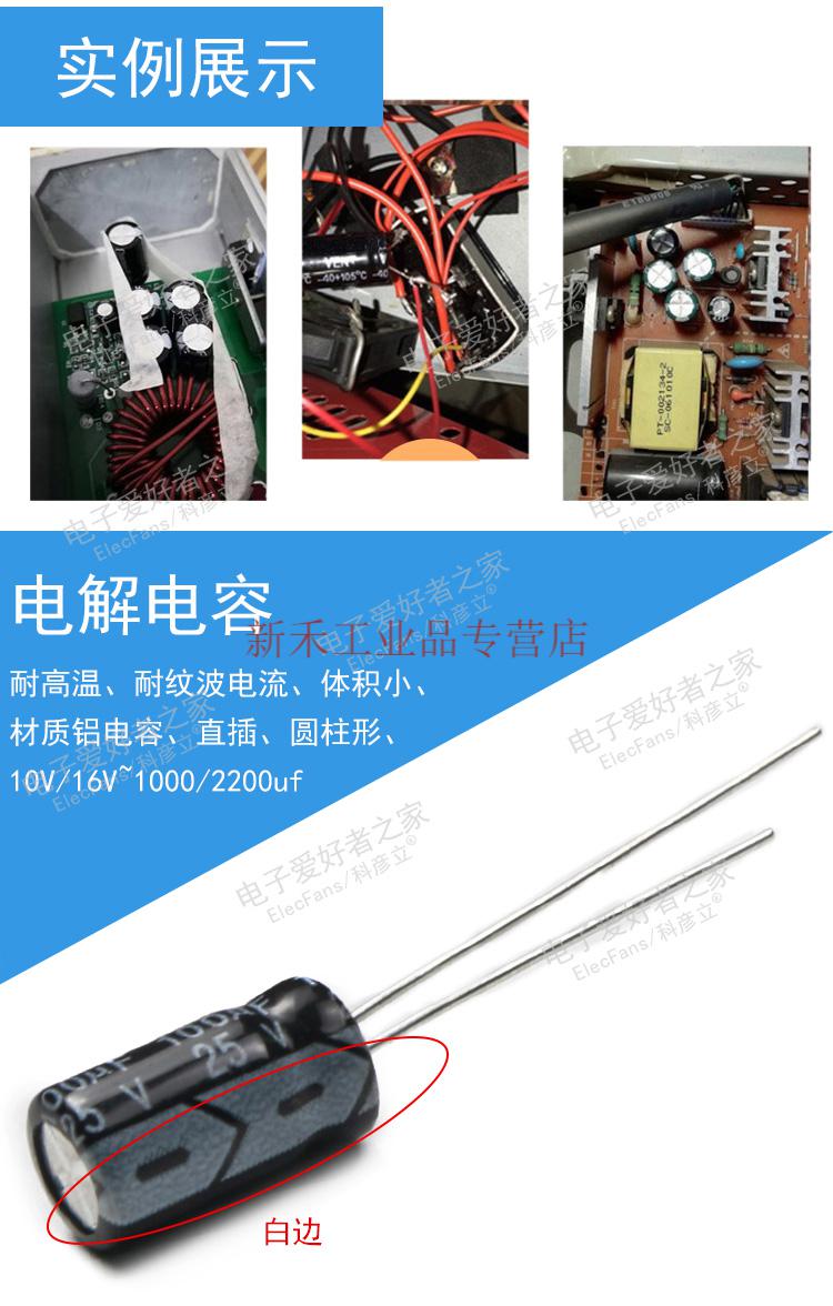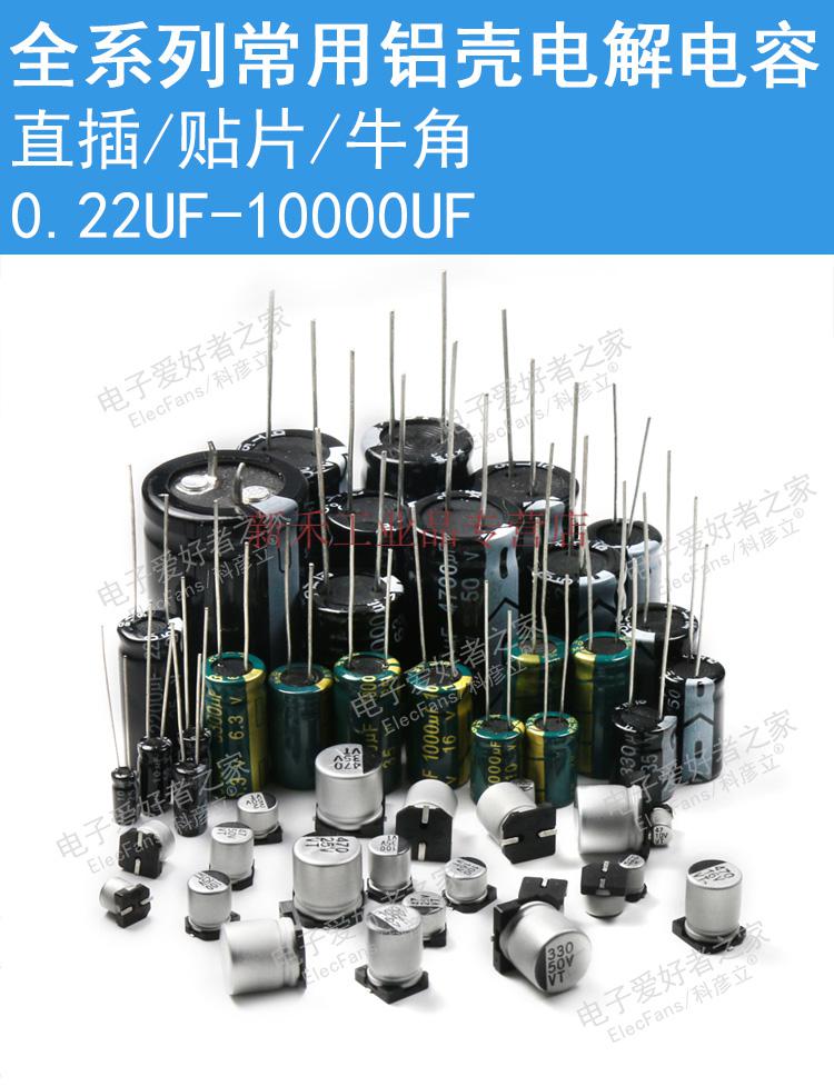 山头林村直插贴片铝壳电解电容1042F10uf2F100uf电容器电子爱好 荧光黄(50个)50v0.22uf