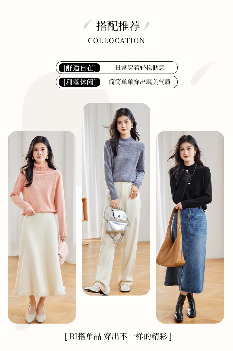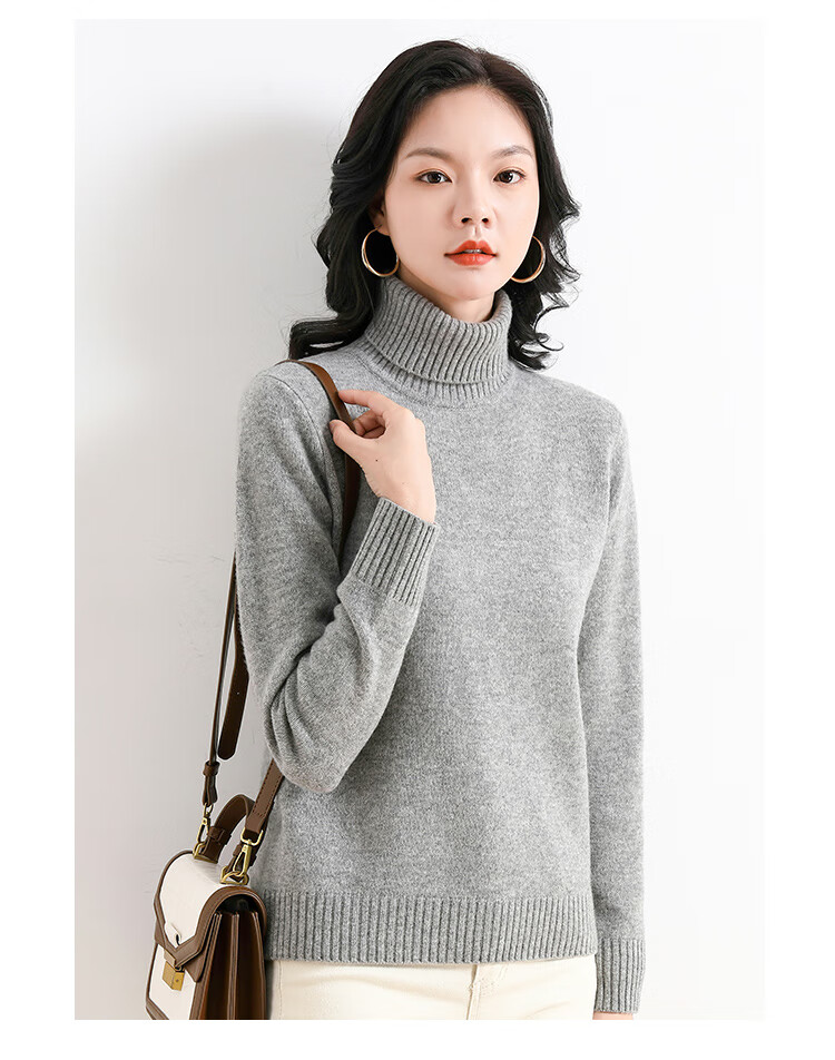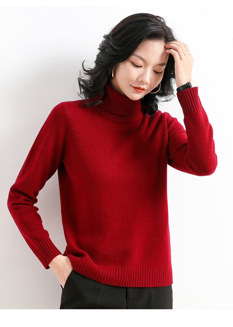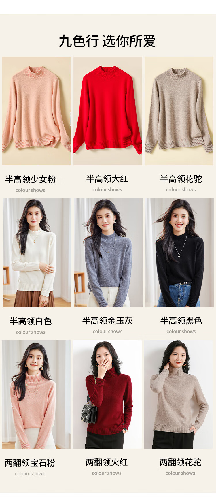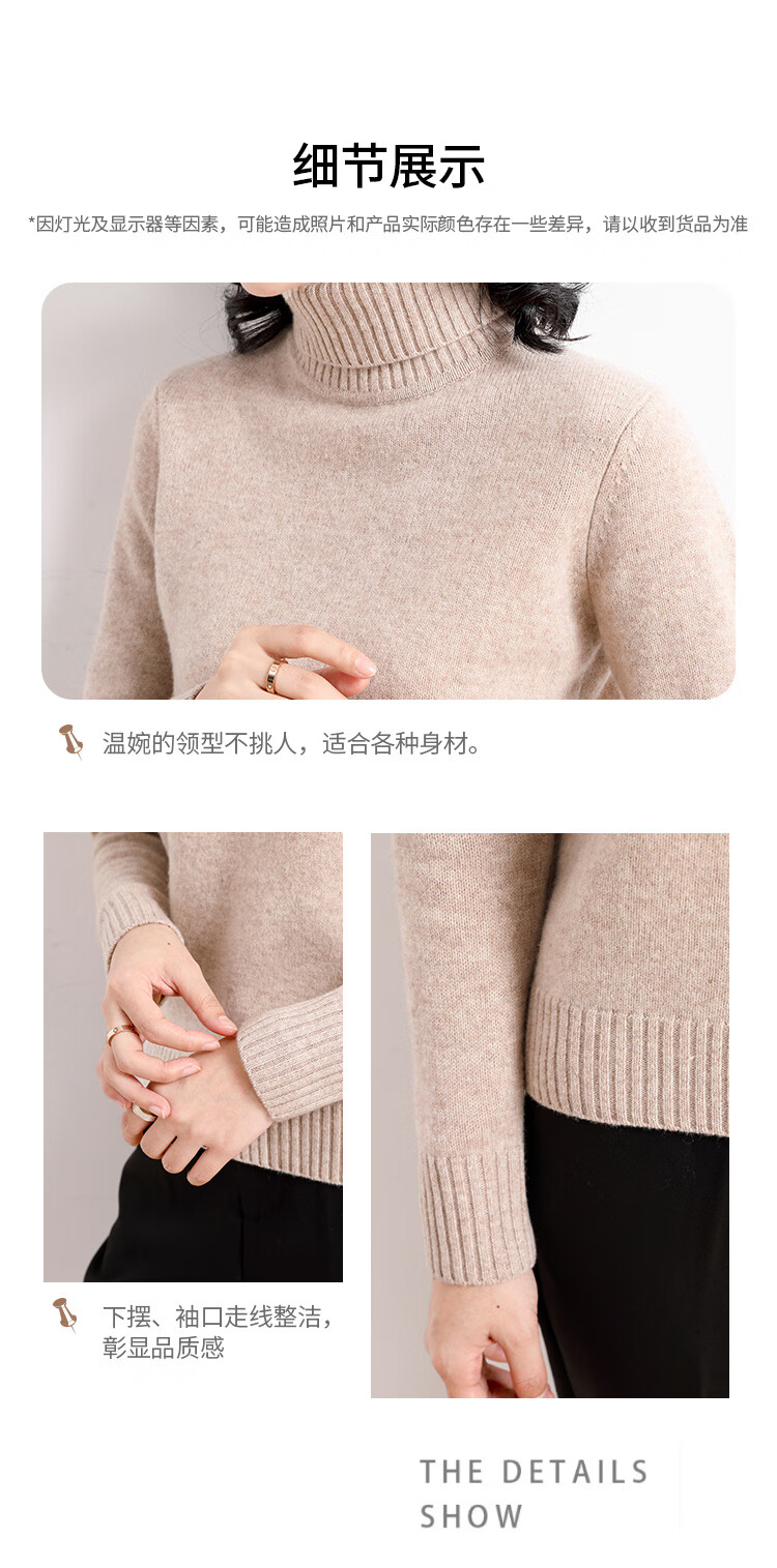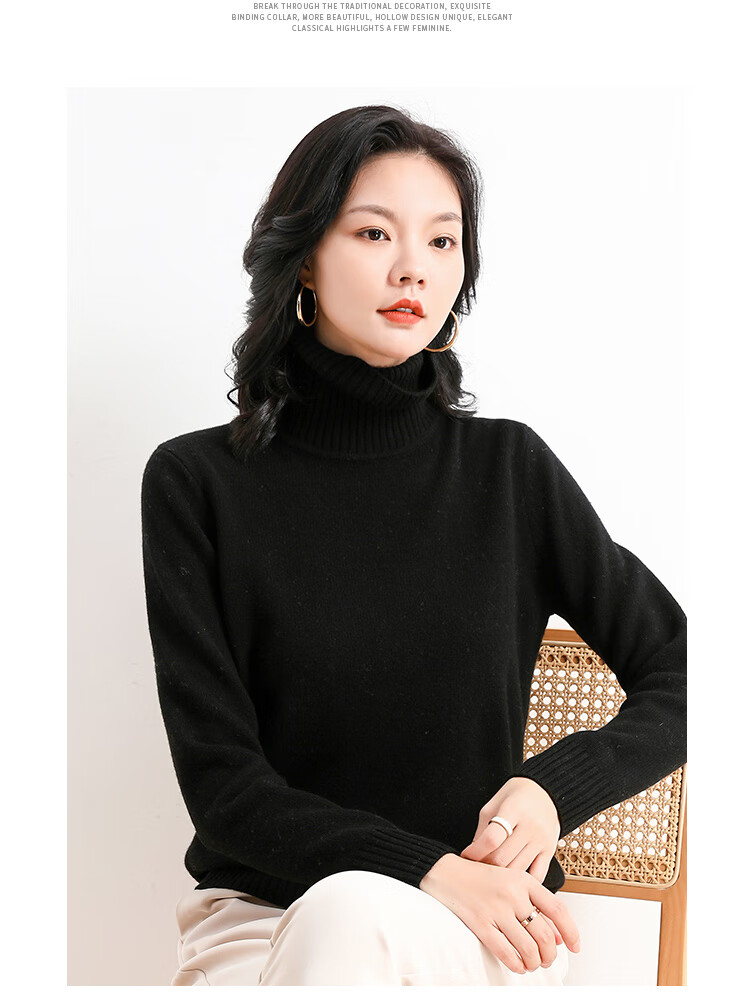 金菊抗静电100%绵羊毛秋冬特卖款打底两翻领加厚毛衣保暖毛衣女羊毛衫