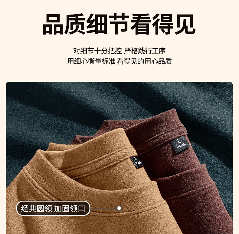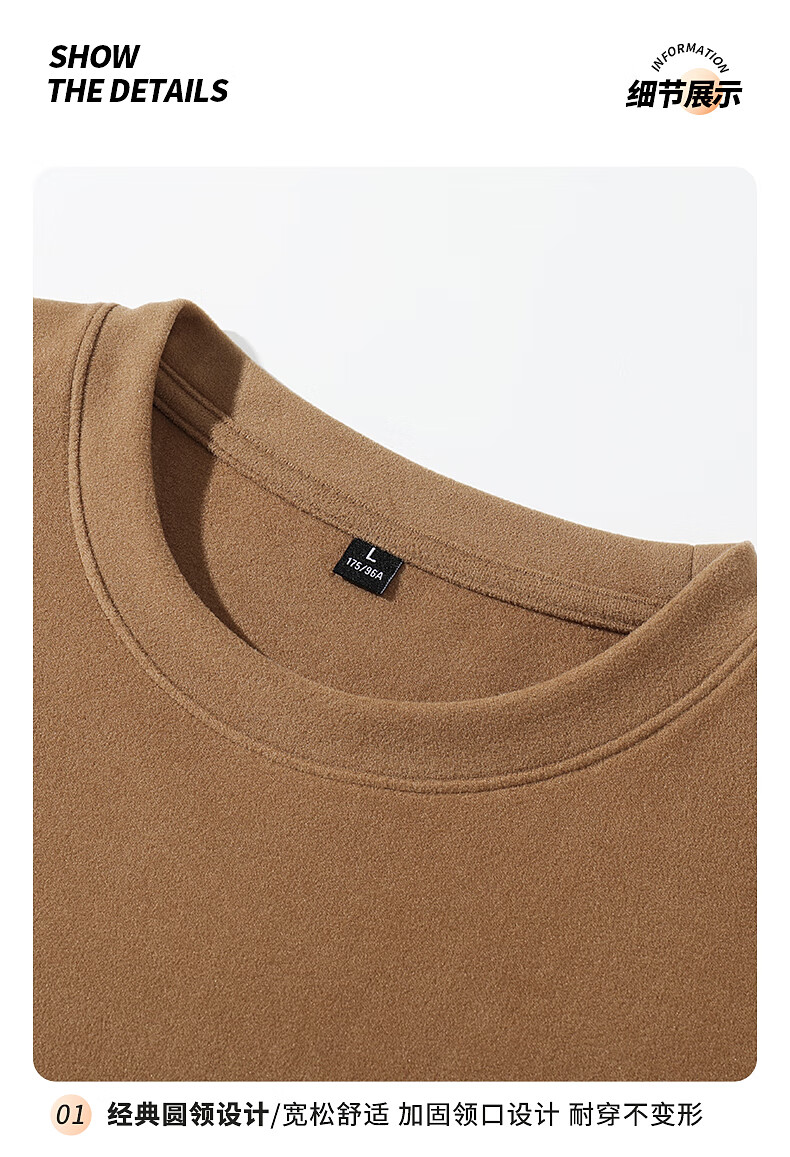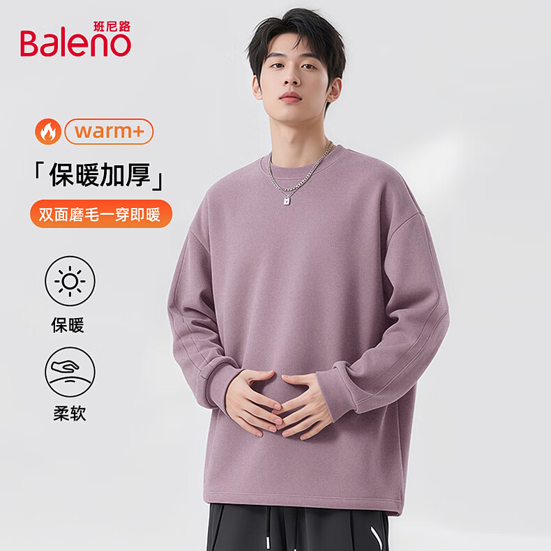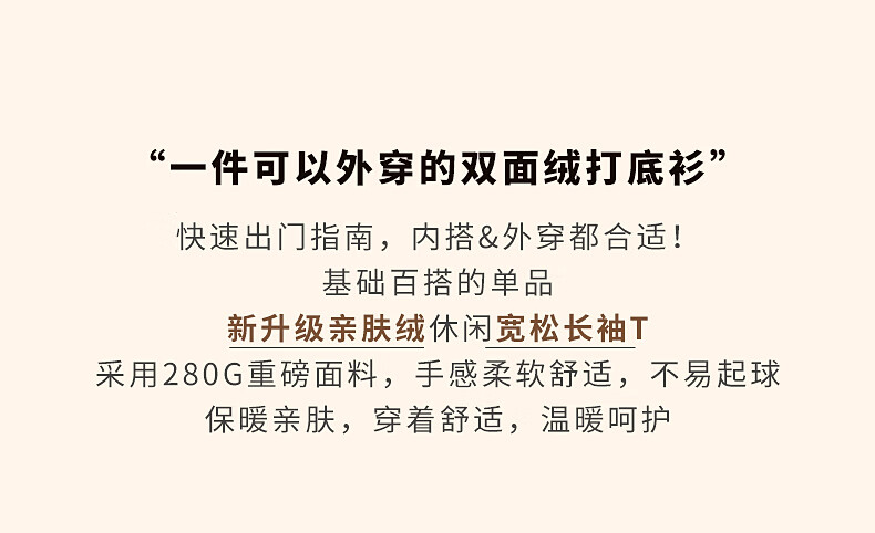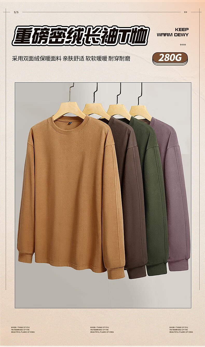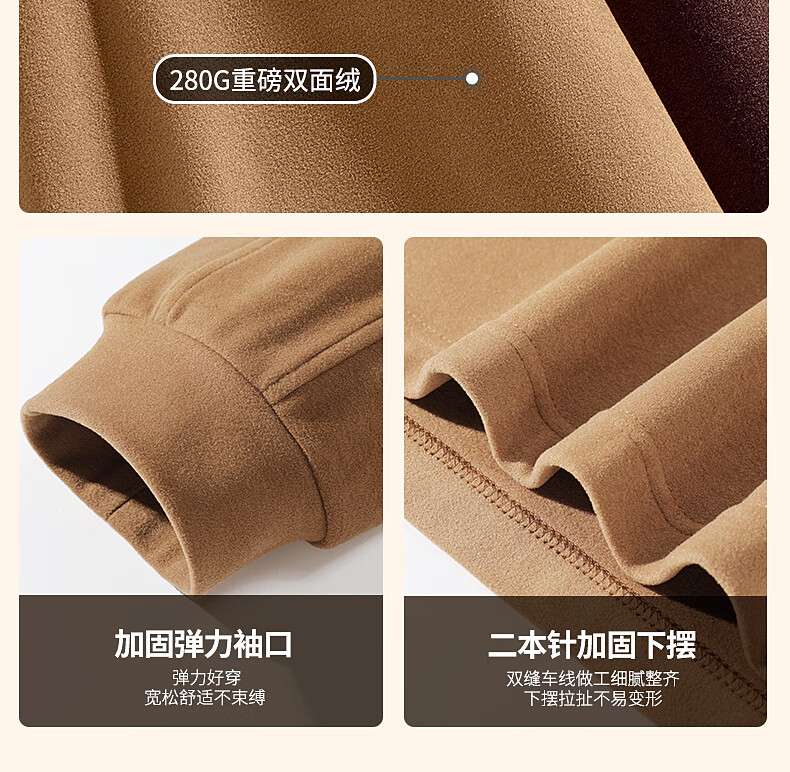 班尼路(Baleno)秋冬季280G重磅阔版双面绒上衣男潮流百搭柔软亲肤舒适简约款长袖 【双面绒】-咖#纯色 XL