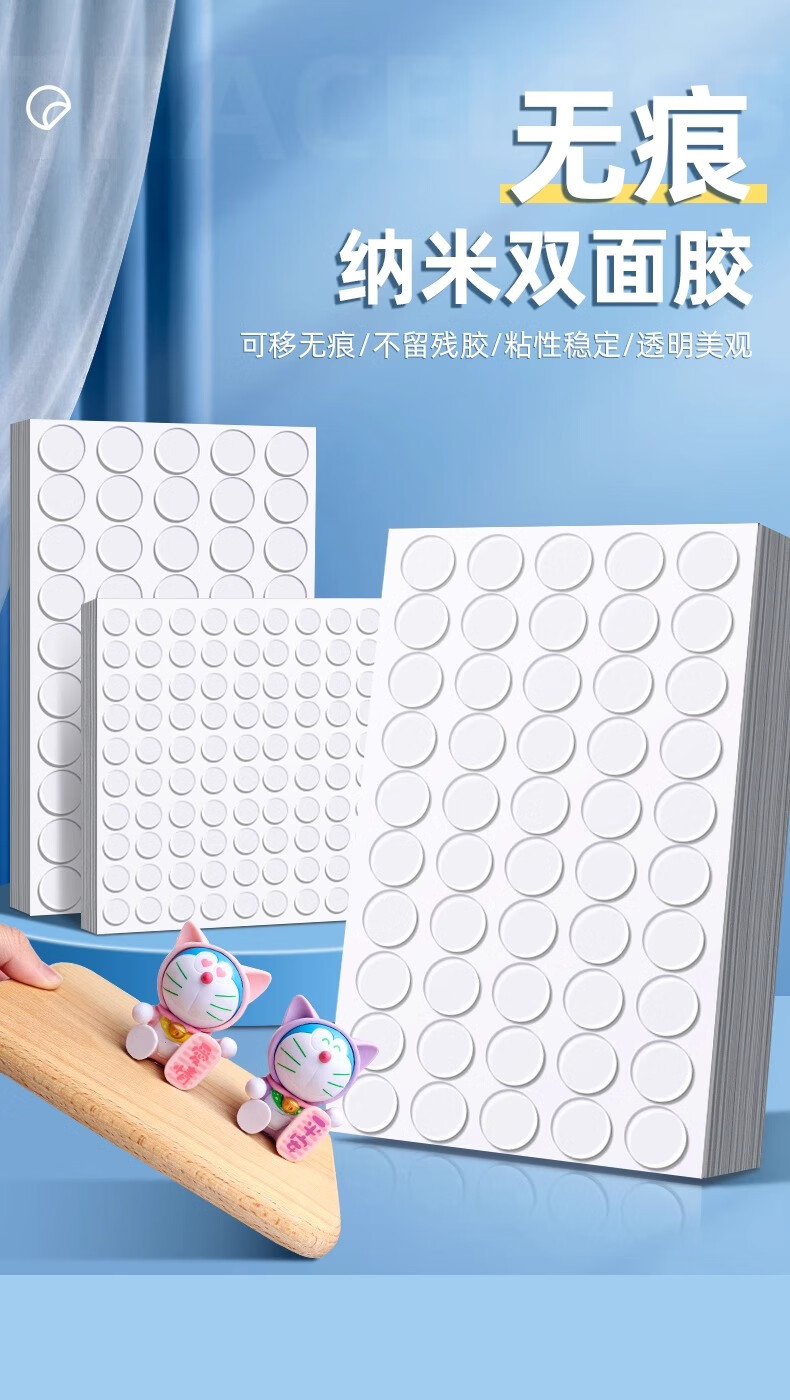 科斯丁点点胶纳米无痕胶圆点双面胶贴片胶贴易撕不留痕结婚房摆件婚车贴