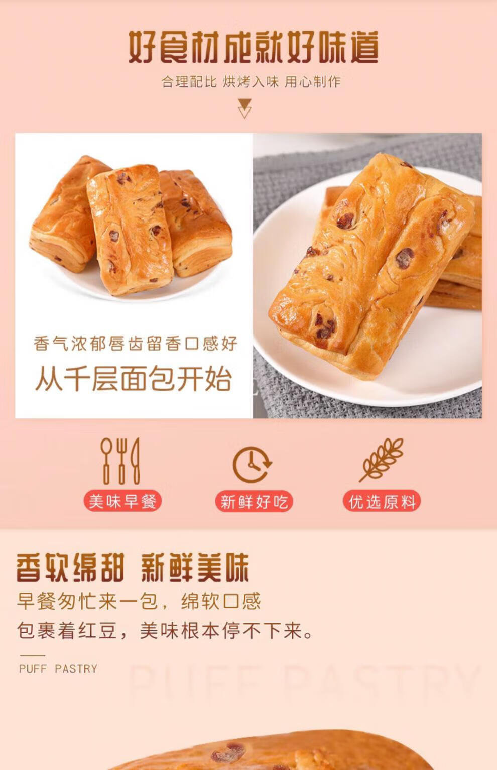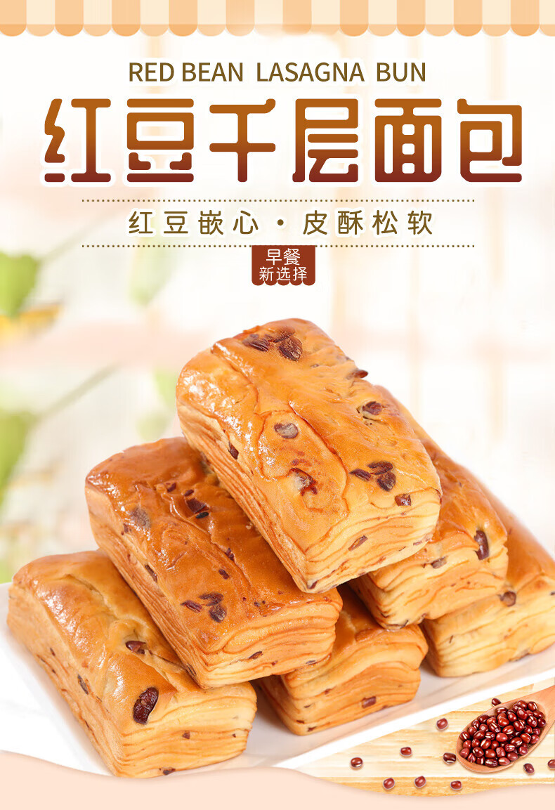 红豆面包整箱早餐千层手撕面包健康零食小吃休闲食品即食夜宵充饥 红豆千层面包500g+手撕面包500g 500g