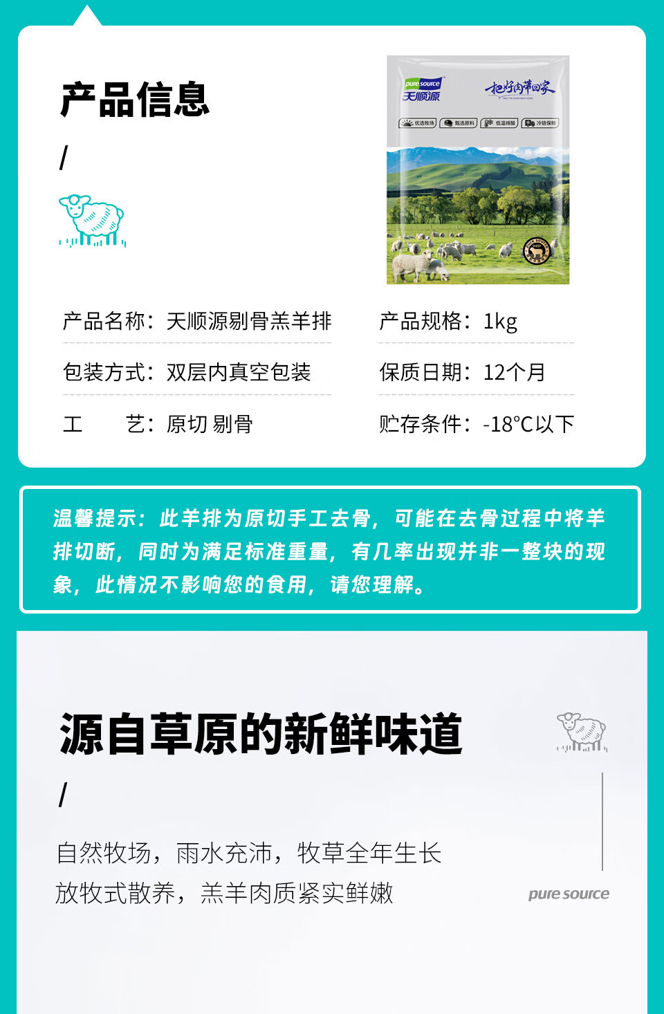 天顺源【草饲散养】新西兰羔羊原切剔骨羊排肉 2斤 生鲜排酸肉 火锅食材