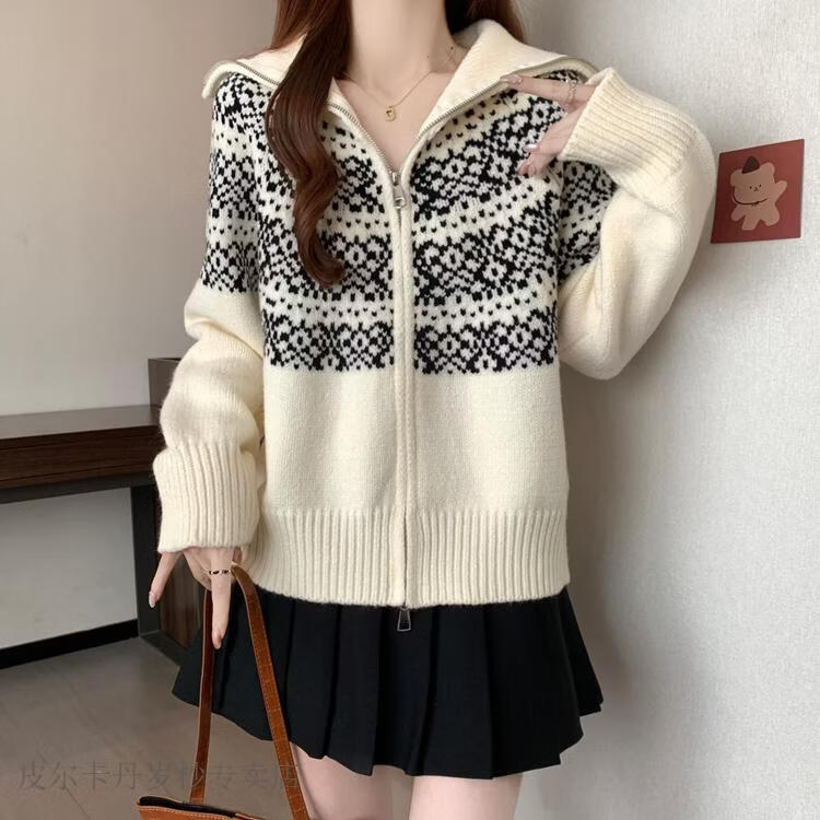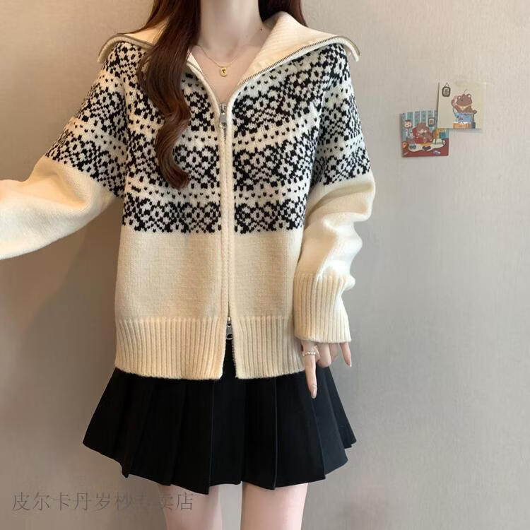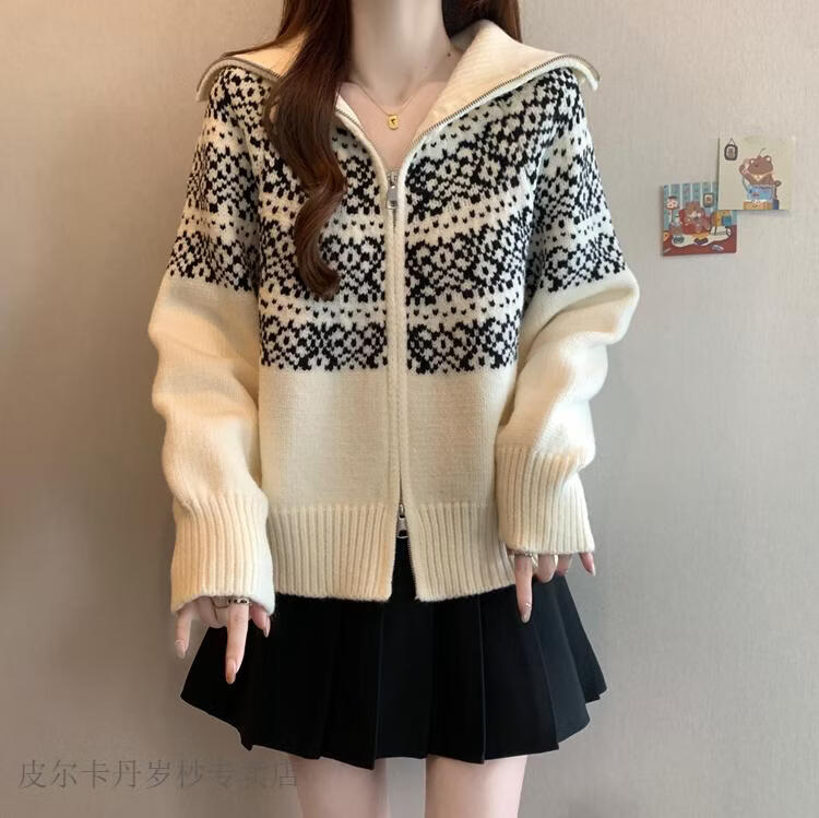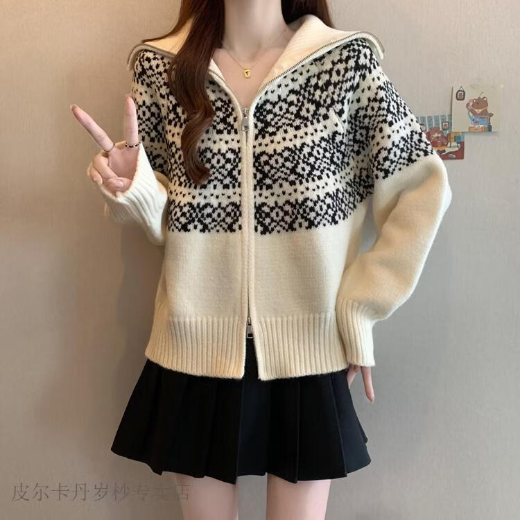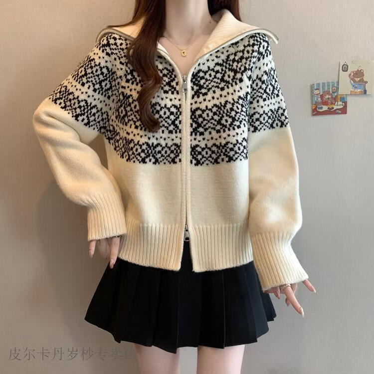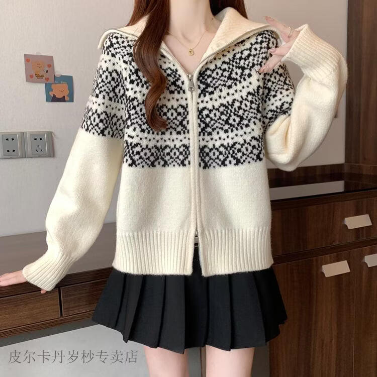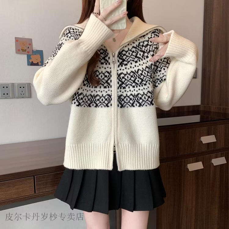 皮尔卡丹费尔岛红色翻领正肩毛衣外套女2025秋冬新款大码胖mm圣诞针织开衫 红色毛衣【今年爆款/小众/巨显瘦/遮肉/别致/藏肉 L (100-120斤)