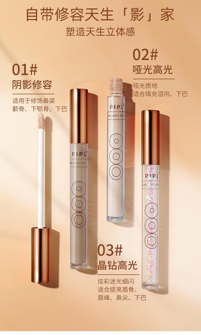 PIPL【买一送一】高光笔液体修容棒提亮鼻影侧影阴影遮瑕保湿修容 ooo阴影修容*2支