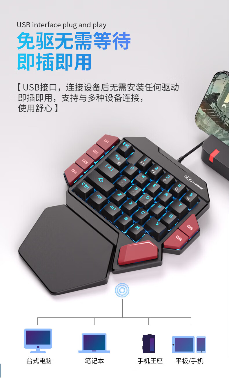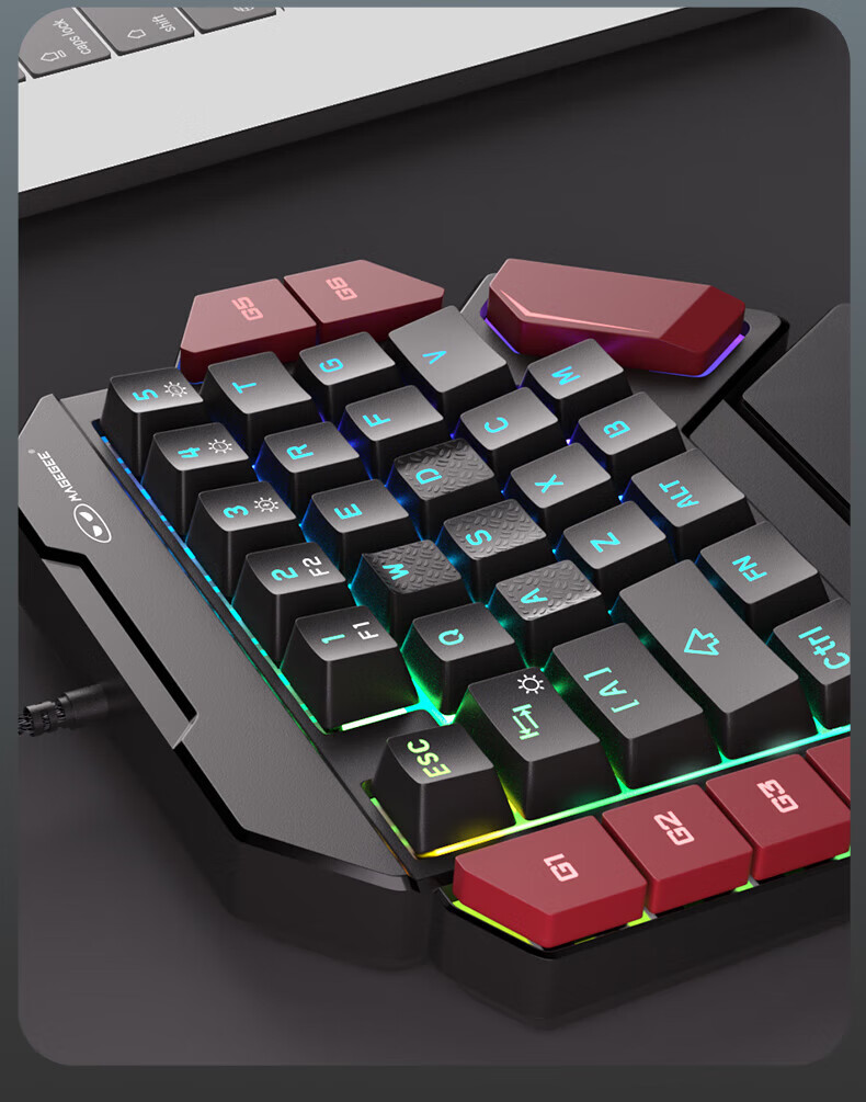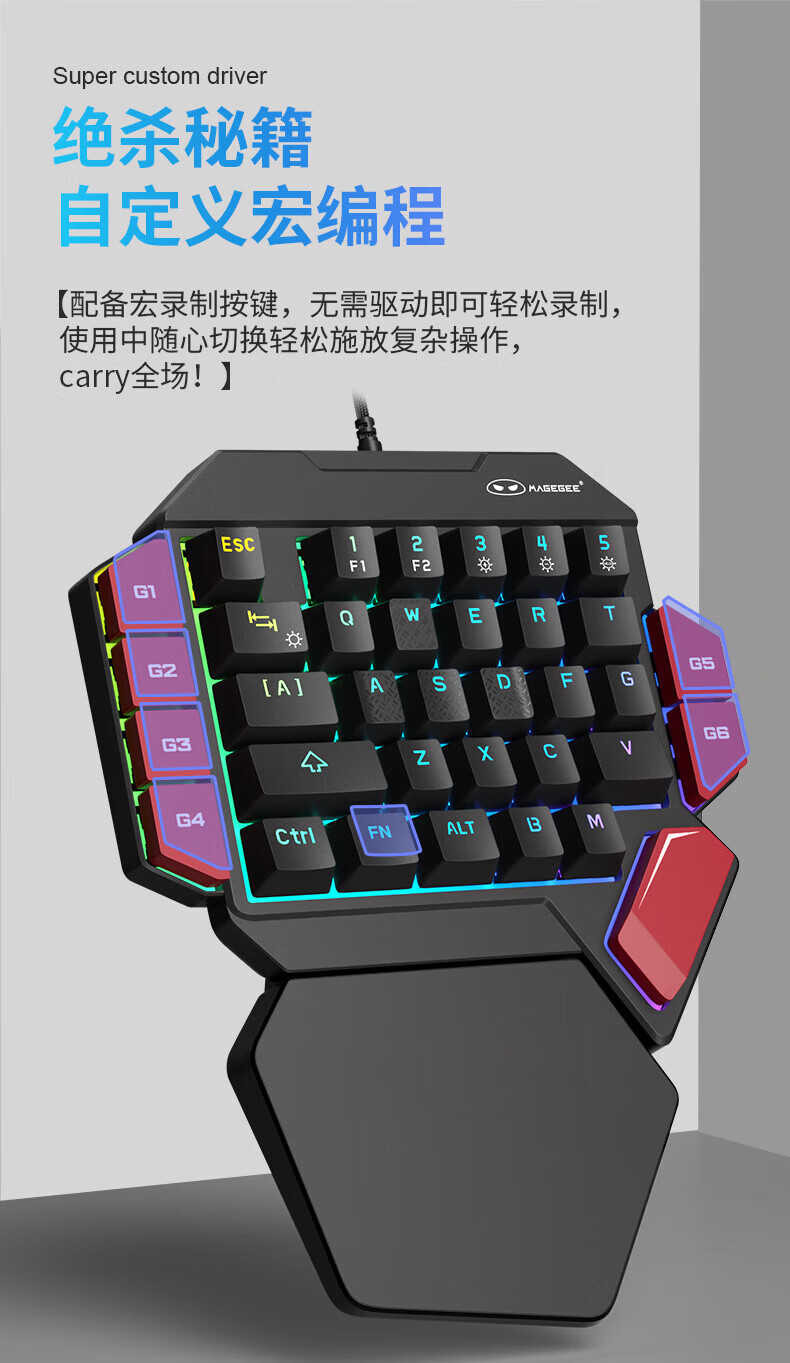 MageGeeMeGee 战斧 单手机械键盘 左手机械键盘 电竞游戏电脑外接键盘 小 战斧2黑红RGB青轴