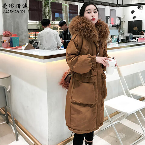 衣宫阁(YIGONGGE)羽绒服女款2025年最新款90白鸭绒真毛领中长冬韩版连帽过膝收腰加 焦糖色(焦糖滩羊毛) S
