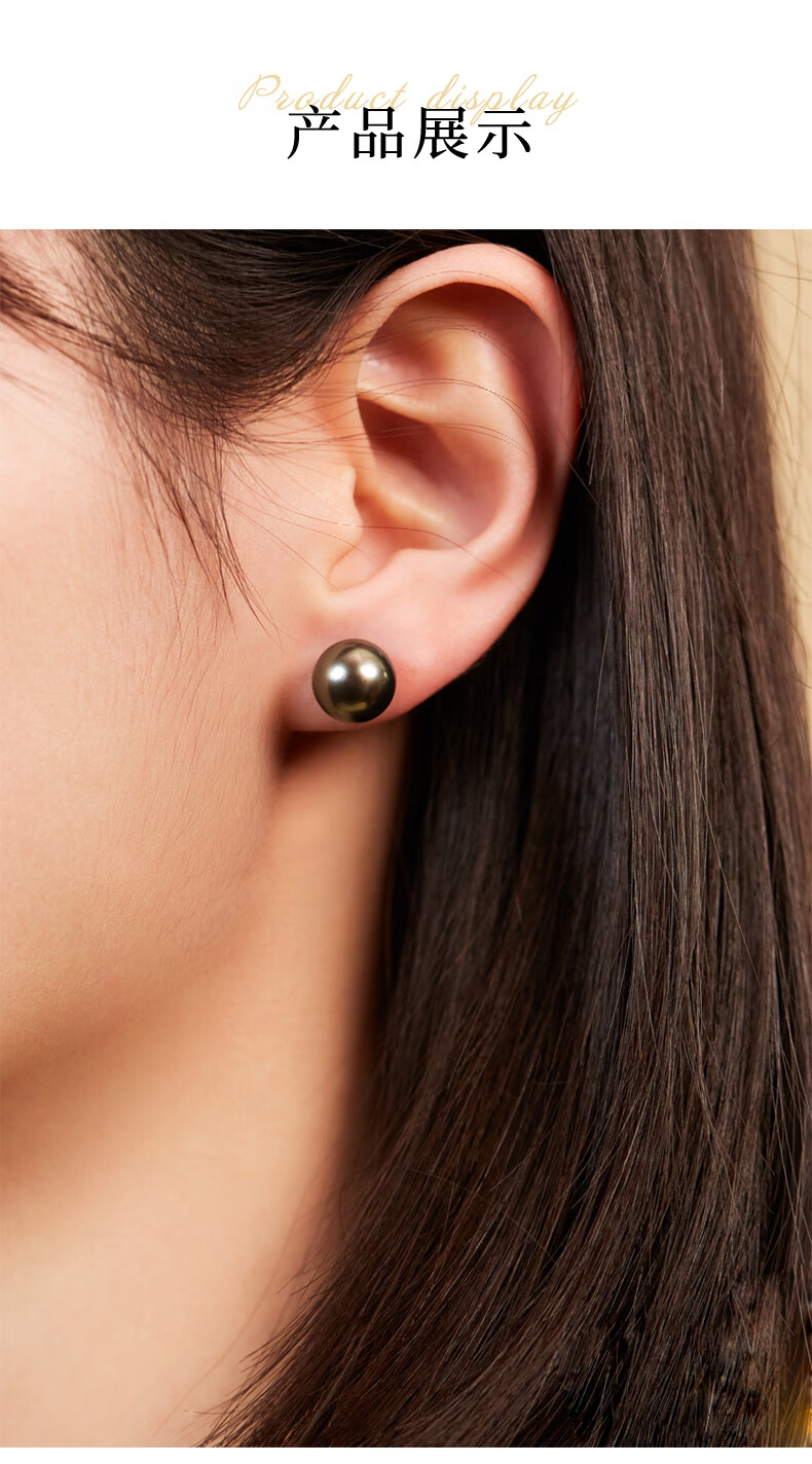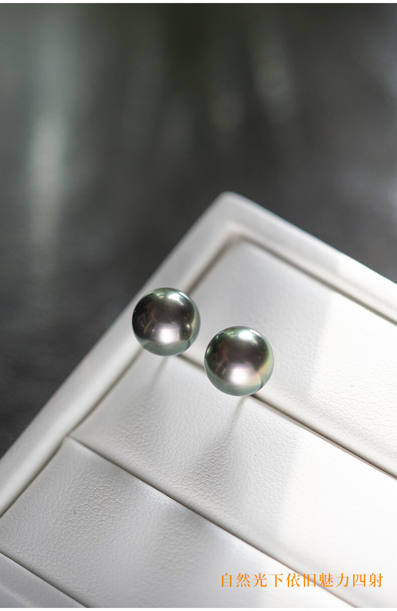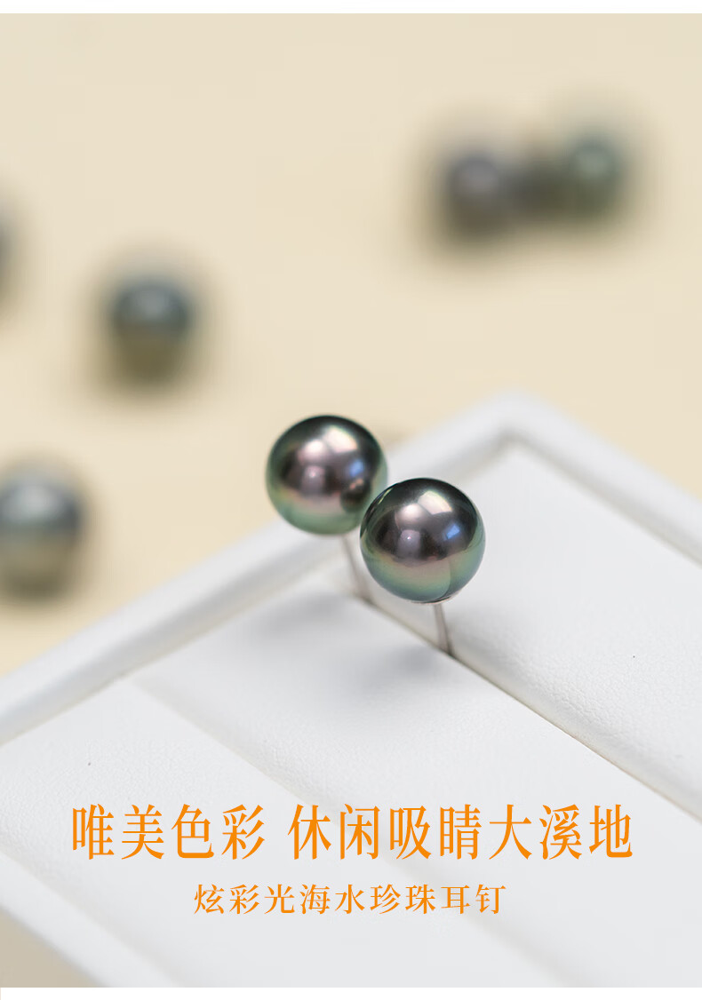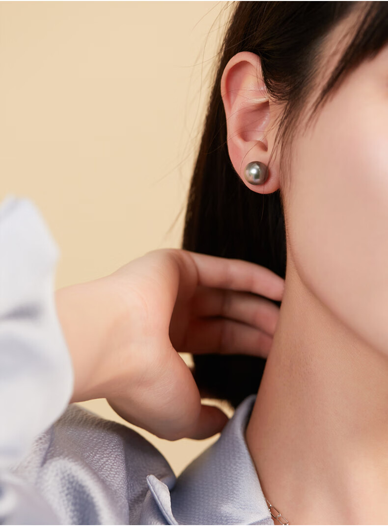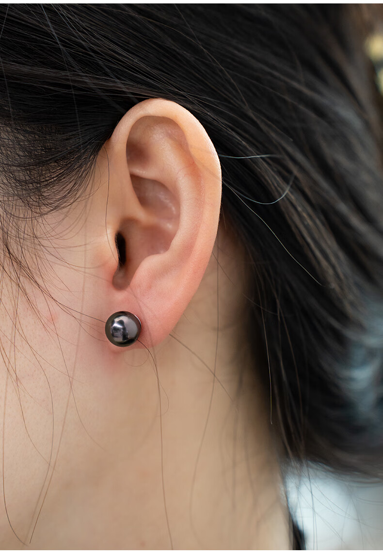风下大溪地海水黑珍珠耳钉 微巴洛克炫彩光耳饰 S925银耳针通勤百搭