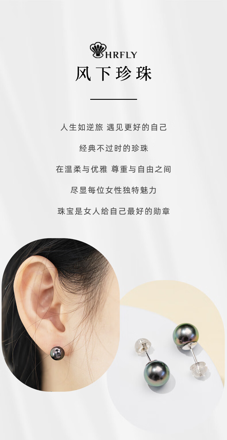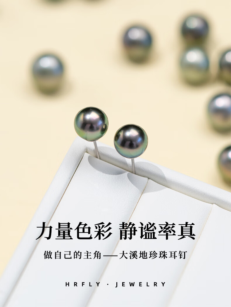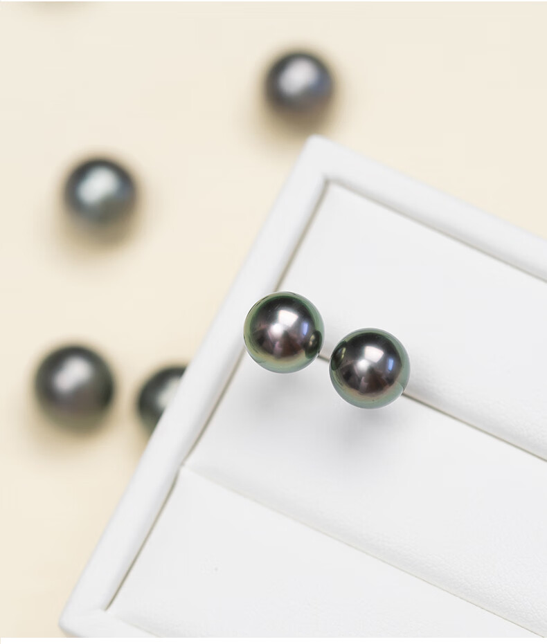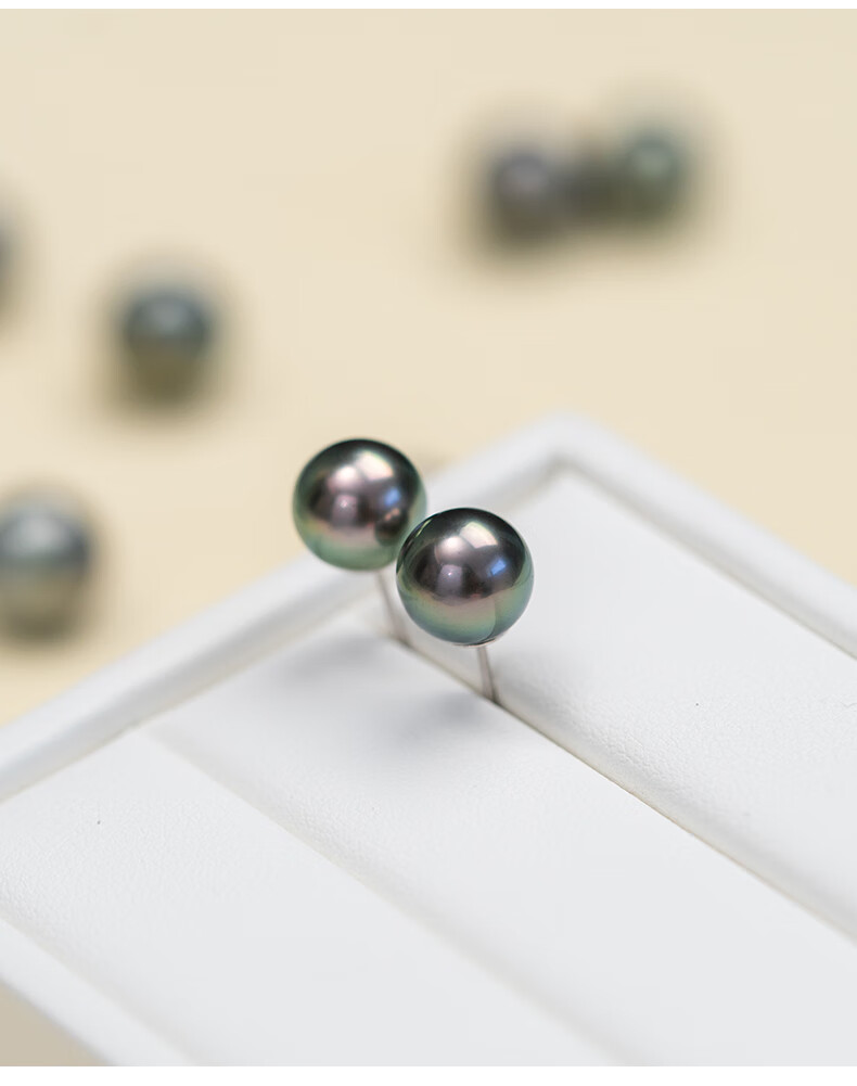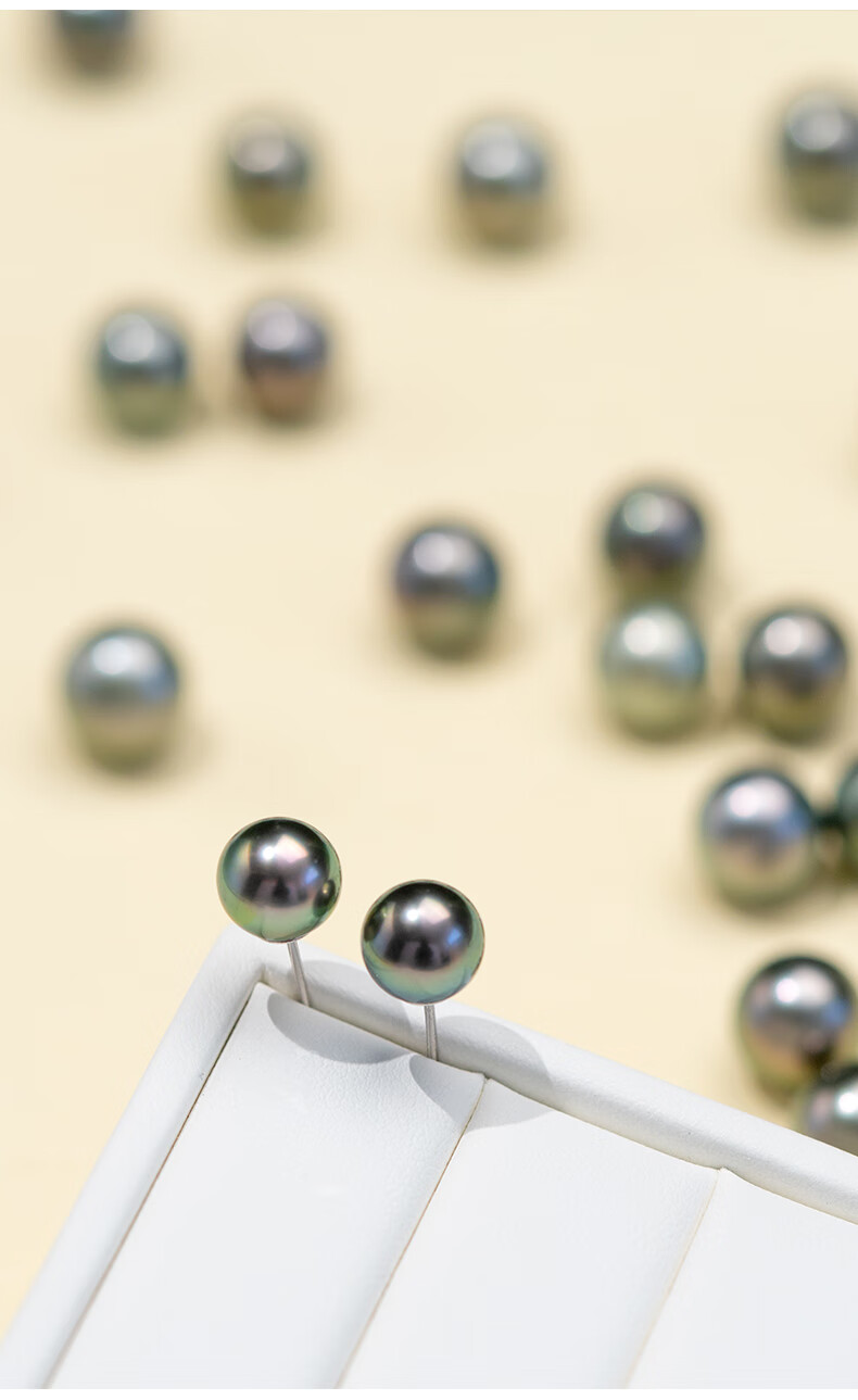 风下大溪地海水黑珍珠耳钉 微巴洛克炫彩光耳饰 S925银耳针通勤百搭