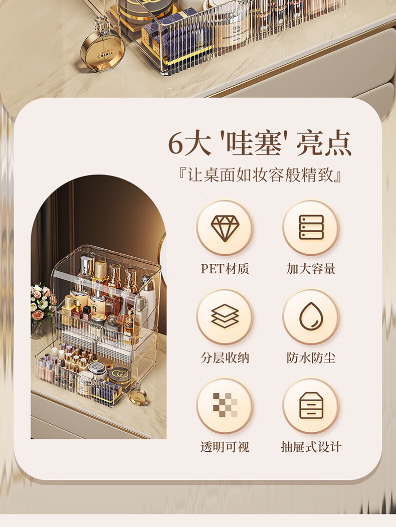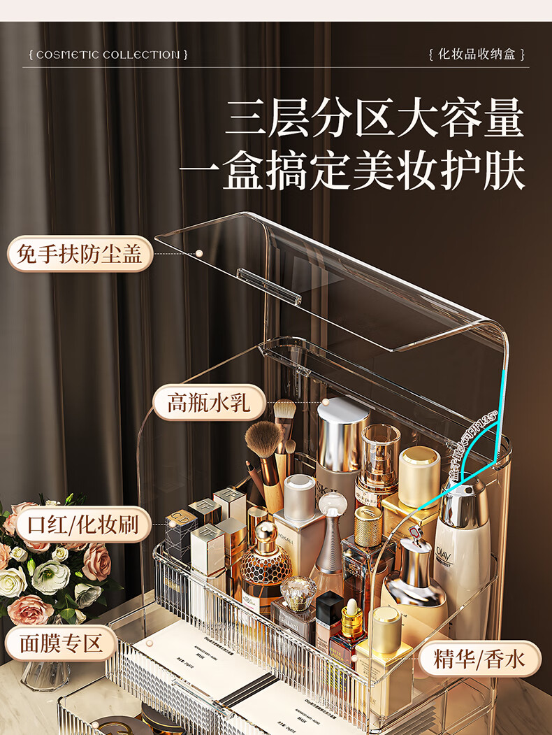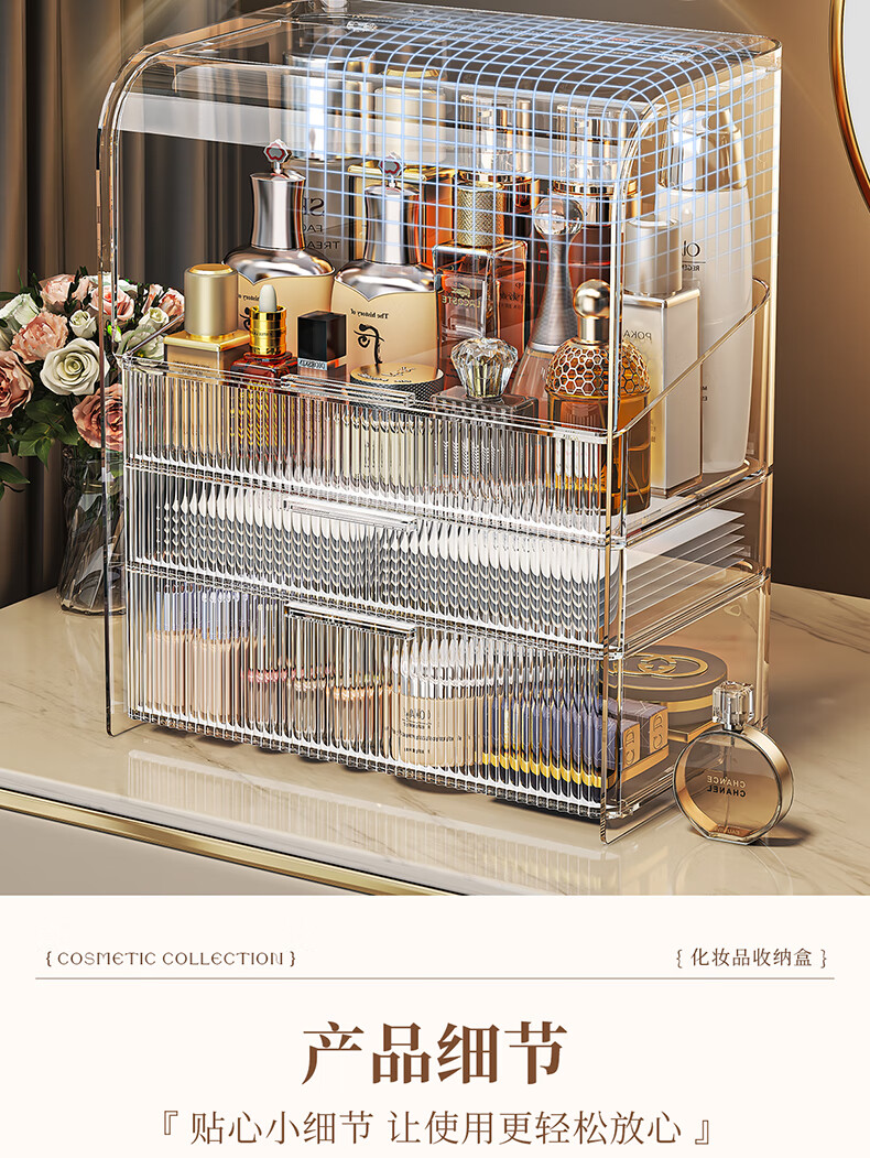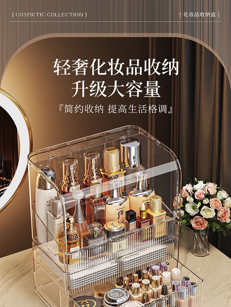欧拉象 OLA XIANG化妆品收纳盒防尘超大容量桌面梳妆台口红护肤品抽屉式透明置物架