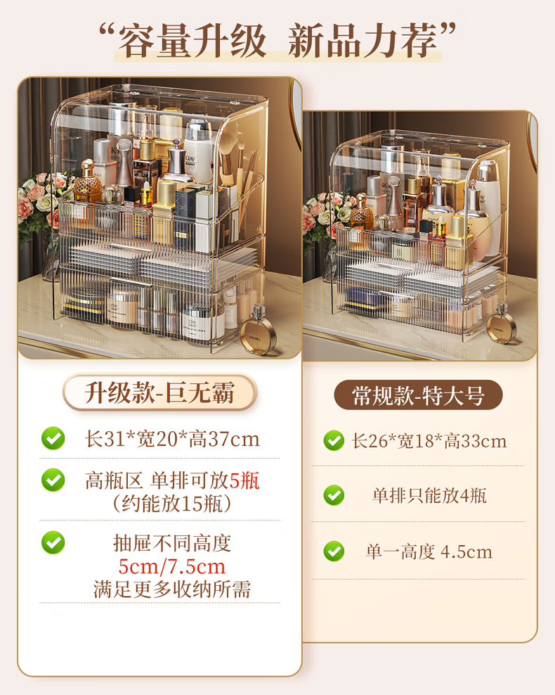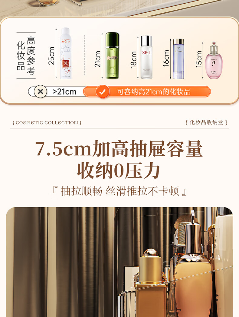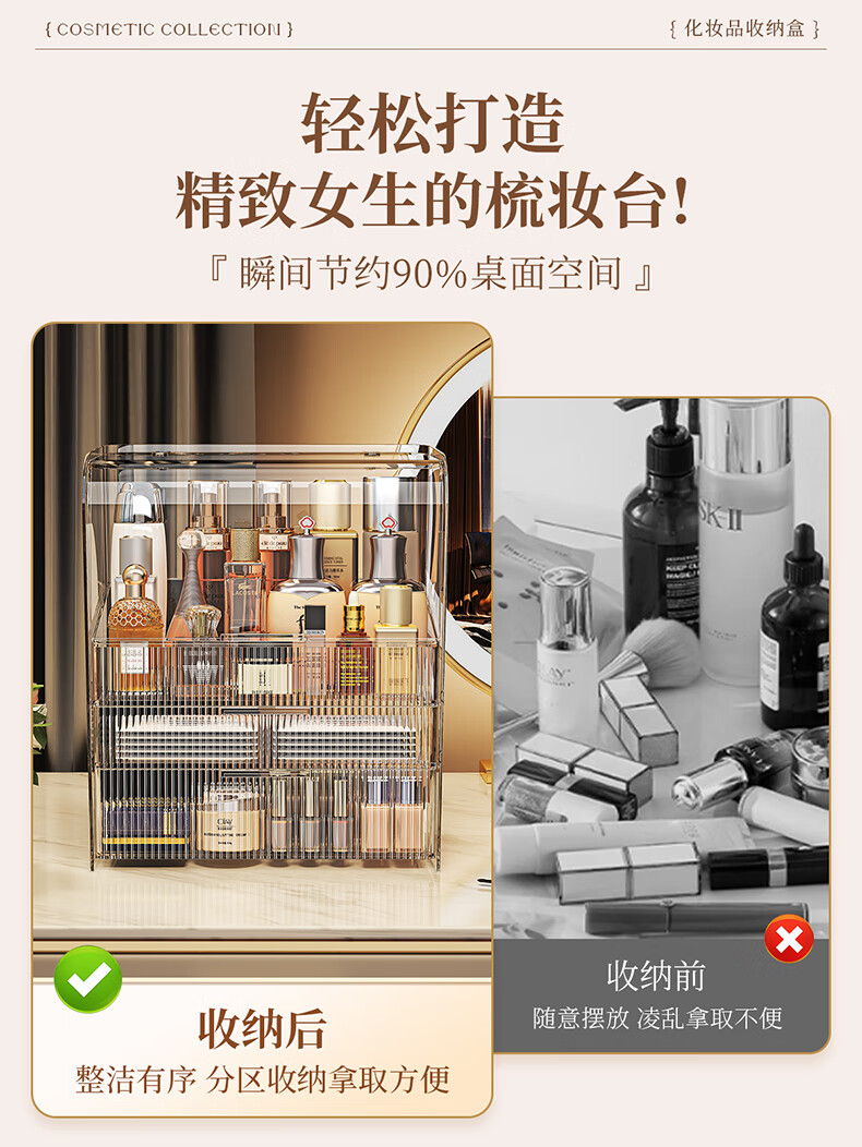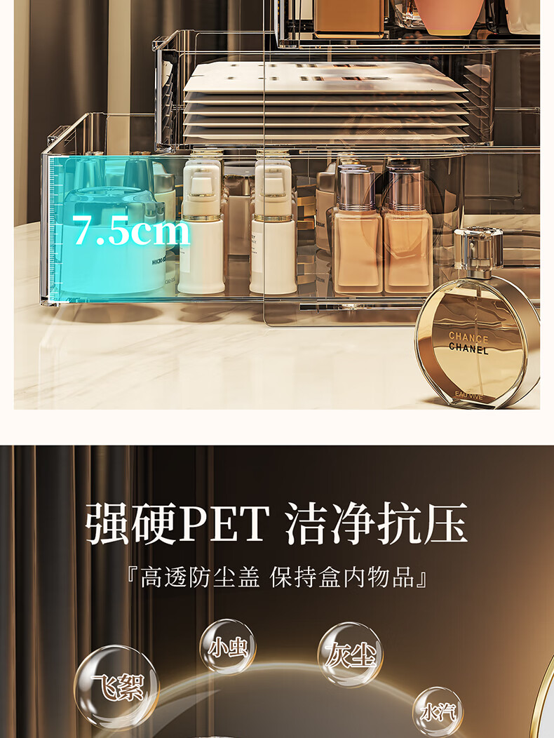 欧拉象 OLA XIANG化妆品收纳盒防尘超大容量桌面梳妆台口红护肤品抽屉式透明置物架