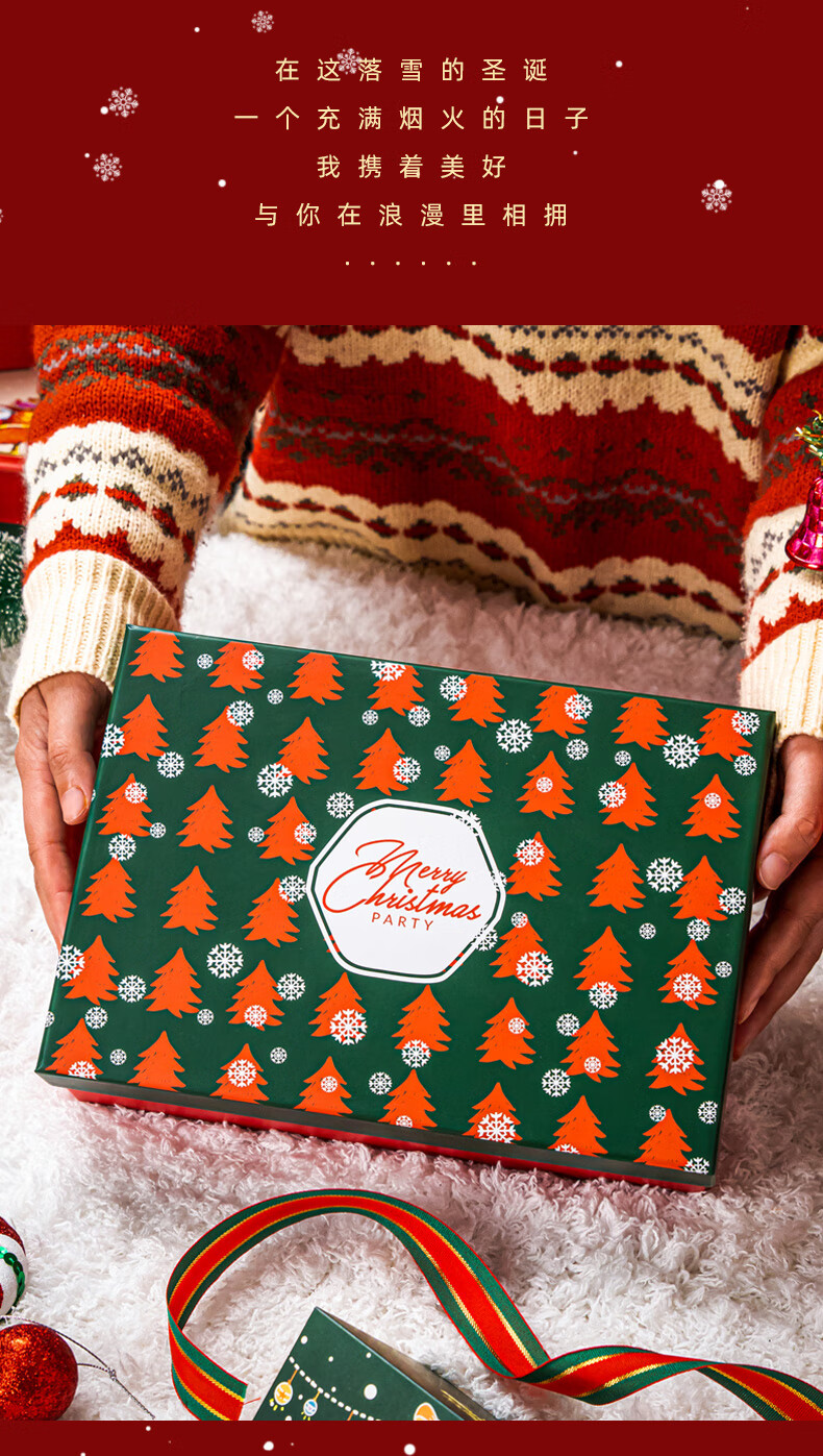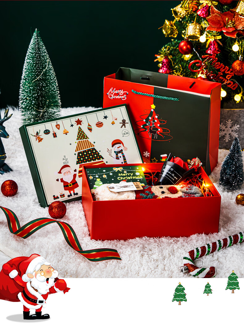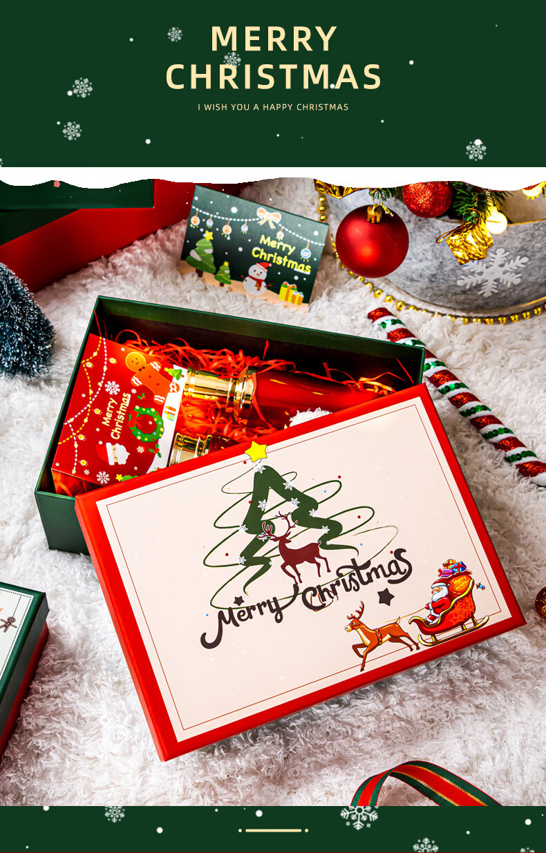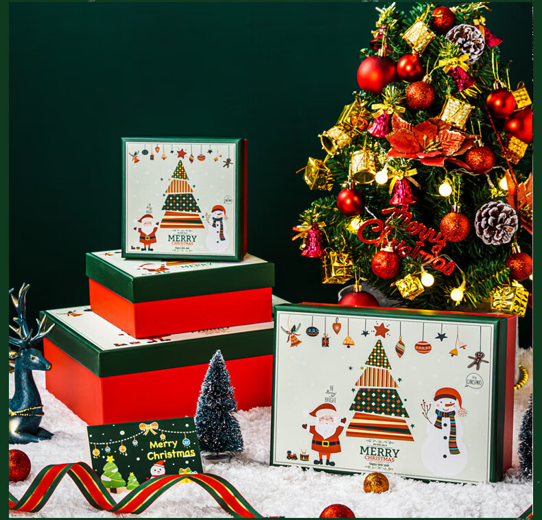 绘萌圣诞礼盒空盒大号平安夜苹果围巾礼品盒包装盒高档礼物盒子男生款 麋鹿礼盒+礼袋+拉菲草+贺卡 5号 27*19*9.5cm