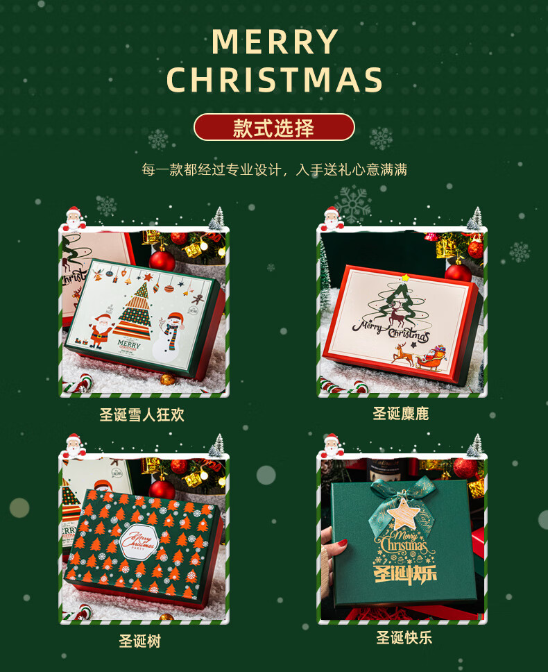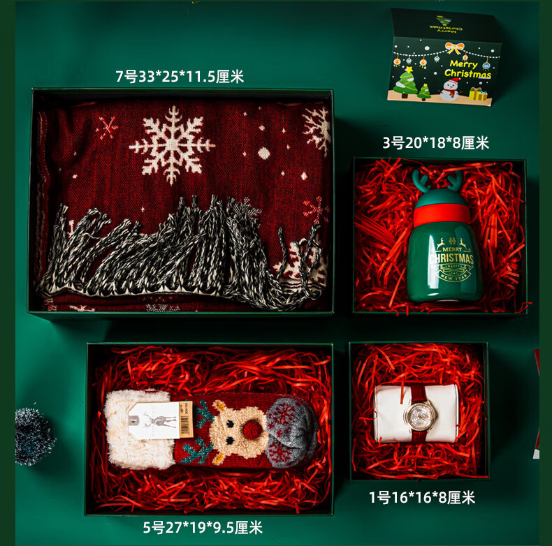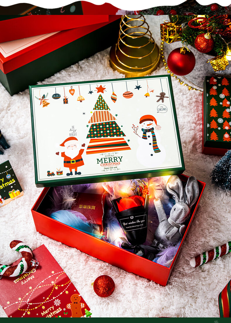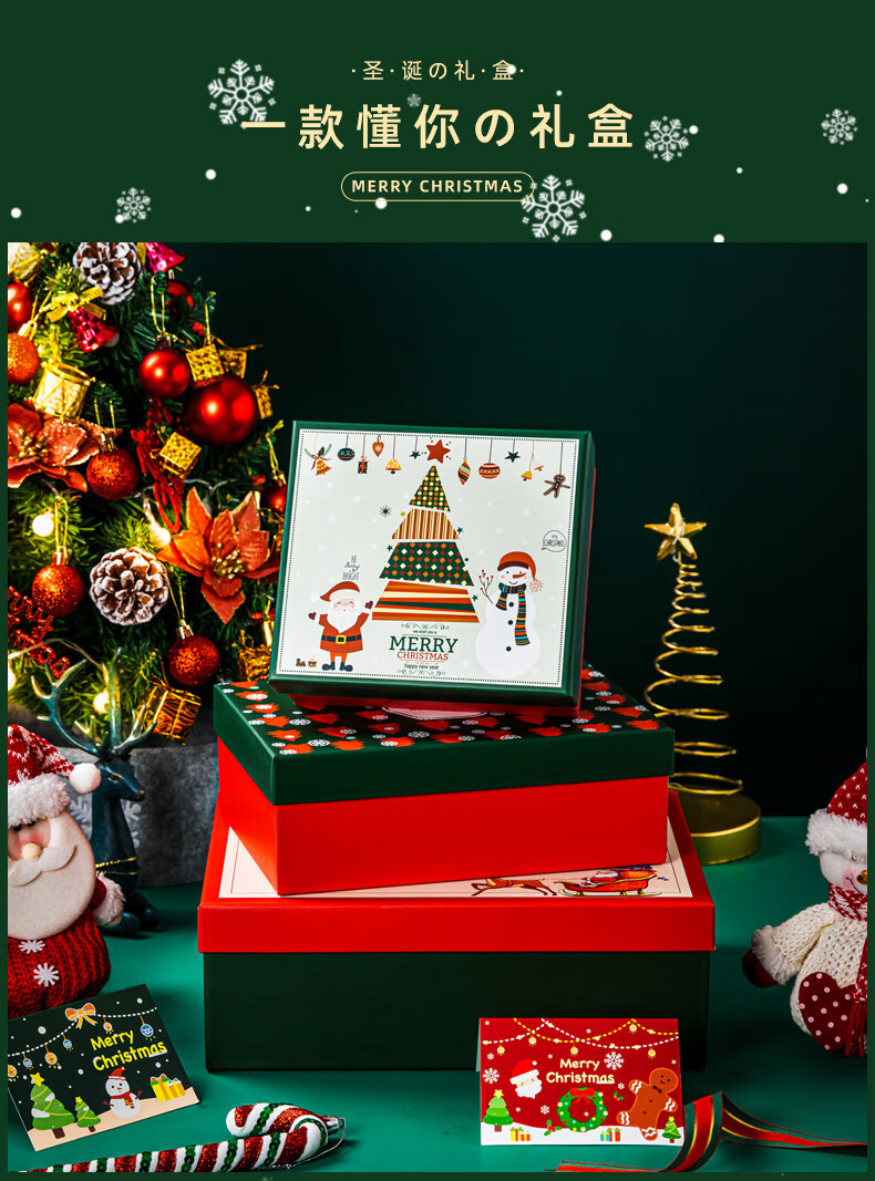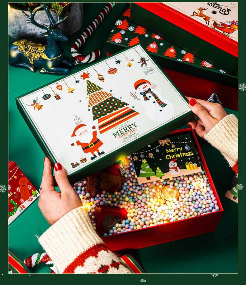 绘萌圣诞礼盒空盒大号平安夜苹果围巾礼品盒包装盒高档礼物盒子男生款 麋鹿礼盒+礼袋+拉菲草+贺卡 5号 27*19*9.5cm