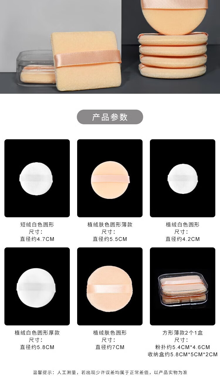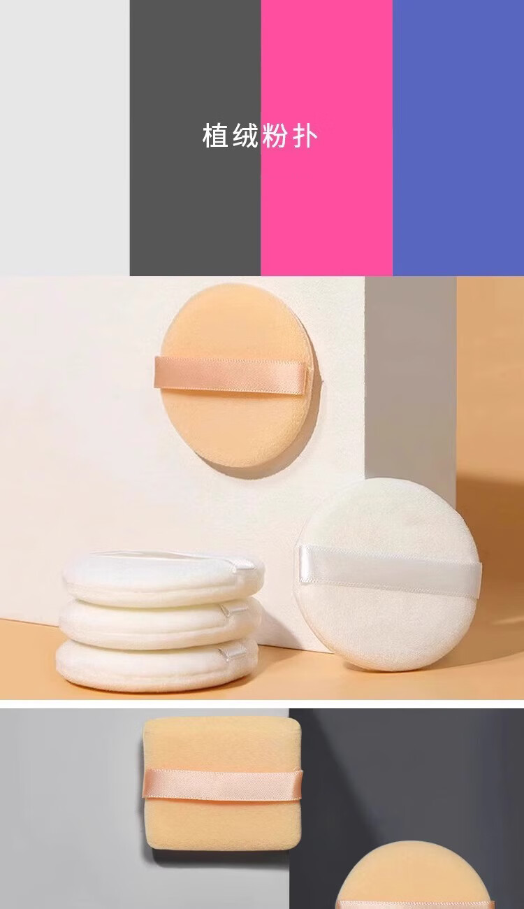 粉扑植绒带绒散粉蜜粉圆形方形粉饼定妆双绒面迷你小号 植绒肤色圆形薄款5.5cm 3个