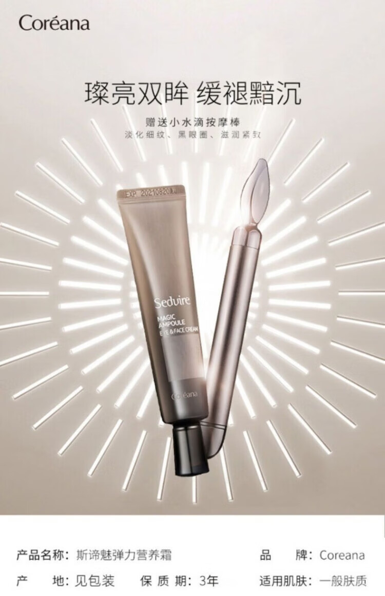 高丽雅娜高丽雅娜肉du眼霜30ml补水紧致滋养淡细纹斯谛魅泪沟眼袋送按摩仪