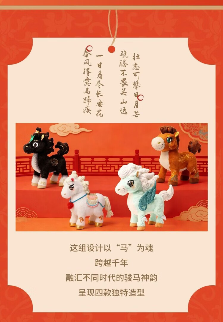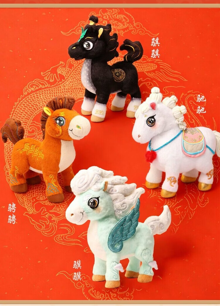 骐骥驰骋马年吉祥物【正版】总台文创马年2026新款吉祥物骐骥驰骋 全套4款(骐骥驰骋)毛绒玩偶【带礼盒证书】
