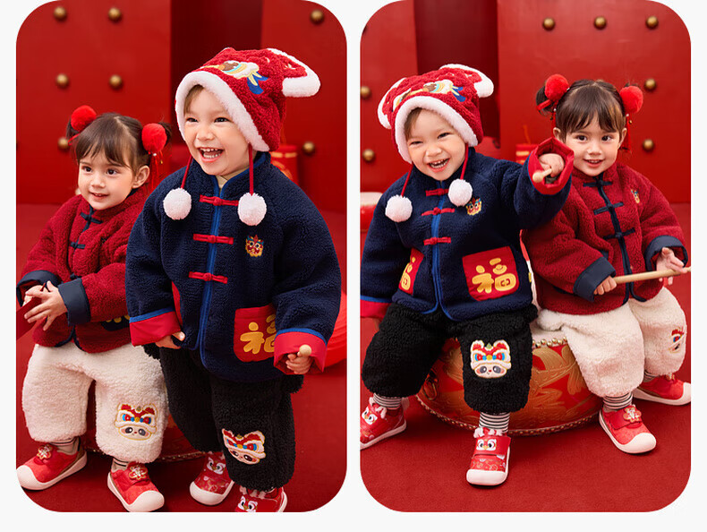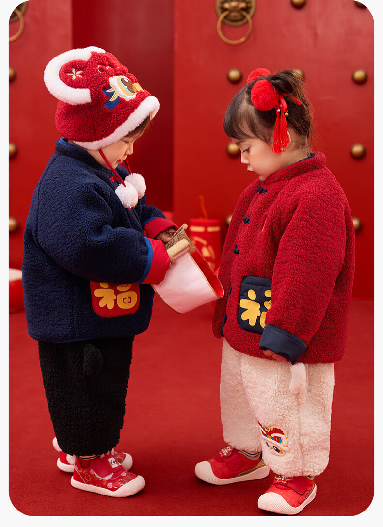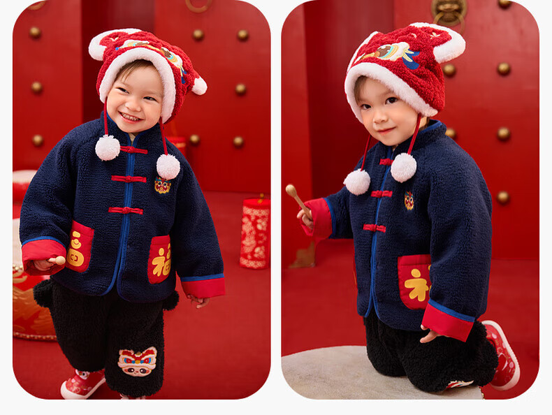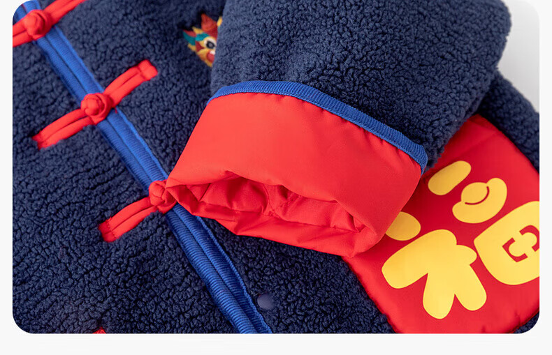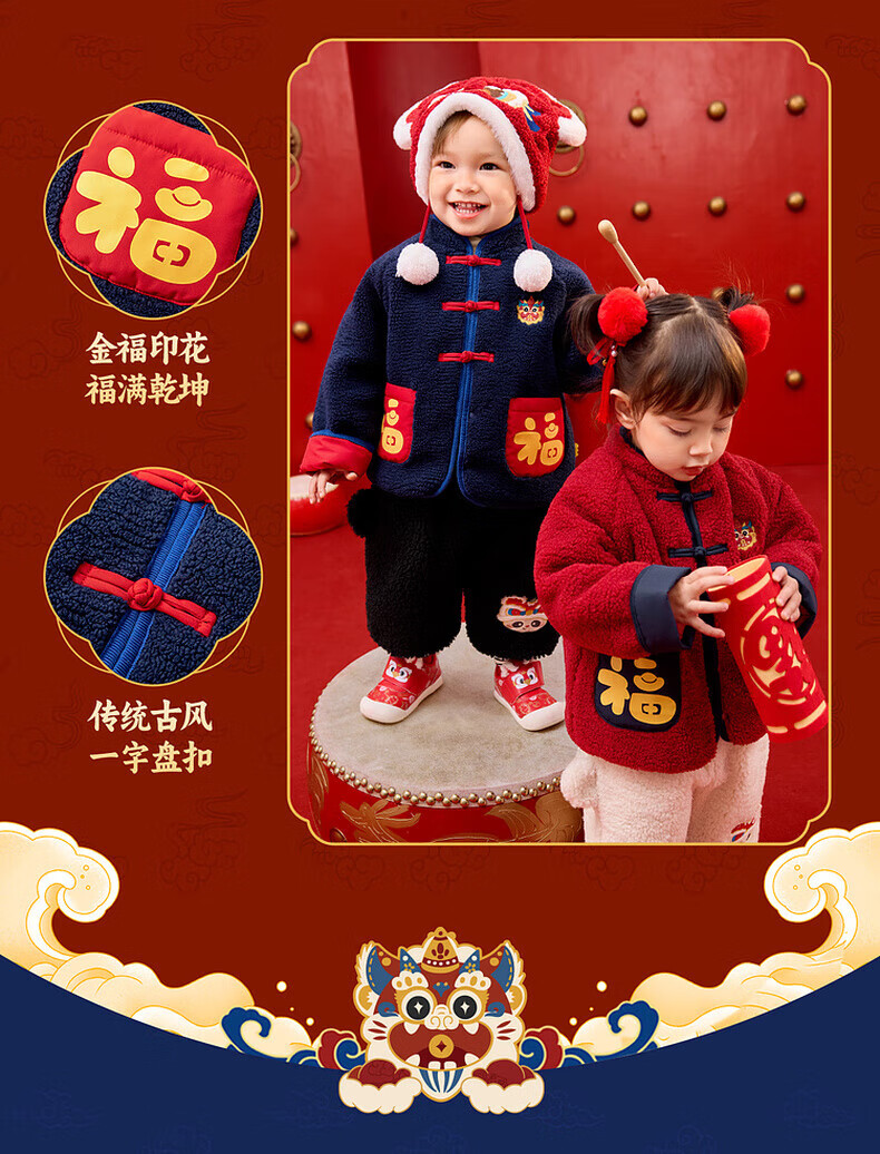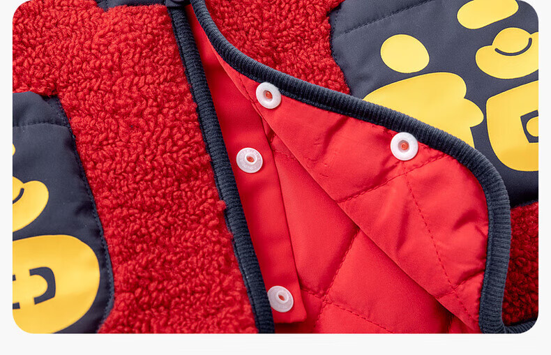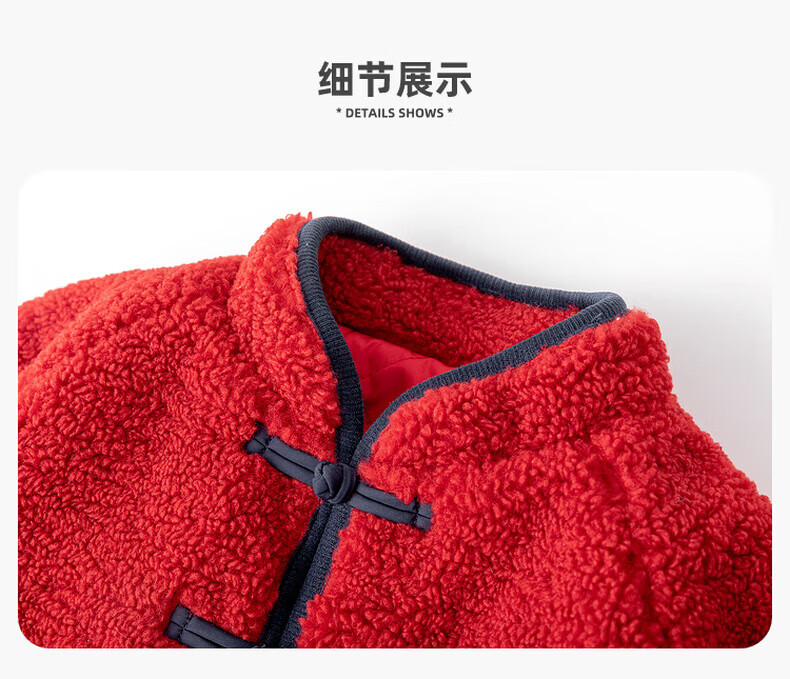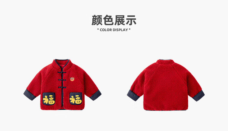 嘟嘟家宝宝新中式唐装儿童拜年服外套男童新年红外套女童国风冬装 朱樱红 90