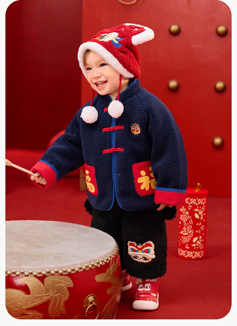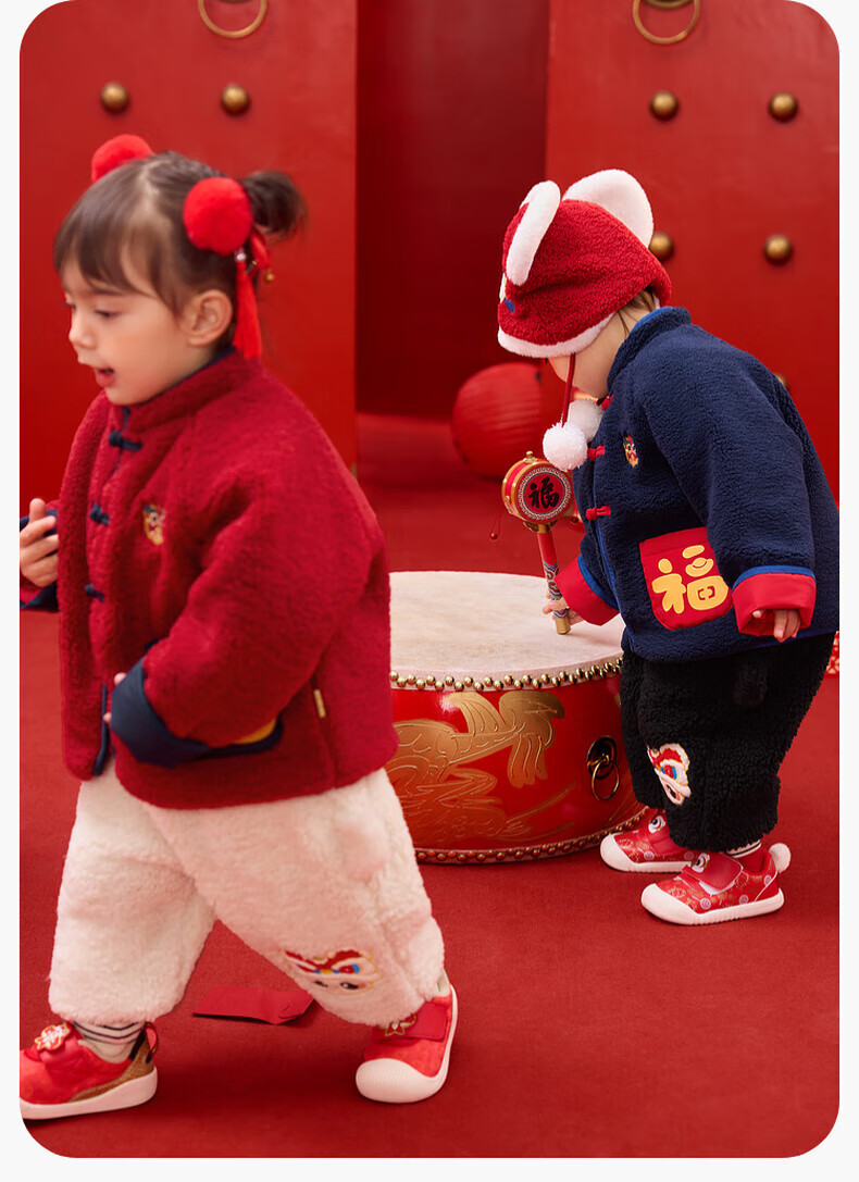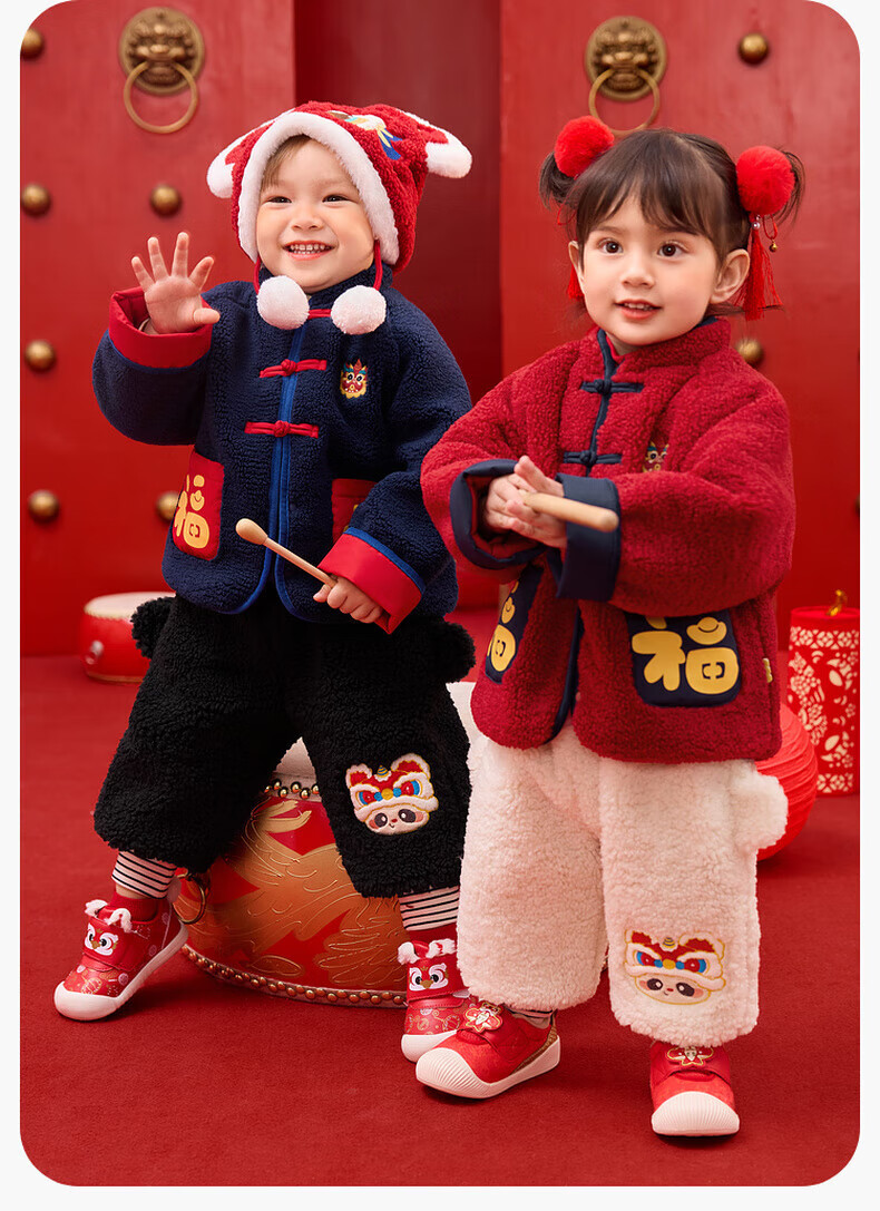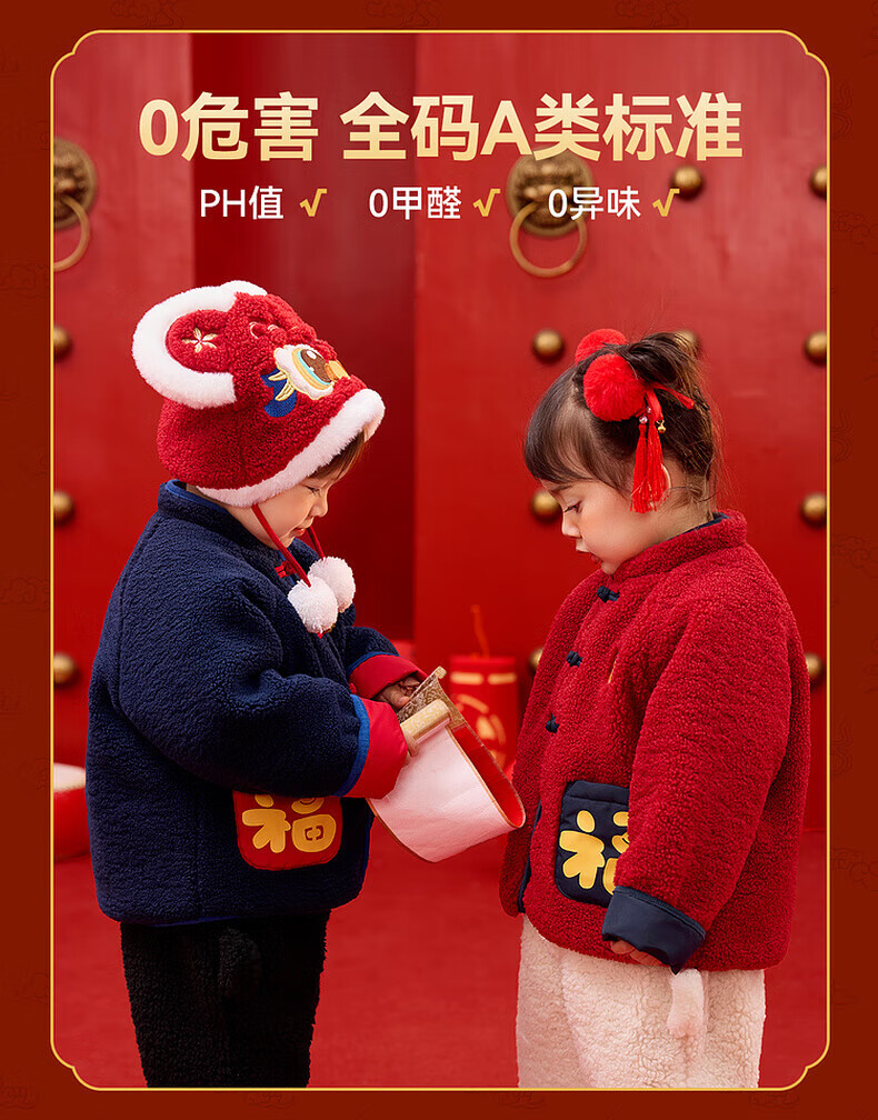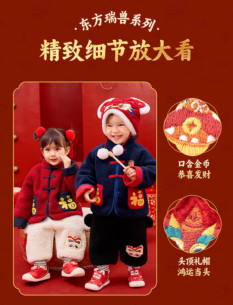 嘟嘟家宝宝新中式唐装儿童拜年服外套男童新年红外套女童国风冬装 朱樱红 90