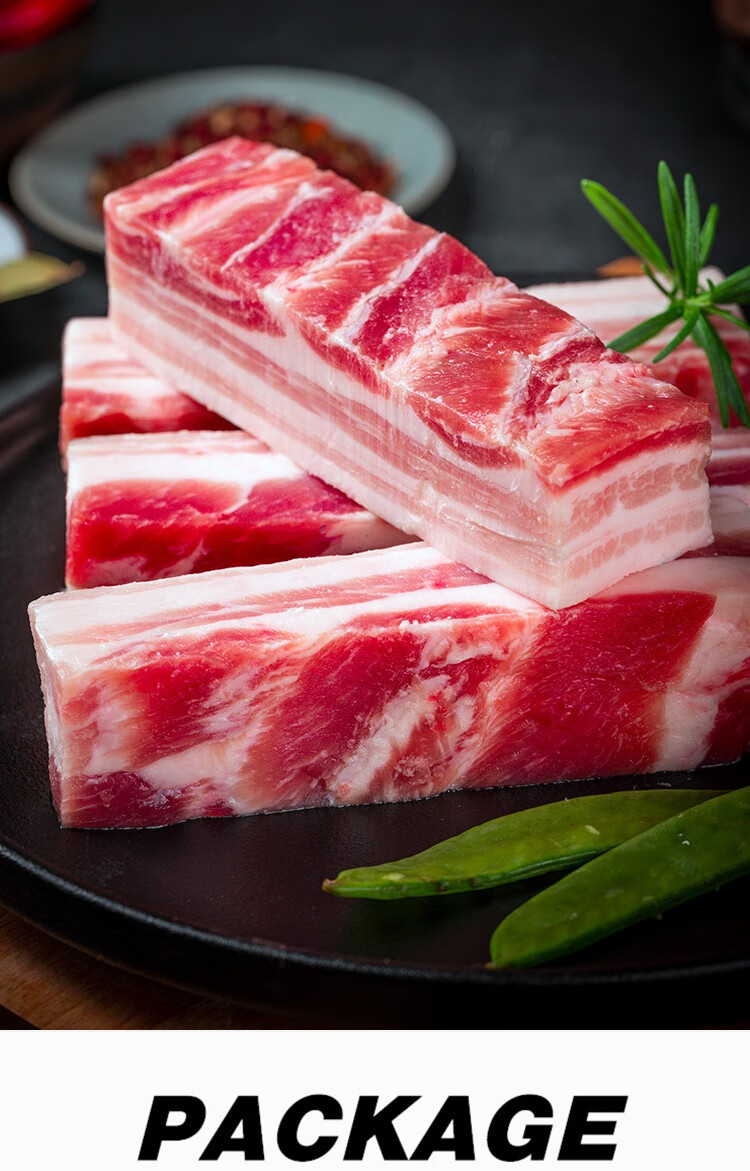 京东跑山猪 国产黑猪五花肉800g冷冻去皮五花肉猪五花烧烤食材 生鲜黑猪肉