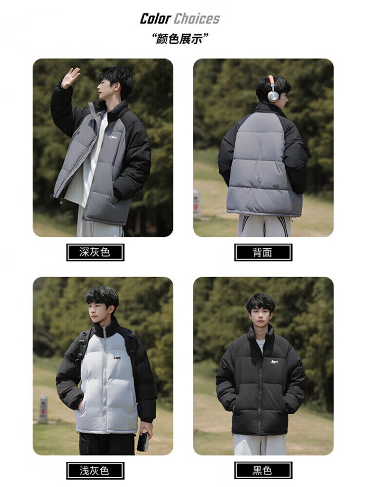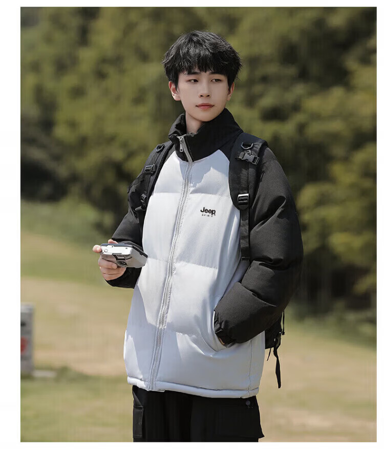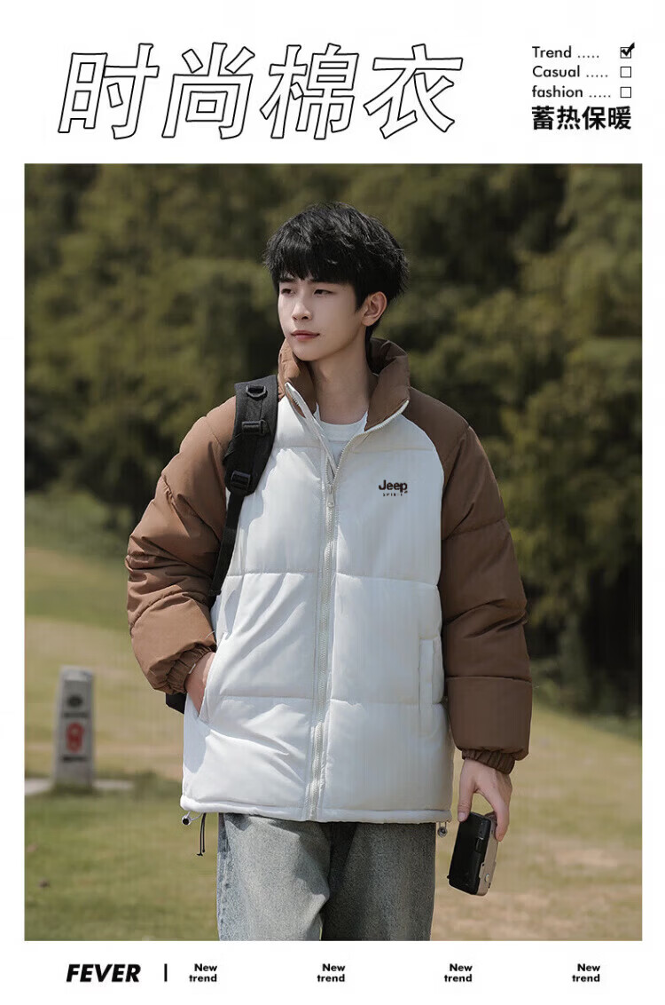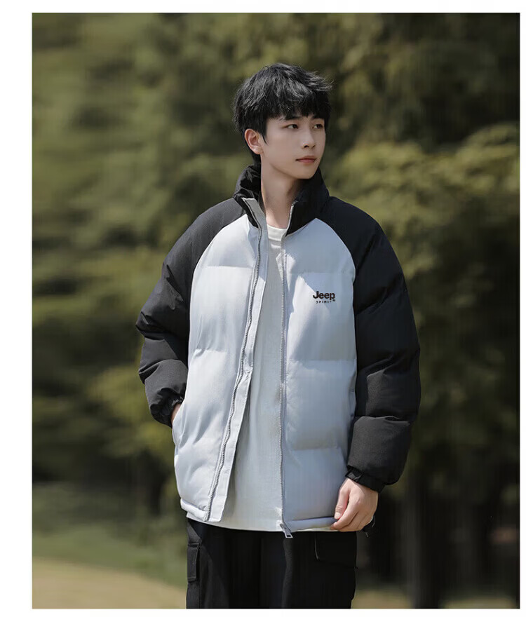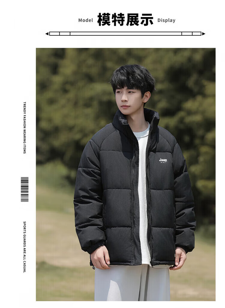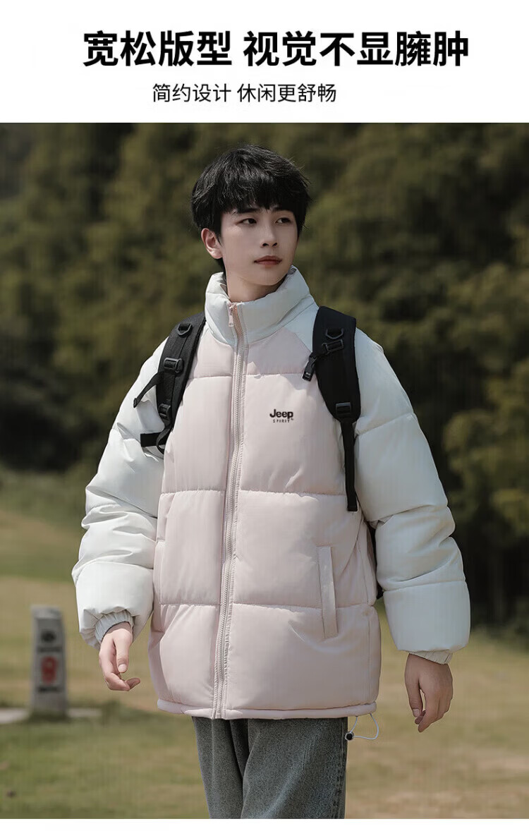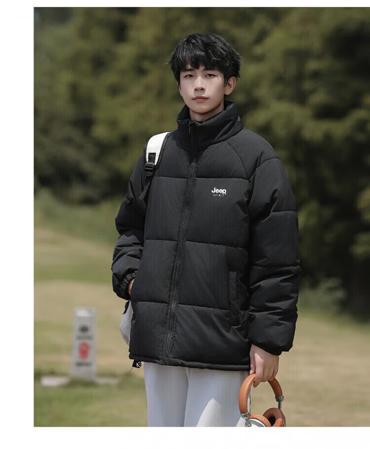 JEEP SPIRIT【无惧风雨雪】羽绒棉服男女同款秋冬季韩版面包服情侣款潮牌外套 零下可穿/黑色 XL (130-150斤)