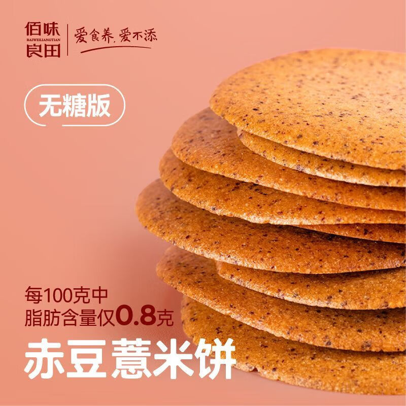 味佰味良田 赤豆薏米饼 压缩饼干 零食健康红豆饼干食品 无糖版1盒装【尝鲜装_略贵】