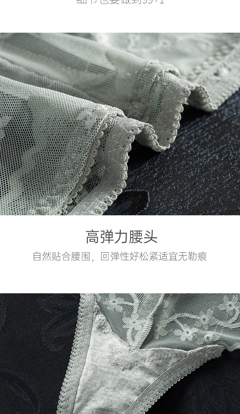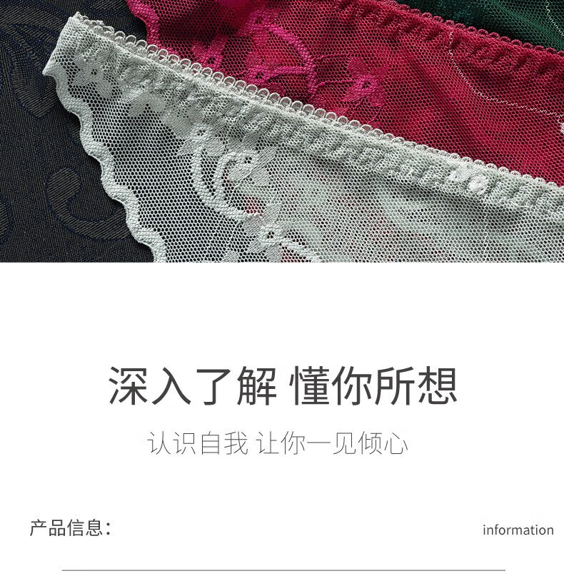 PEANOJEAN性感蕾丝低腰隐形网纱速干T裤瑜伽健身超薄女士丁字裤K304 墨绿色 1条 L