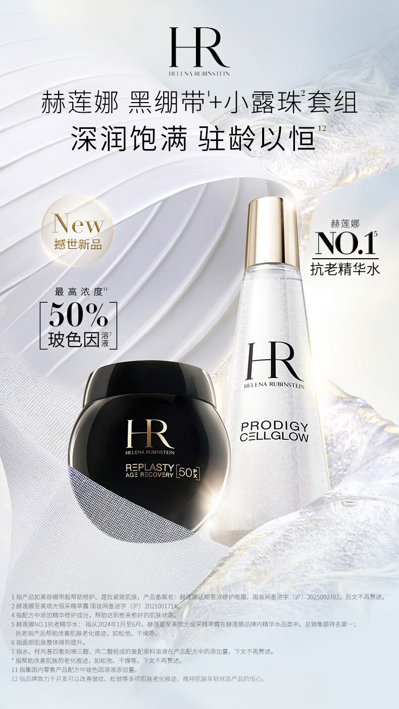 赫莲娜HR黑绷带50PX面霜100ml+小露珠饱满水200ml面霜精华护肤品化妆品