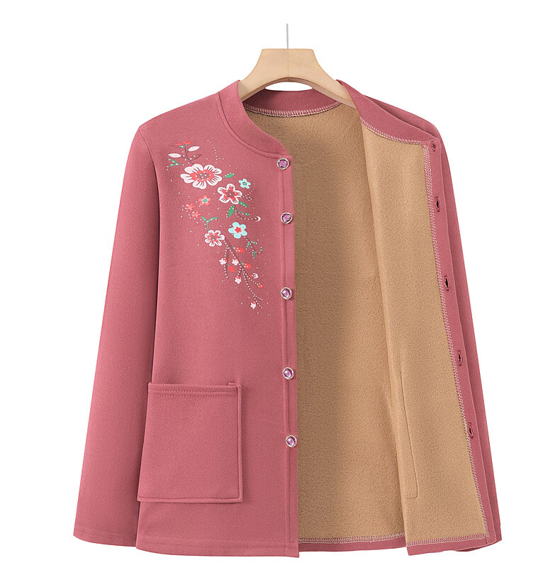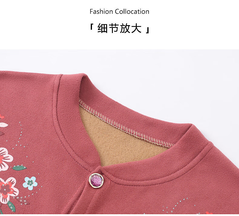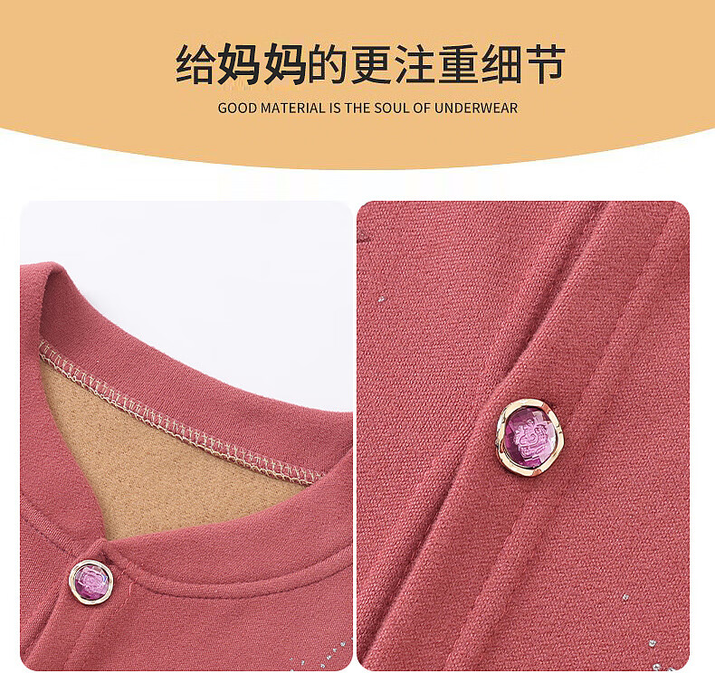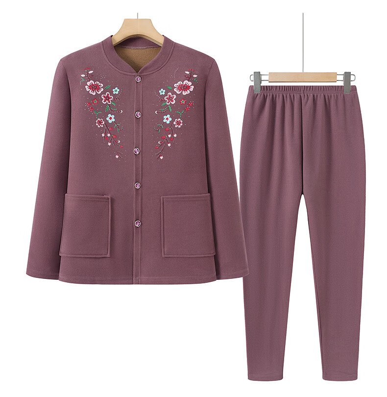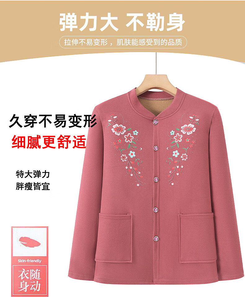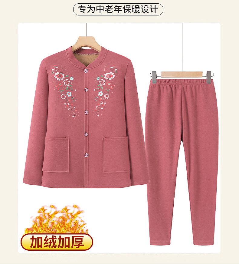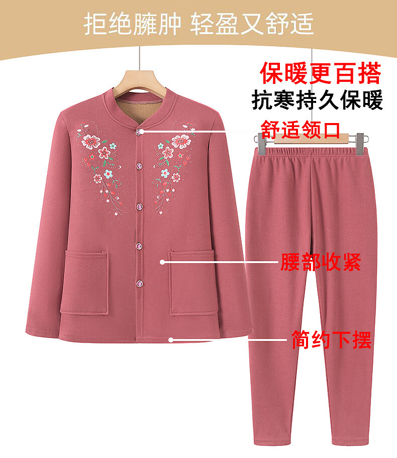 俞兆林(YUZHAOLIN)妈妈冬季保暖衣女加绒加厚开衫上衣奶奶中老年人开襟保暖内衣套装