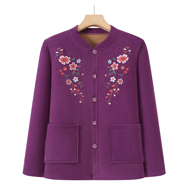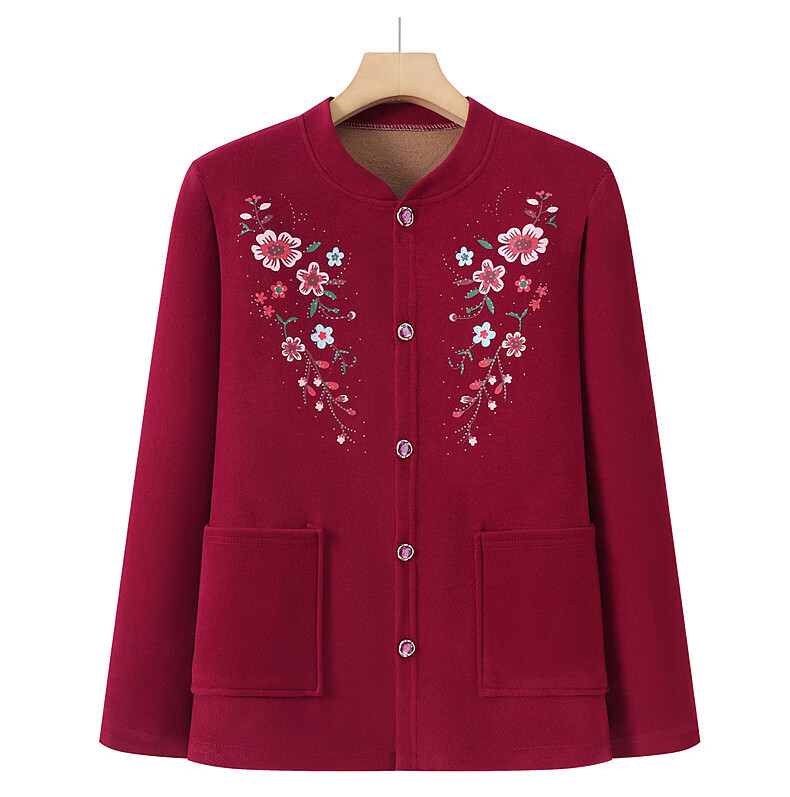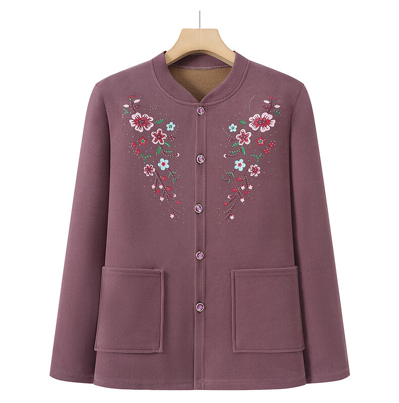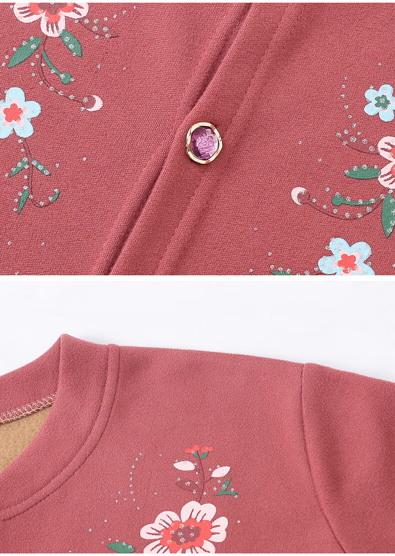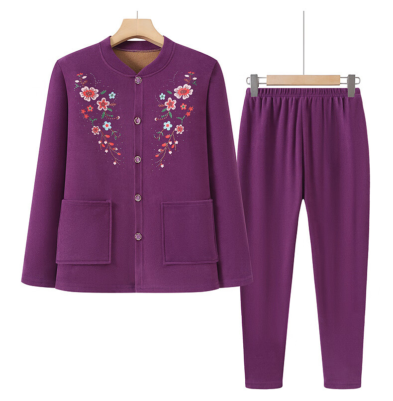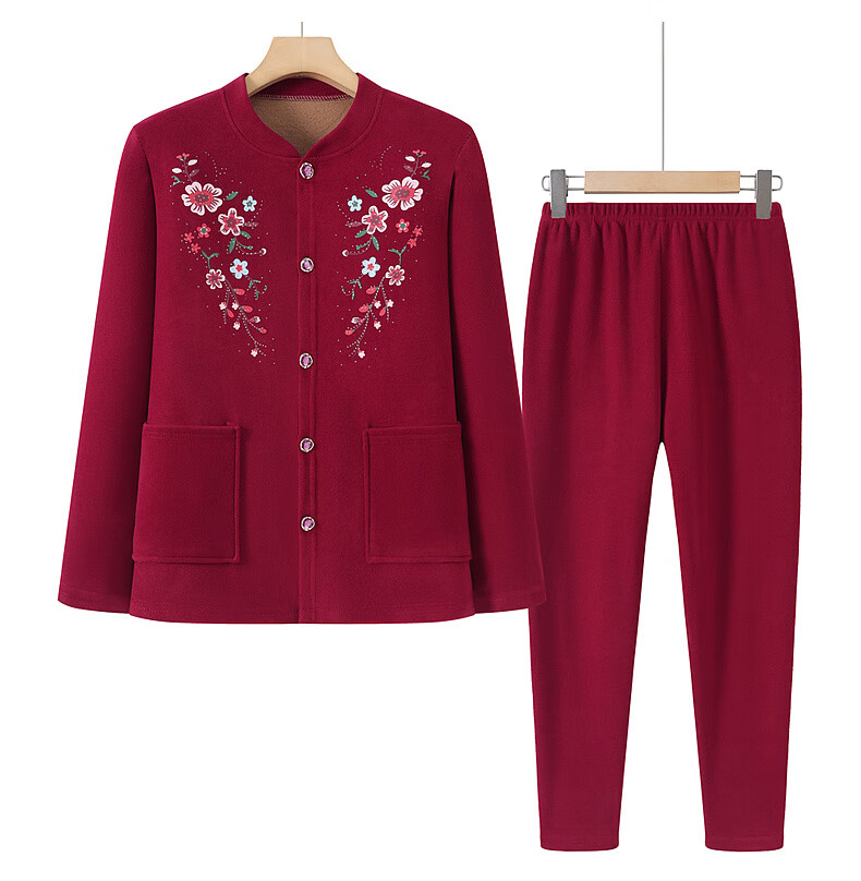 俞兆林(YUZHAOLIN)妈妈冬季保暖衣女加绒加厚开衫上衣奶奶中老年人开襟保暖内衣套装