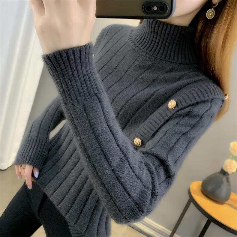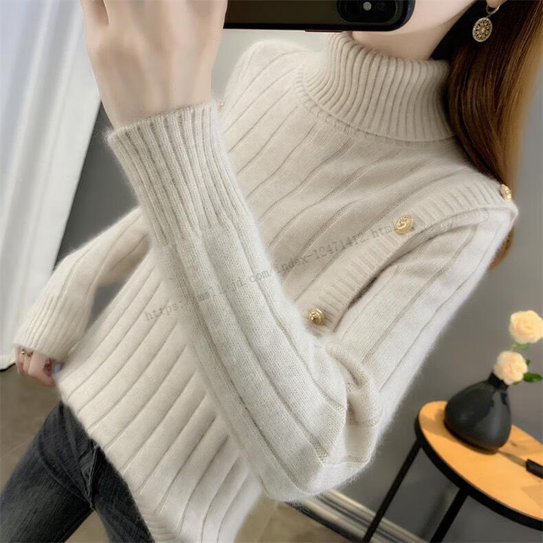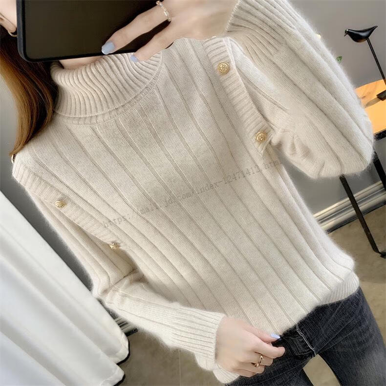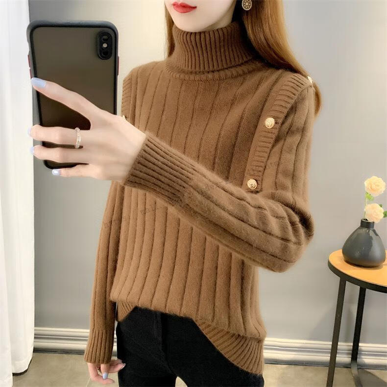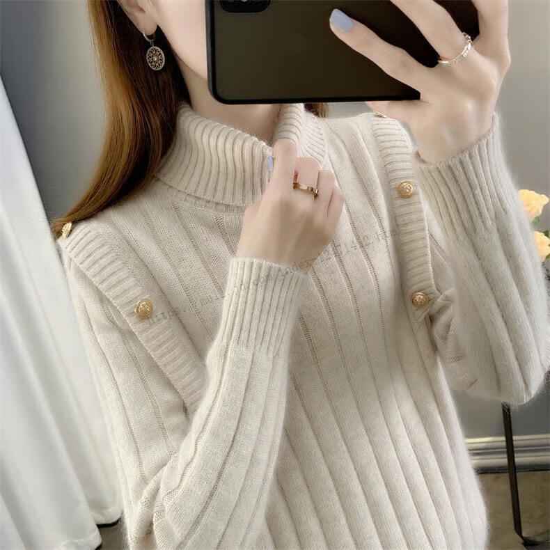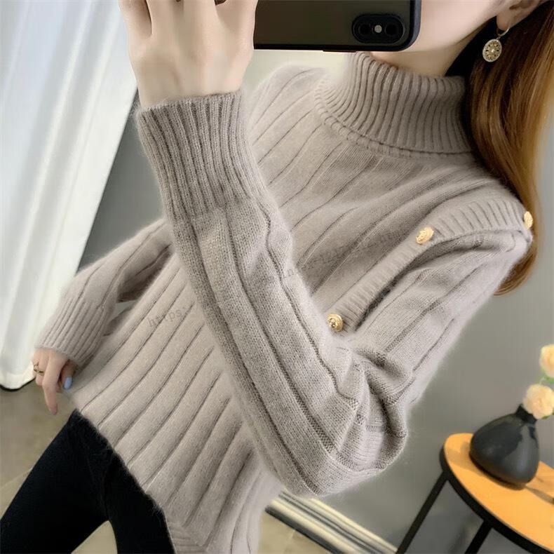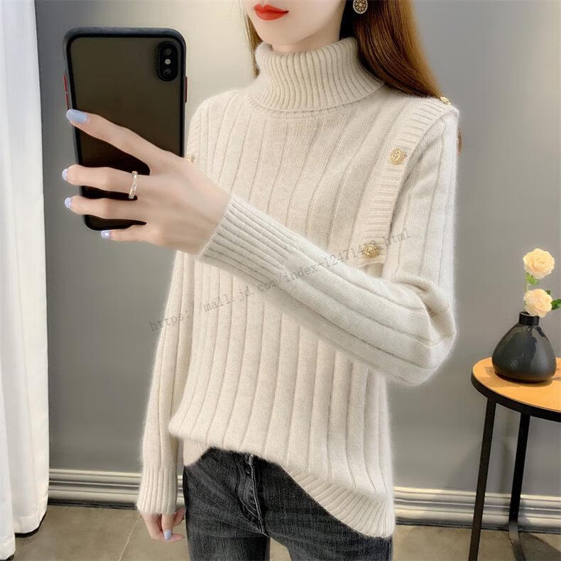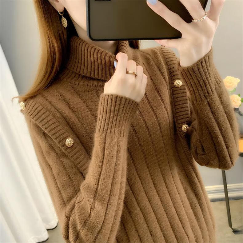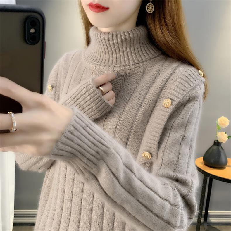 恒源祥2025年秋冬新款加厚两翻领毛衣内搭打底衫时尚洋气上衣高领女装潮 浅咖 加厚 XL