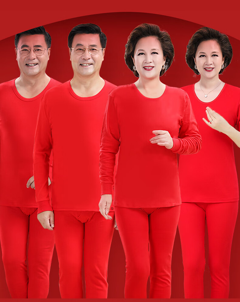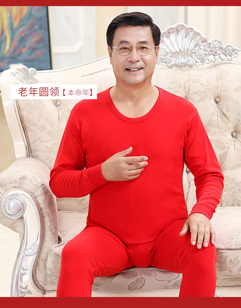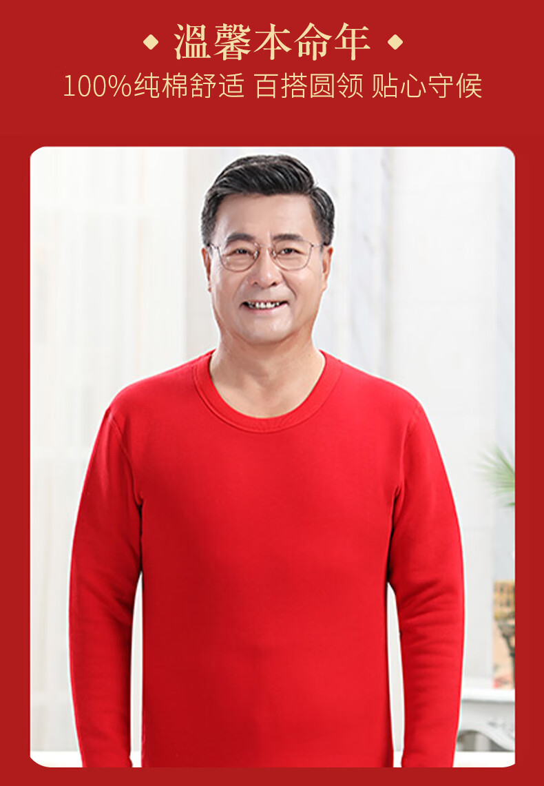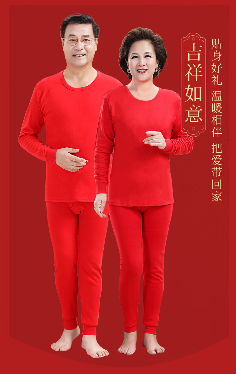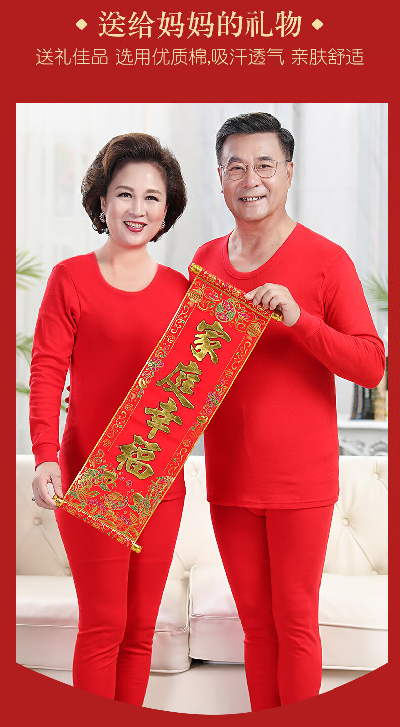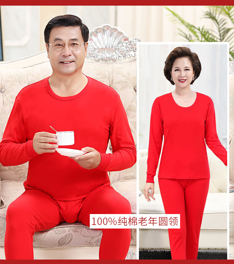 浪莎中老年人骐骥大红本命年马年秋衣秋裤男女士套装纯棉保暖内衣套装