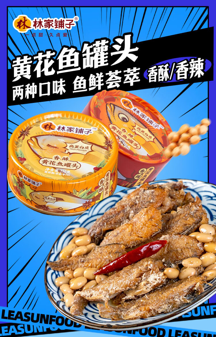 林家铺子香酥黄花鱼罐头即食下饭菜香辣味海鲜鱼肉罐头方便速食 香酥黄花鱼6罐+香辣黄花鱼6罐